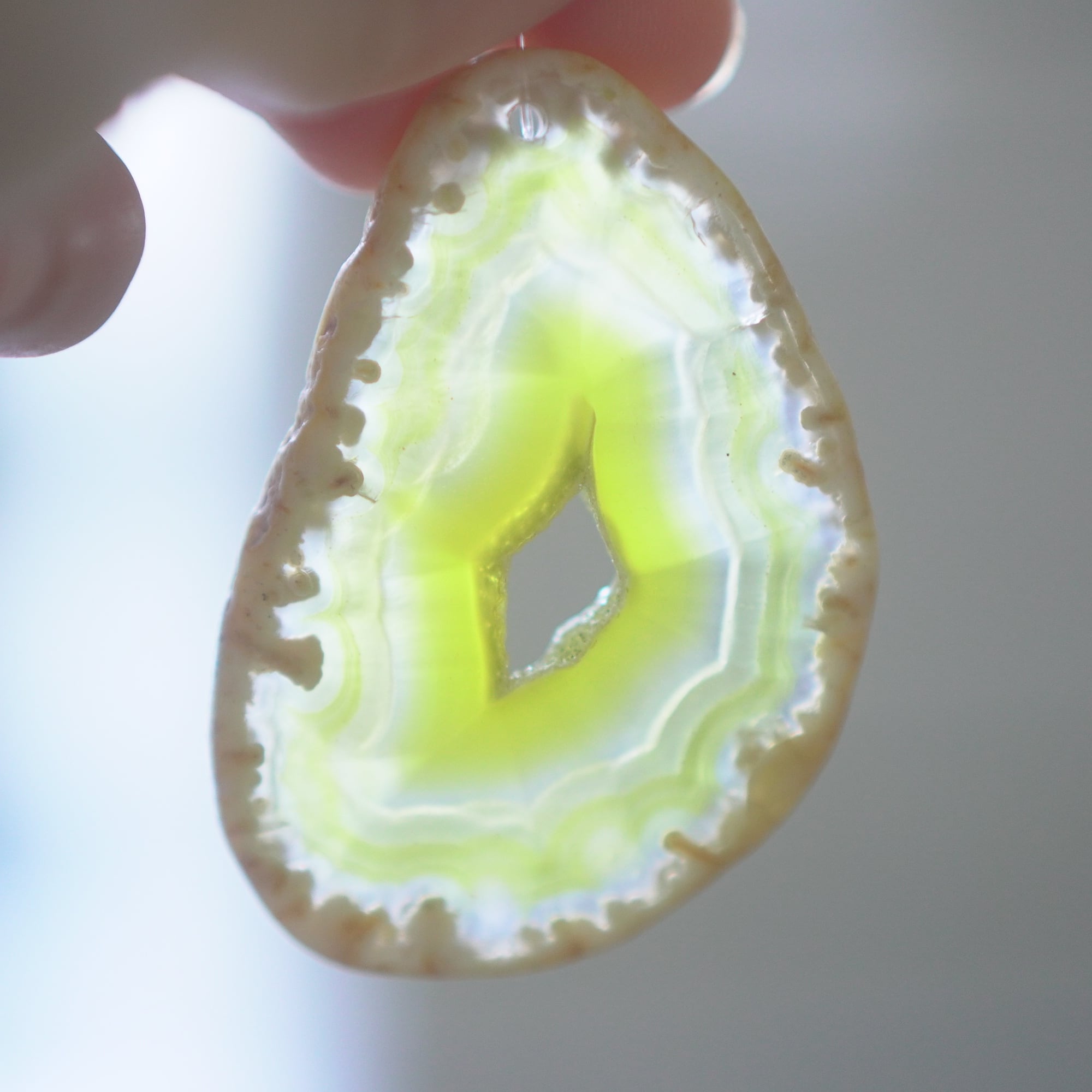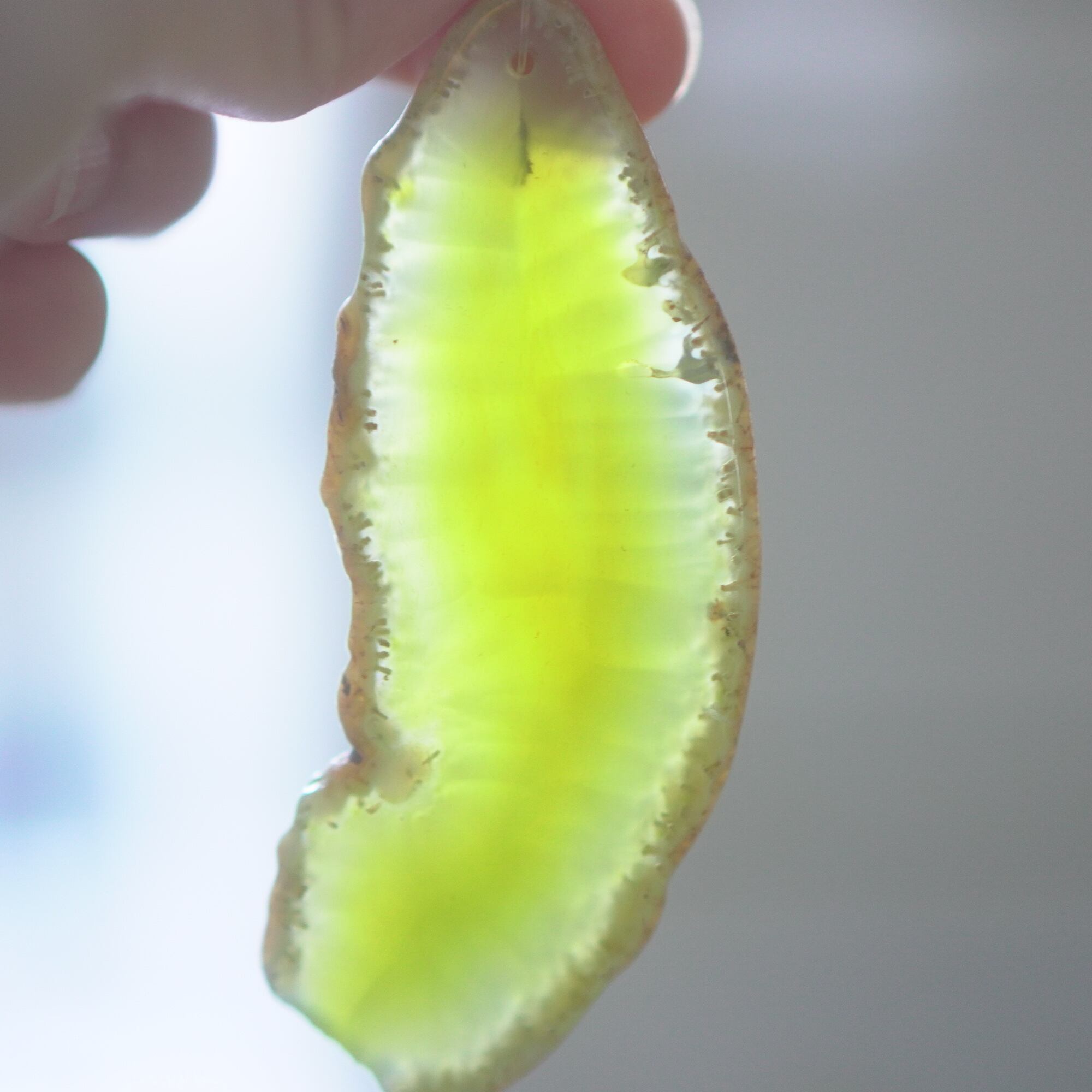 ✧✧✧染色の石なので耐光性(光による経年でのカラー変化の耐性)に優れているわけではなく一日の中で長時間強い日光に当たるような場所に飾られるのはおすすめしないのですが、陽光に透かした時にだけ真価を発揮する美しさがありますので、是非たまに翳したりして光と一緒にお楽しみいただけたらと思っております。特に濃い鮮やかな色など、気になられる場合は、日光のあまり当たらない場所に飾っていただけたらと思います✧✧✧