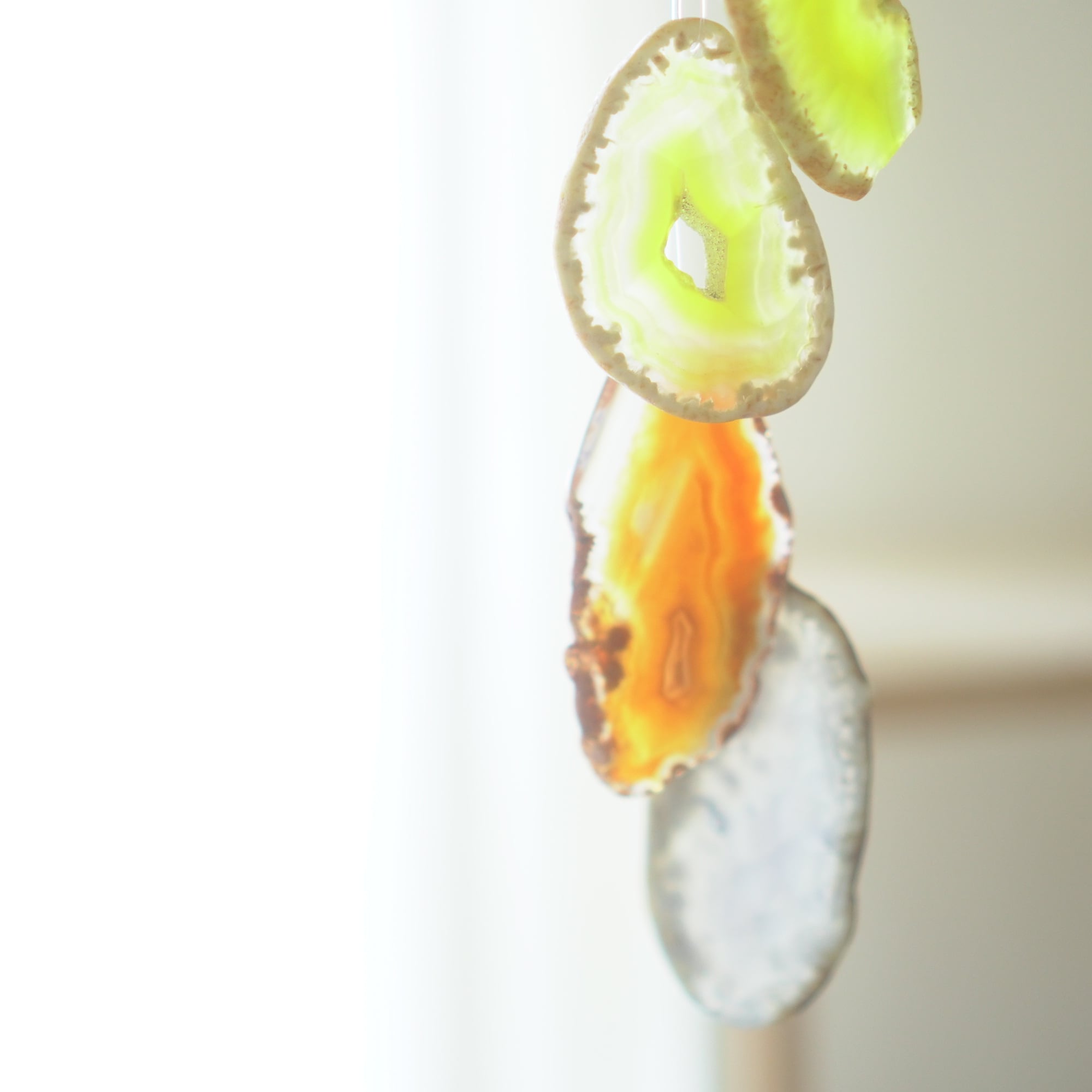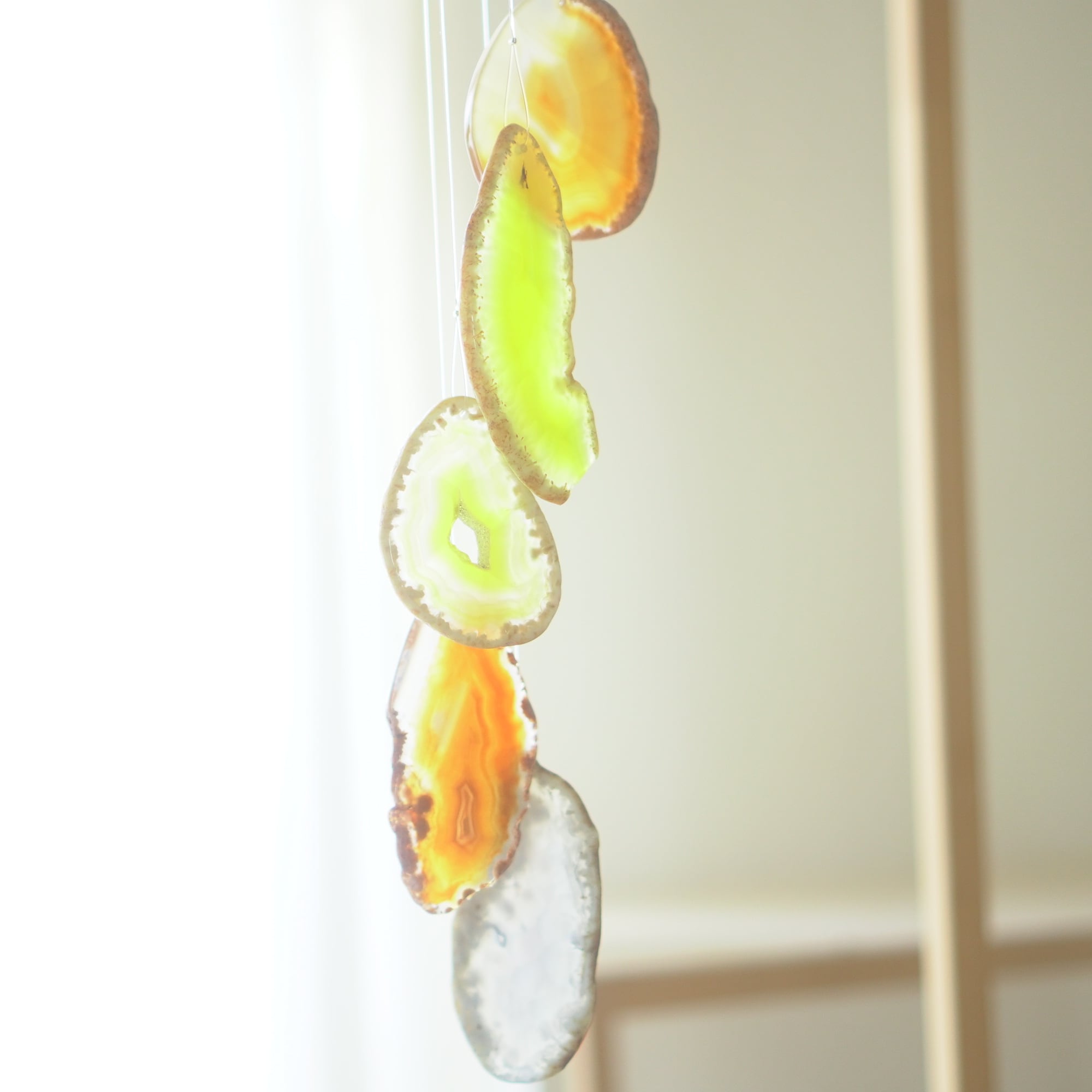 連なるアゲートが風を受けて揺れるとチリンチリン、美しい響きの音が鳴りとても癒されます。