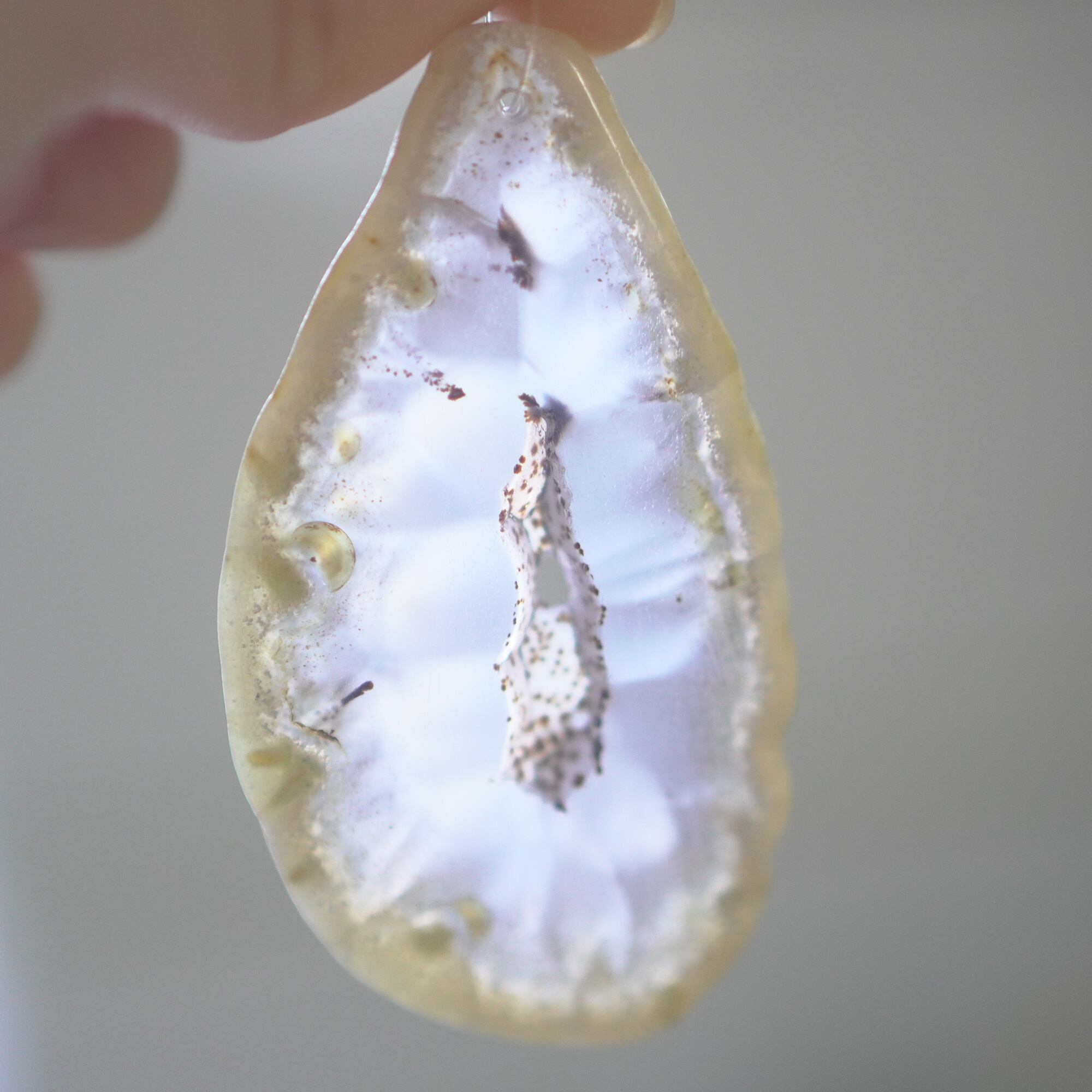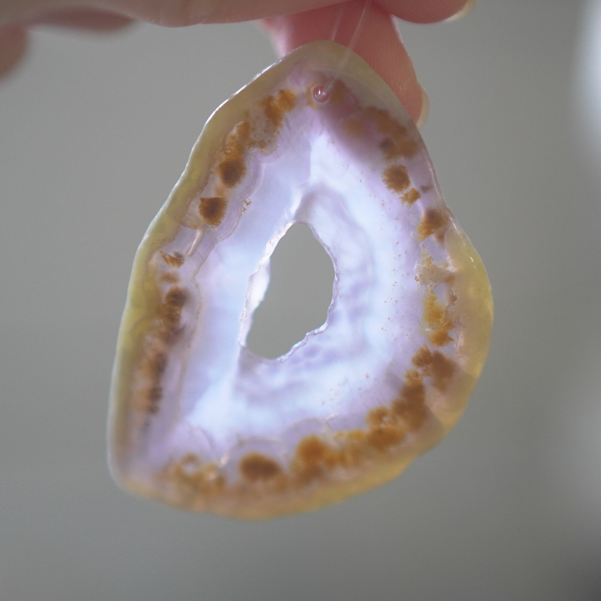 ✧✧✧染色の石なので耐光性(光による経年でのカラー変化の耐性)に優れているわけではなく一日の中で長時間強い日光に当たるような場所に飾られるのはおすすめしないのですが、陽光に透かした時にだけ真価を発揮する美しさがありますので、是非たまに翳したりして光と一緒にお楽しみいただけたらと思っております。特に濃い鮮やかな色など、気になられる場合は、日光のあまり当たらない場所に飾っていただけたらと思います✧✧✧