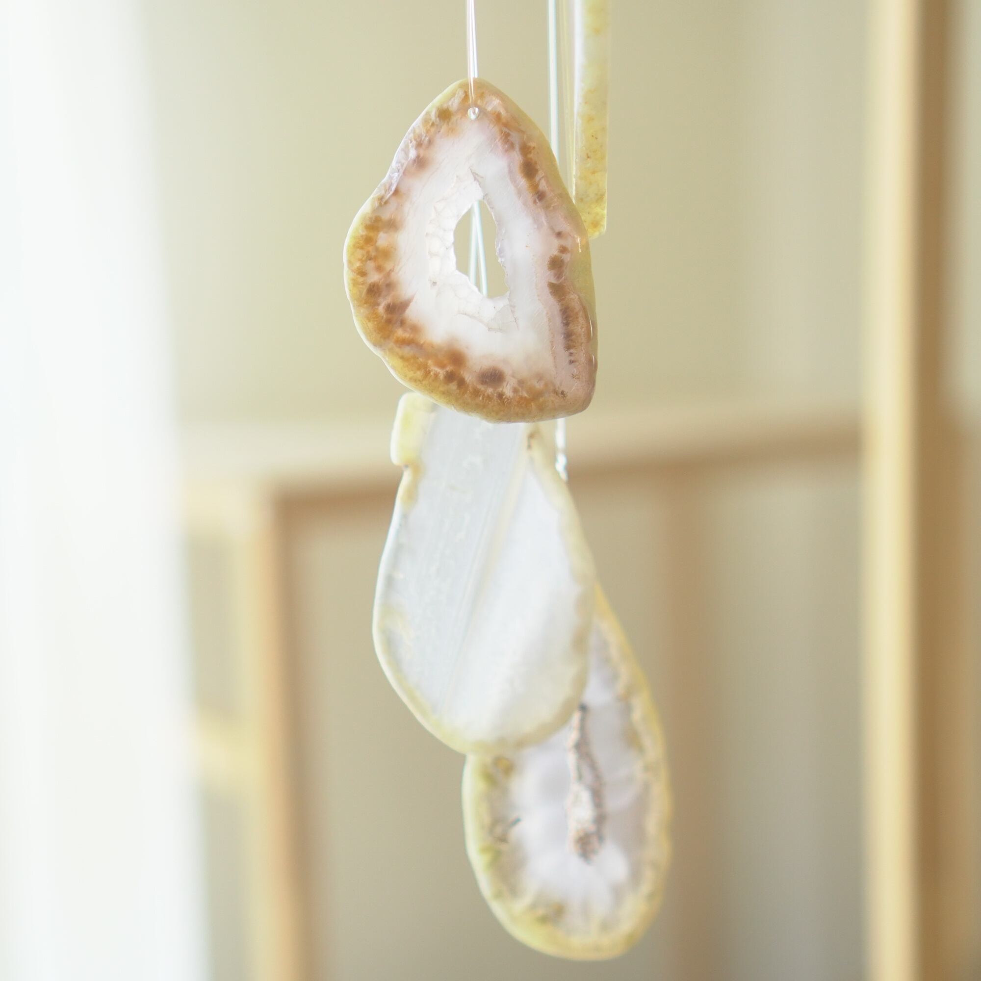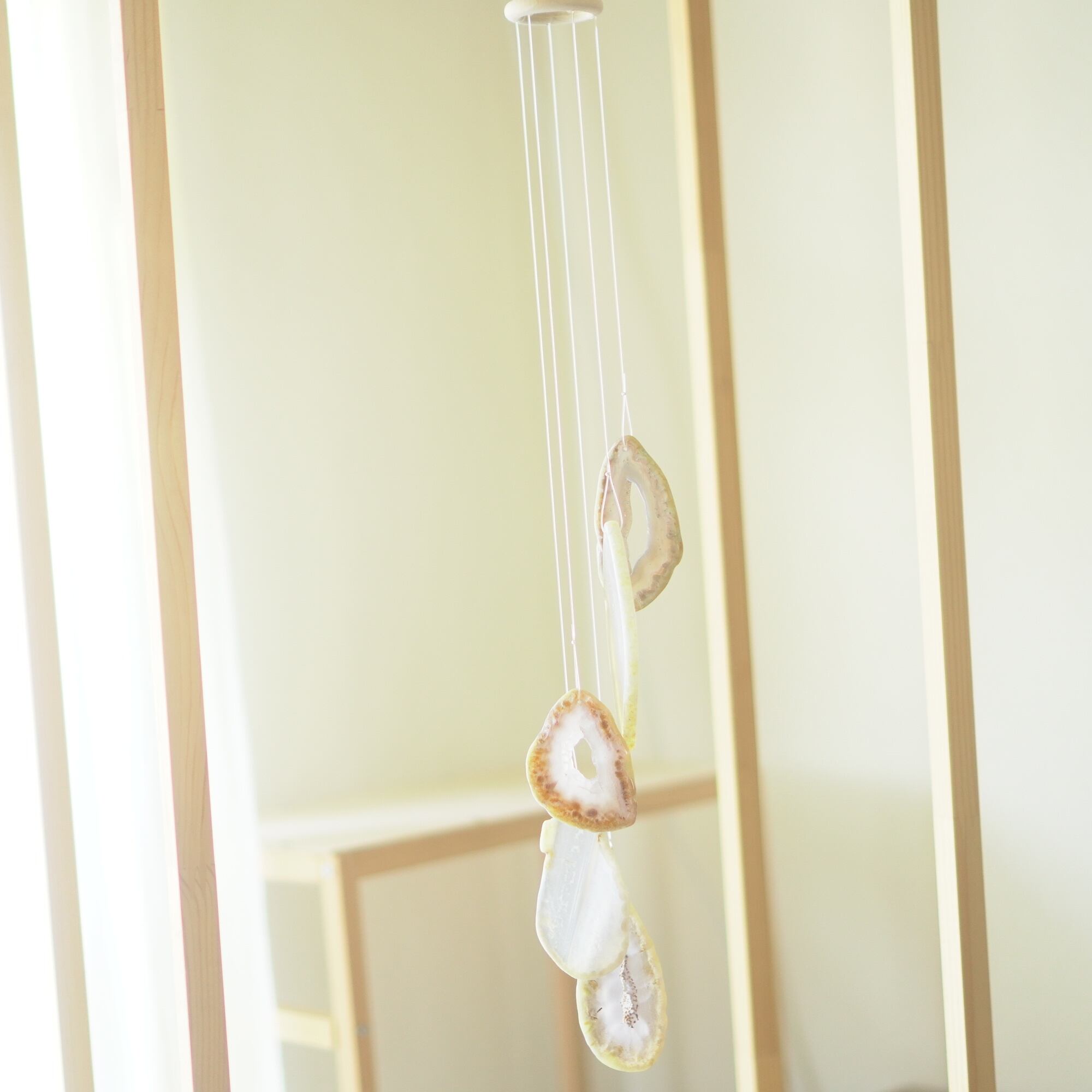 連なるアゲートが風を受けて揺れるとチリンチリン、美しい響きの音が鳴りとても癒されます。