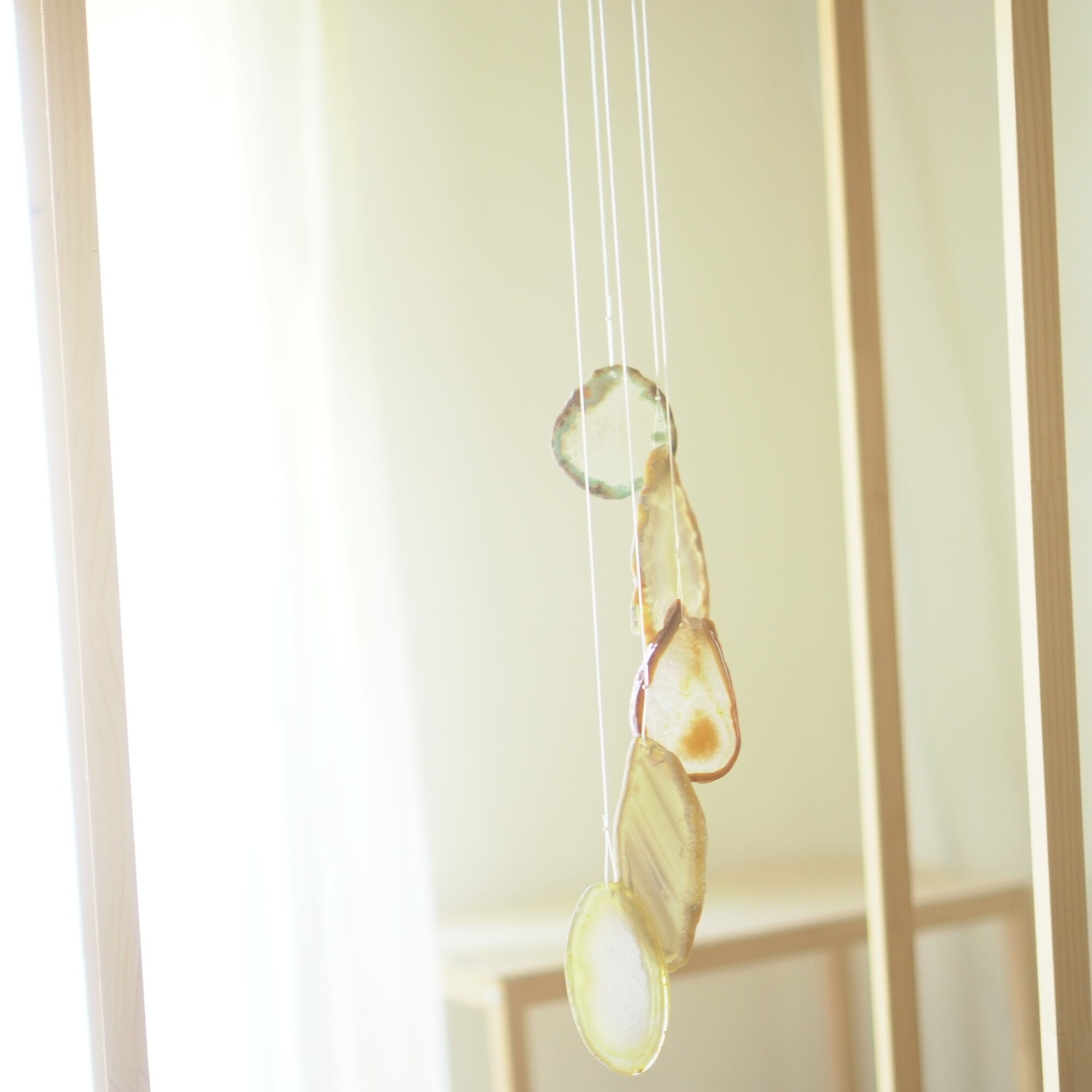 連なるアゲートが風を受けて揺れるとチリンチリン、美しい響きの音が鳴りとても癒されます。