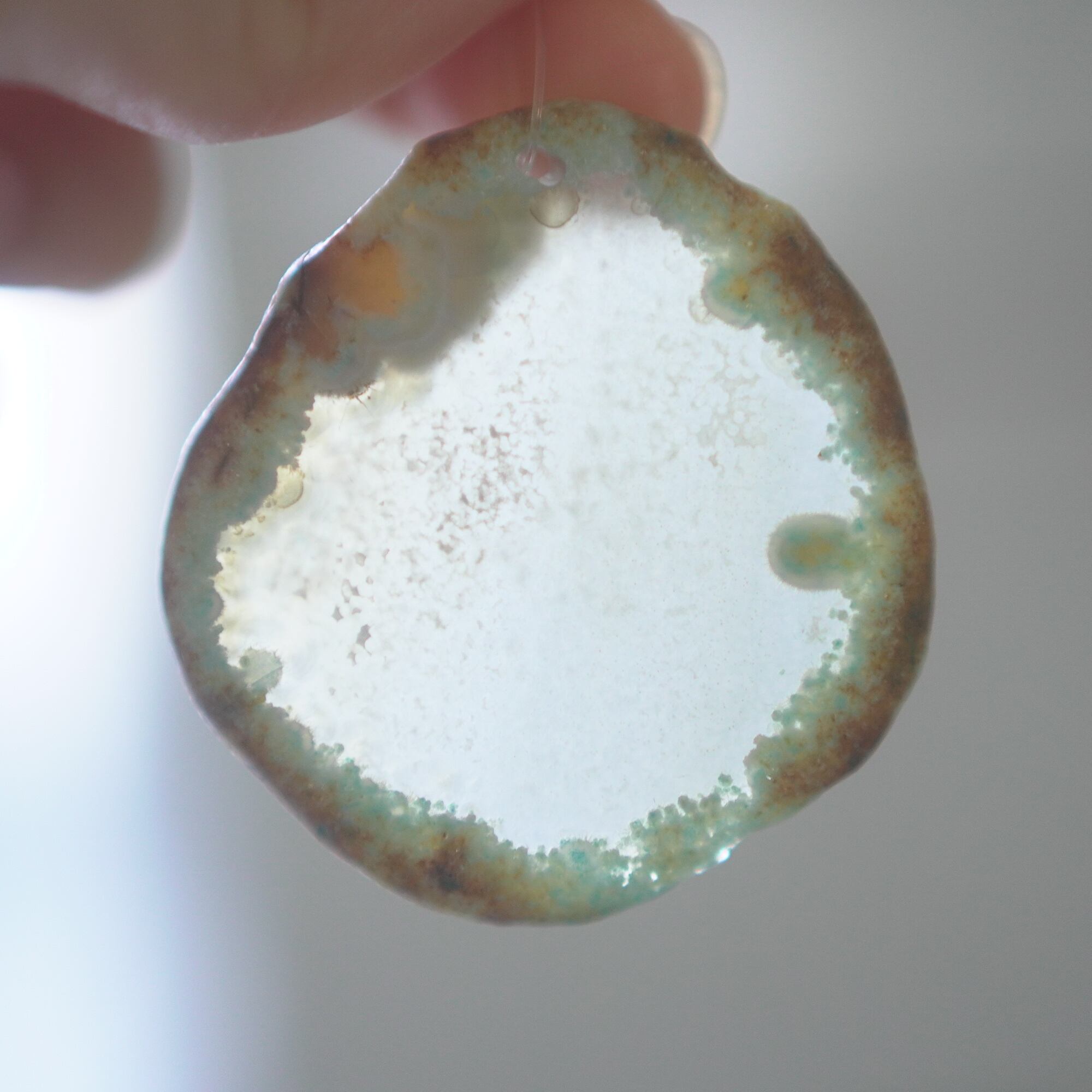 ✧✧✧染色の石なので耐光性(光による経年でのカラー変化の耐性)に優れているわけではなく一日の中で長時間強い日光に当たるような場所に飾られるのはおすすめしないのですが、陽光に透かした時にだけ真価を発揮する美しさがありますので、是非たまに翳したりして光と一緒にお楽しみいただけたらと思っております。特に濃い鮮やかな色など、気になられる場合は、日光のあまり当たらない場所に飾っていただけたらと思います✧✧✧