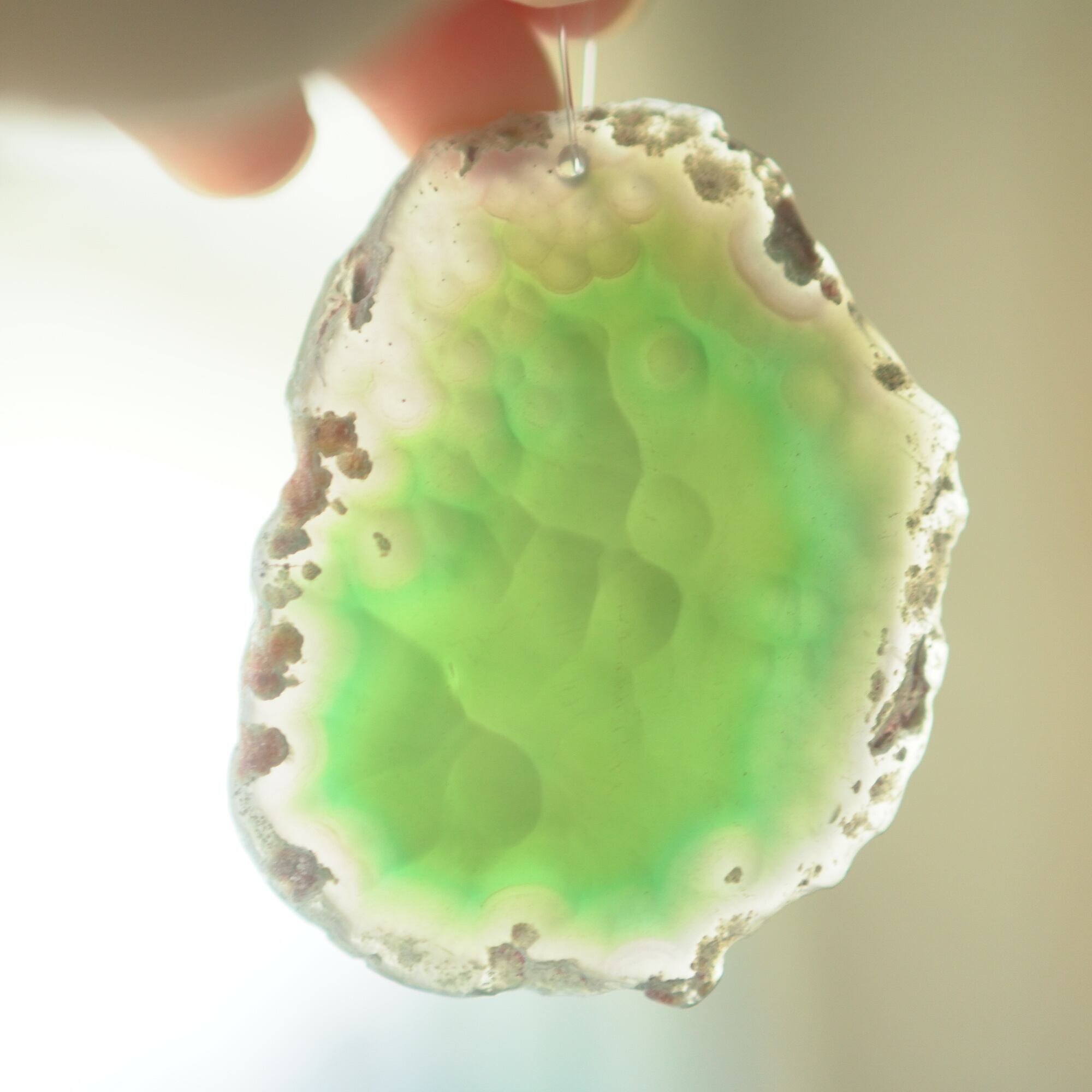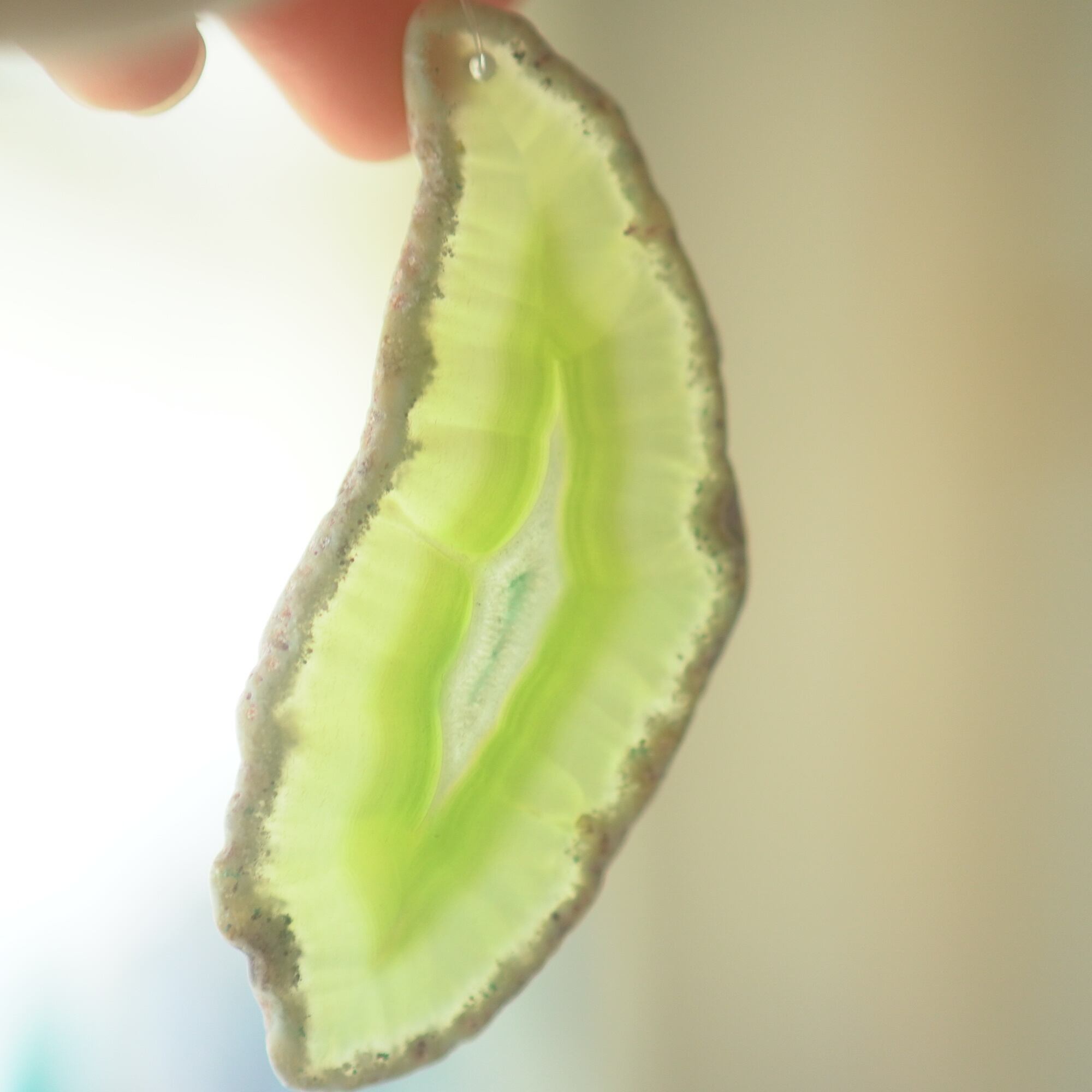 ✧✧✧染色の石なので耐光性(光による経年でのカラー変化の耐性)に優れているわけではなく一日の中で長時間強い日光に当たるような場所に飾られるのはおすすめしないのですが、陽光に透かした時にだけ真価を発揮する美しさがありますので、是非たまに翳したりして光と一緒にお楽しみいただけたらと思っております。特に濃い鮮やかな色など、気になられる場合は、日光のあまり当たらない場所に飾っていただけたらと思います✧✧✧