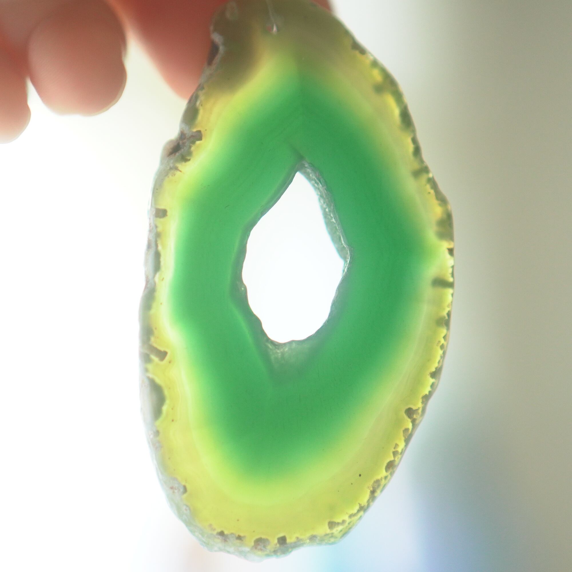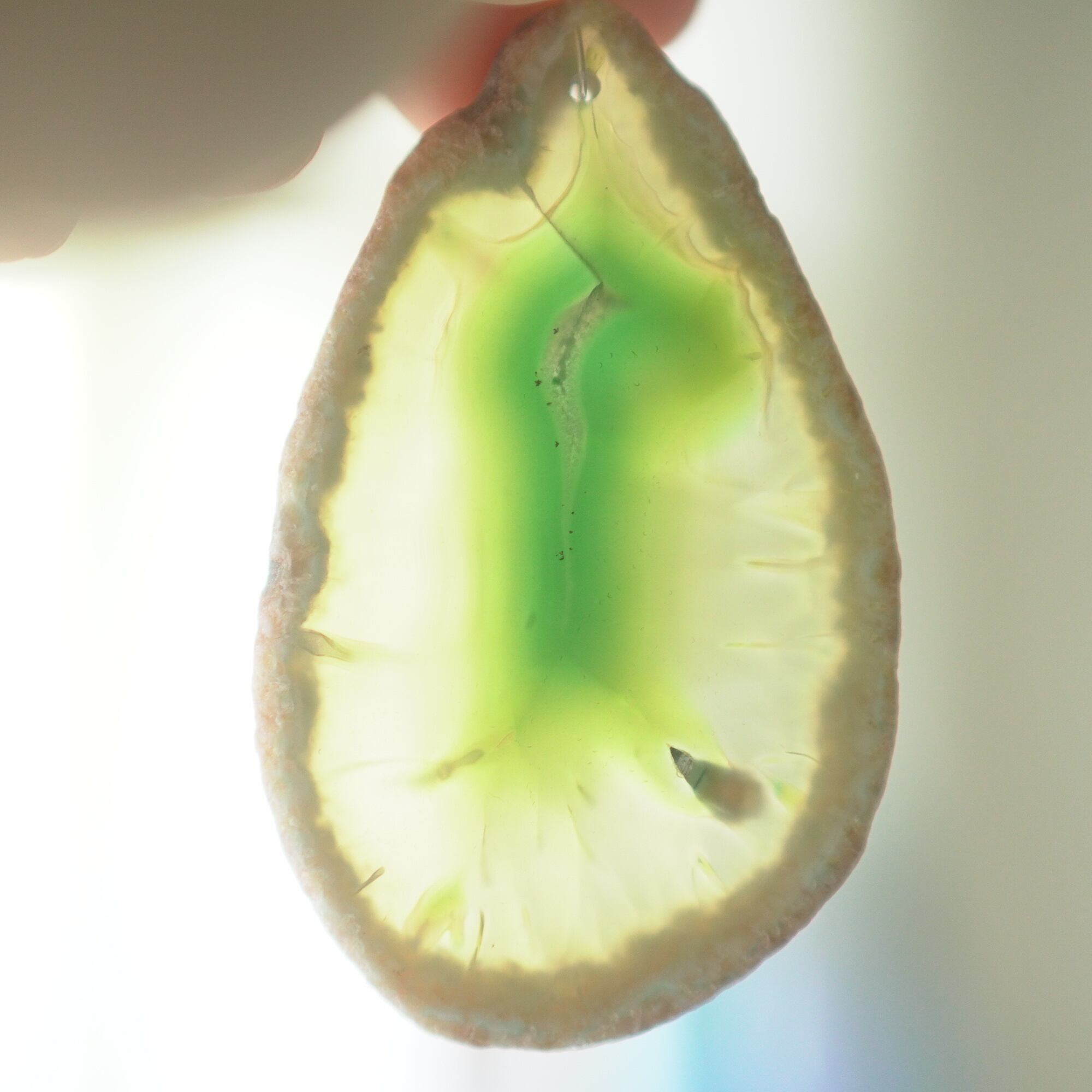 ✧✧✧染色の石なので耐光性(光による経年でのカラー変化の耐性)に優れているわけではなく一日の中で長時間強い日光に当たるような場所に飾られるのはおすすめしないのですが、陽光に透かした時にだけ真価を発揮する美しさがありますので、是非たまに翳したりして光と一緒にお楽しみいただけたらと思っております。特に濃い鮮やかな色など、気になられる場合は、日光のあまり当たらない場所に飾っていただけたらと思います✧✧✧