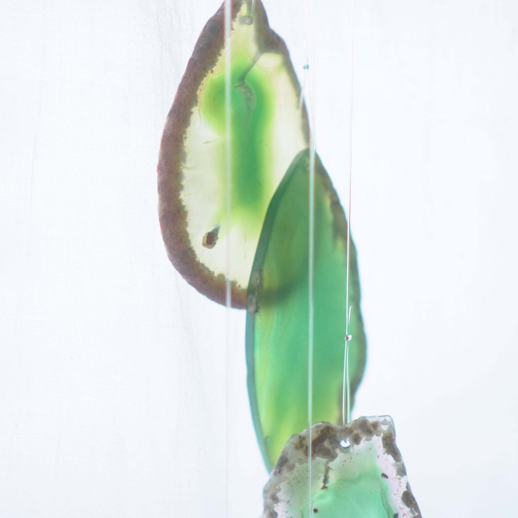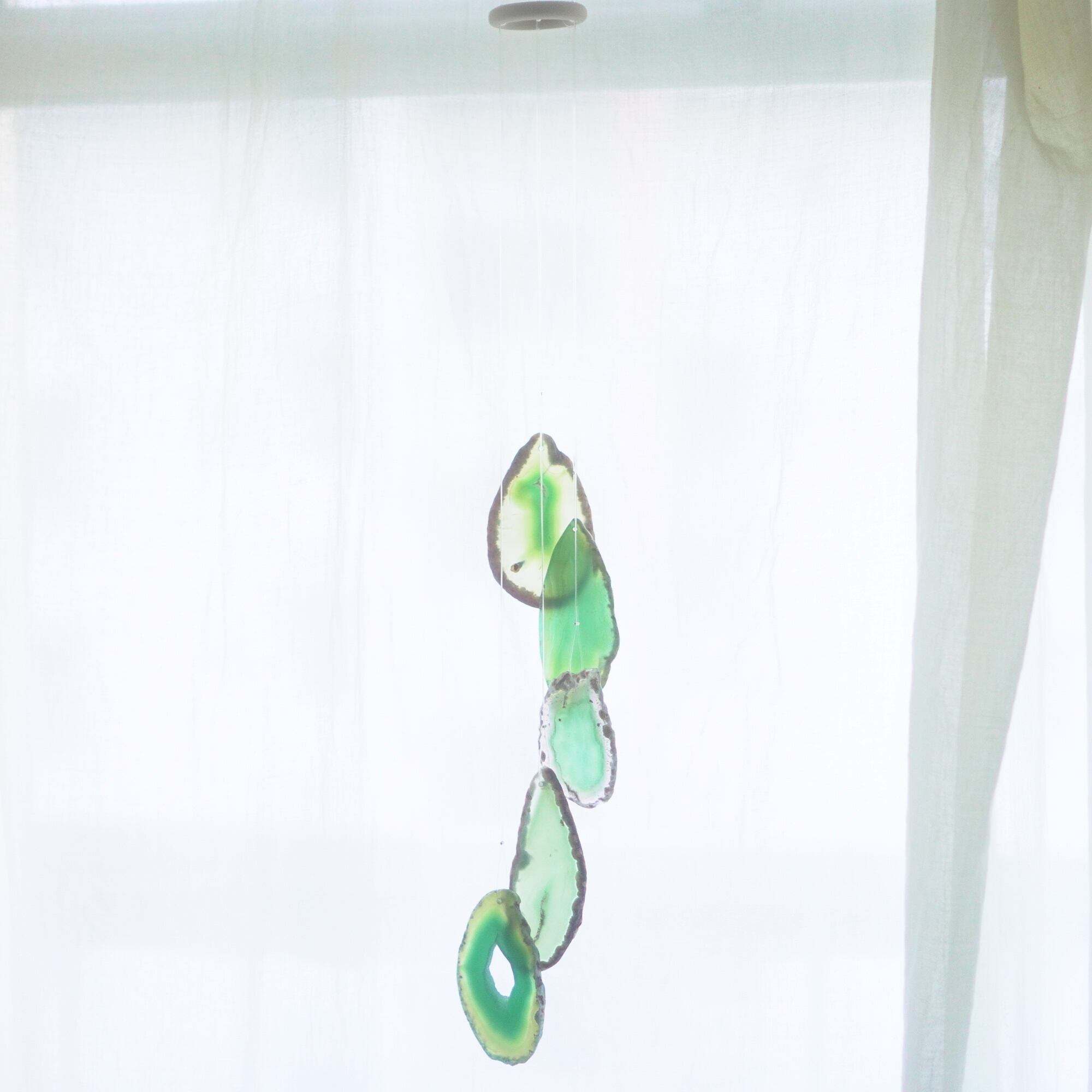 連なるアゲートが風を受けて揺れるとチリンチリン、美しい響きの音が鳴りとても癒されます。