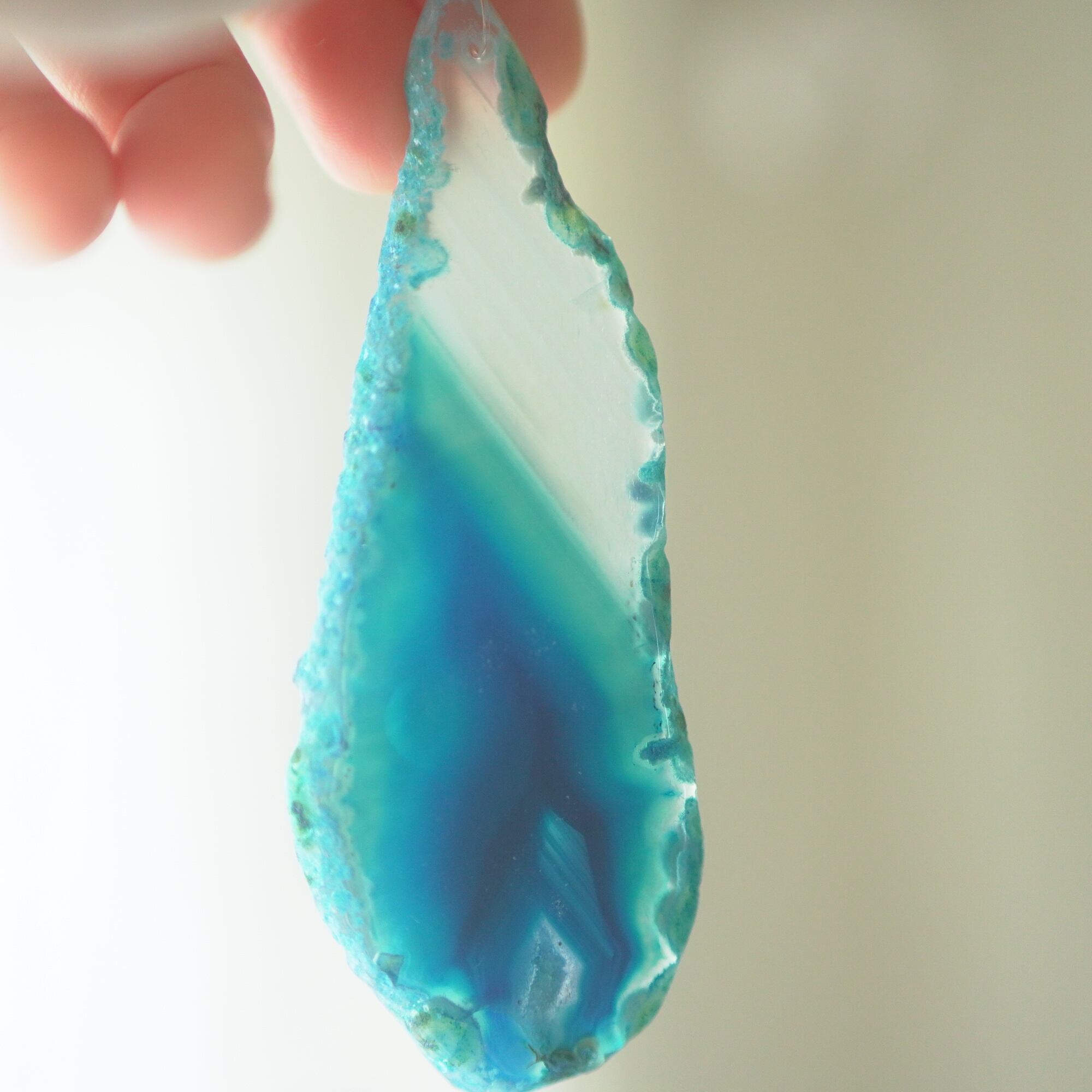 ✧✧✧染色の石なので耐光性(光による経年でのカラー変化の耐性)に優れているわけではなく一日の中で長時間強い日光に当たるような場所に飾られるのはおすすめしないのですが、陽光に透かした時にだけ真価を発揮する美しさがありますので、是非たまに翳したりして光と一緒にお楽しみいただけたらと思っております。特に濃い鮮やかな色など、気になられる場合は、日光のあまり当たらない場所に飾っていただけたらと思います✧✧✧