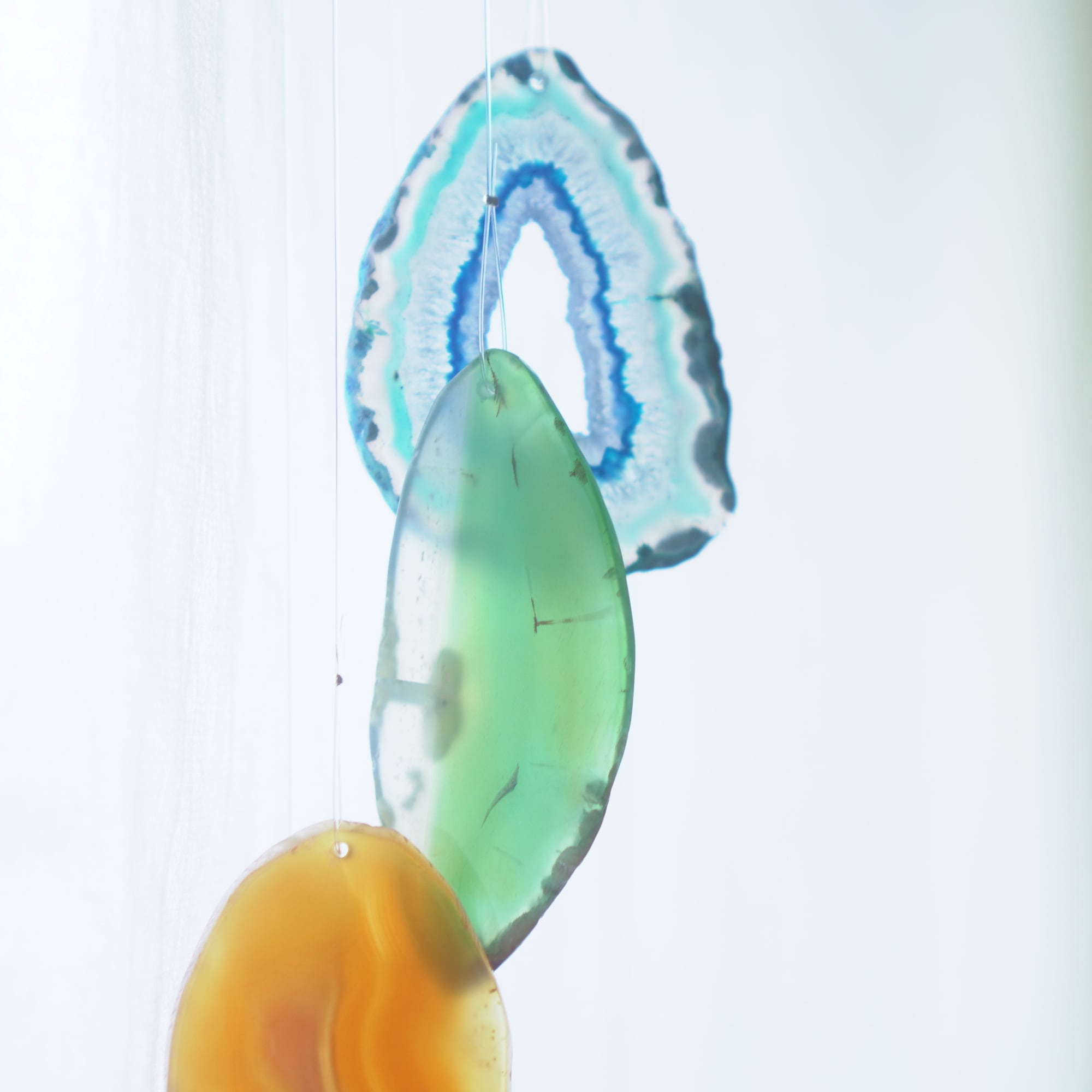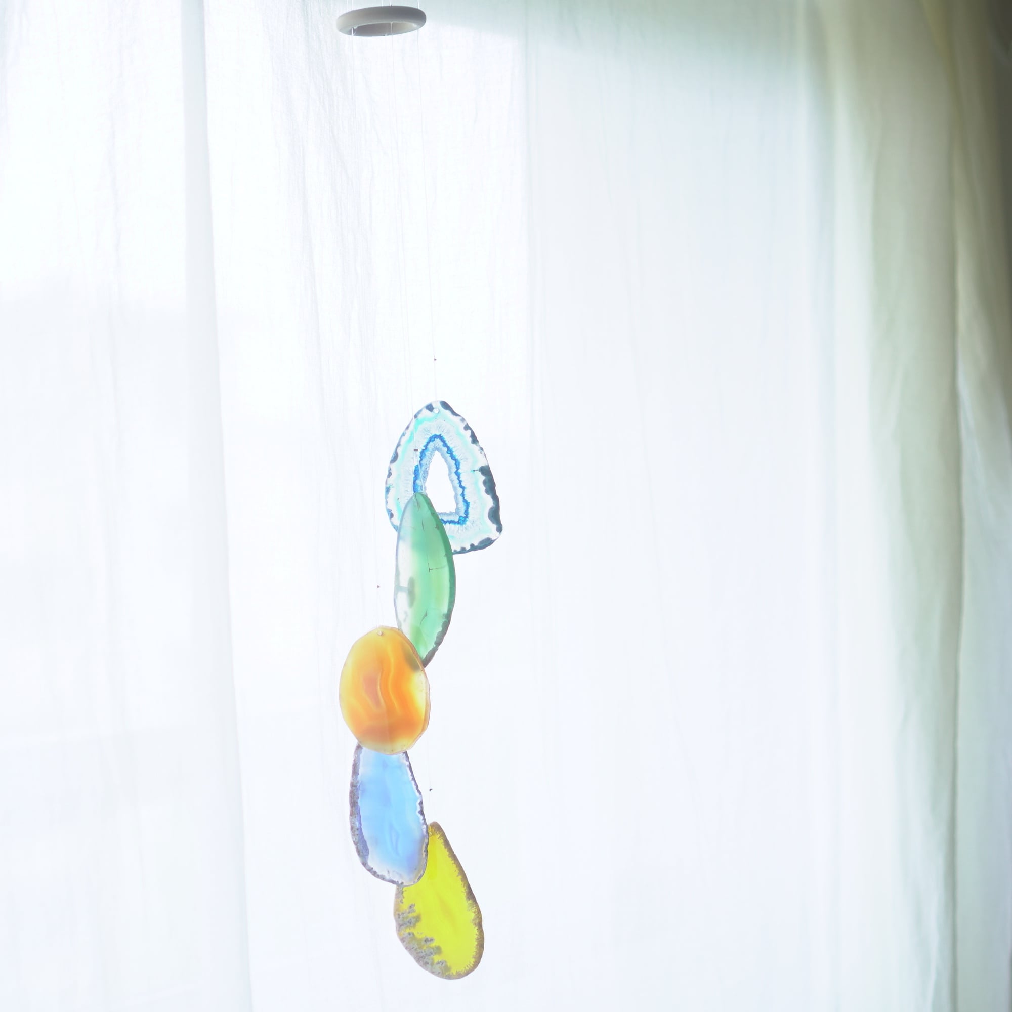 連なるアゲートが風を受けて揺れるとチリンチリン、美しい響きの音が鳴りとても癒されます。