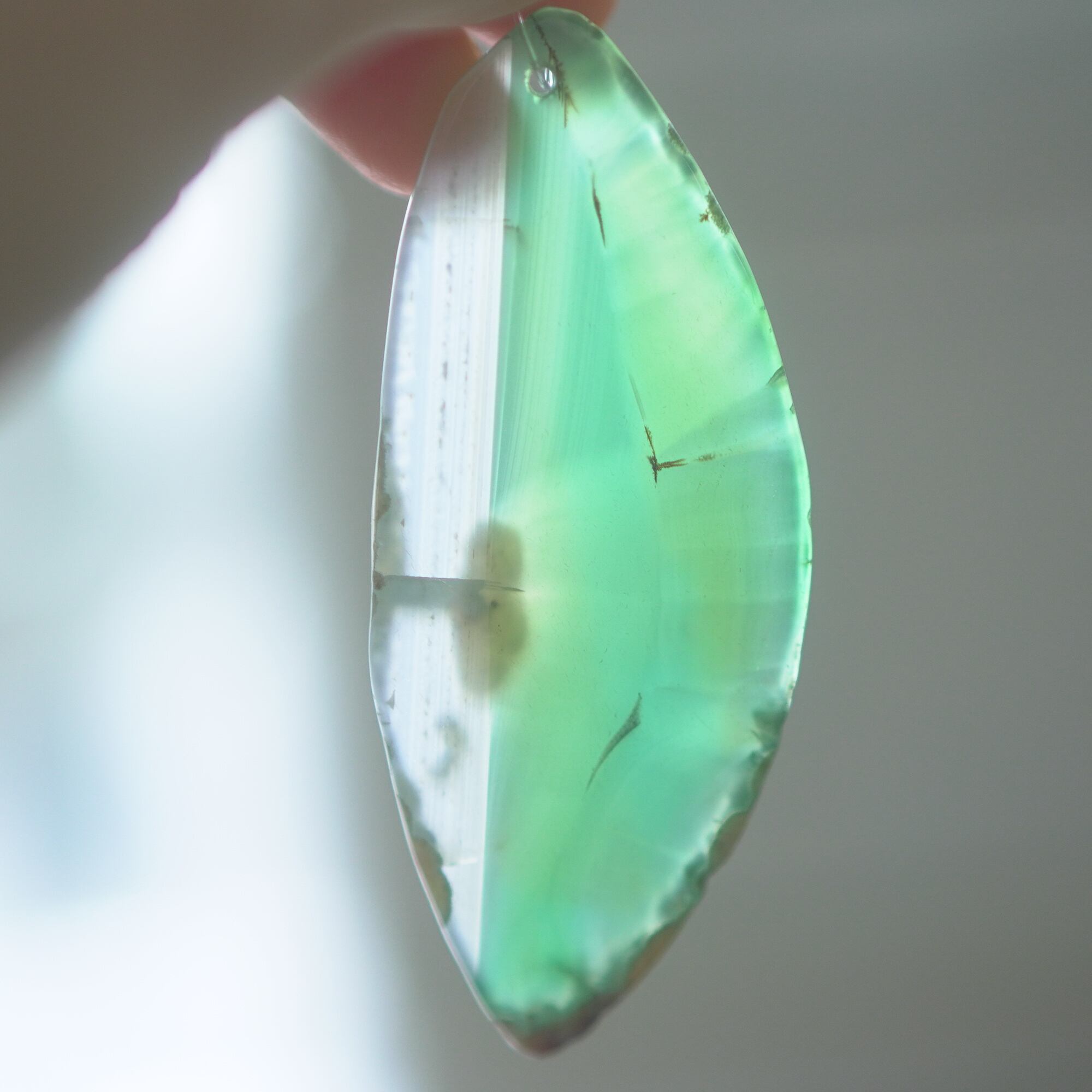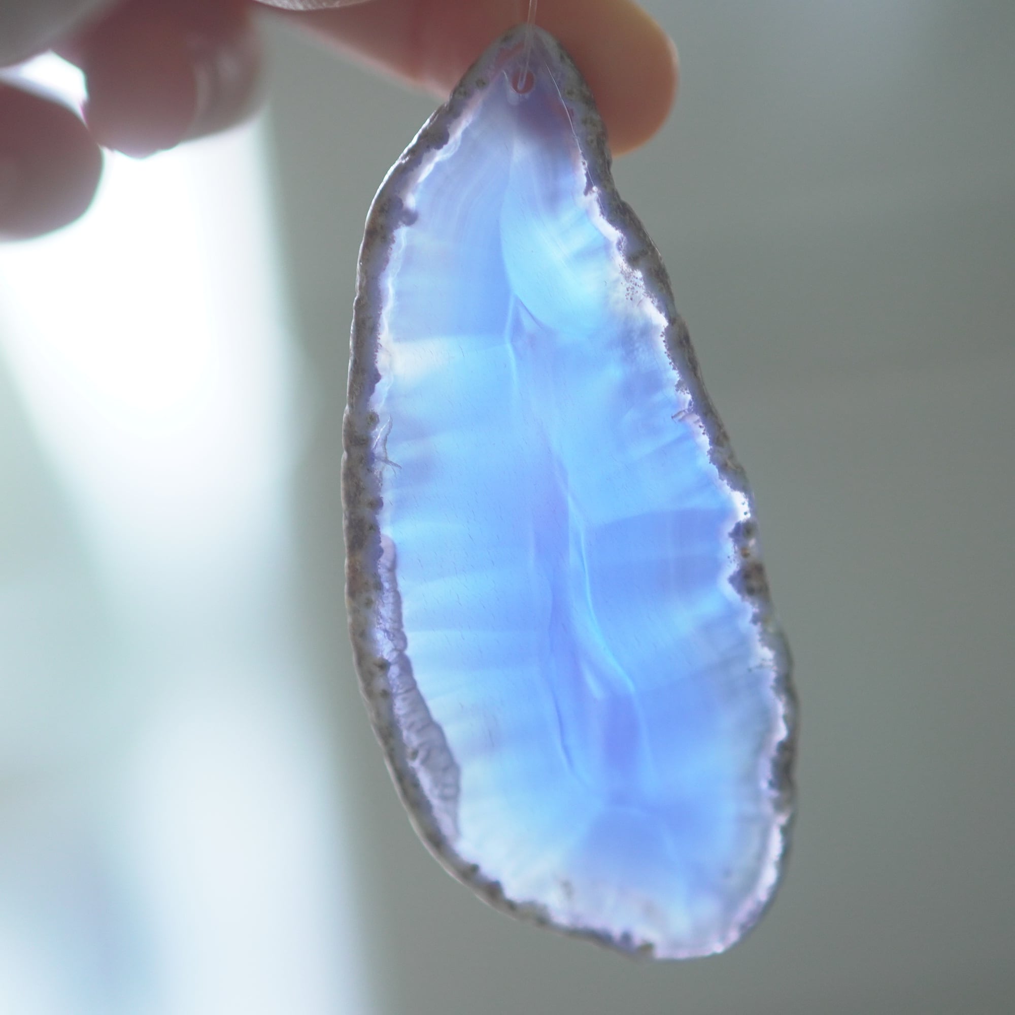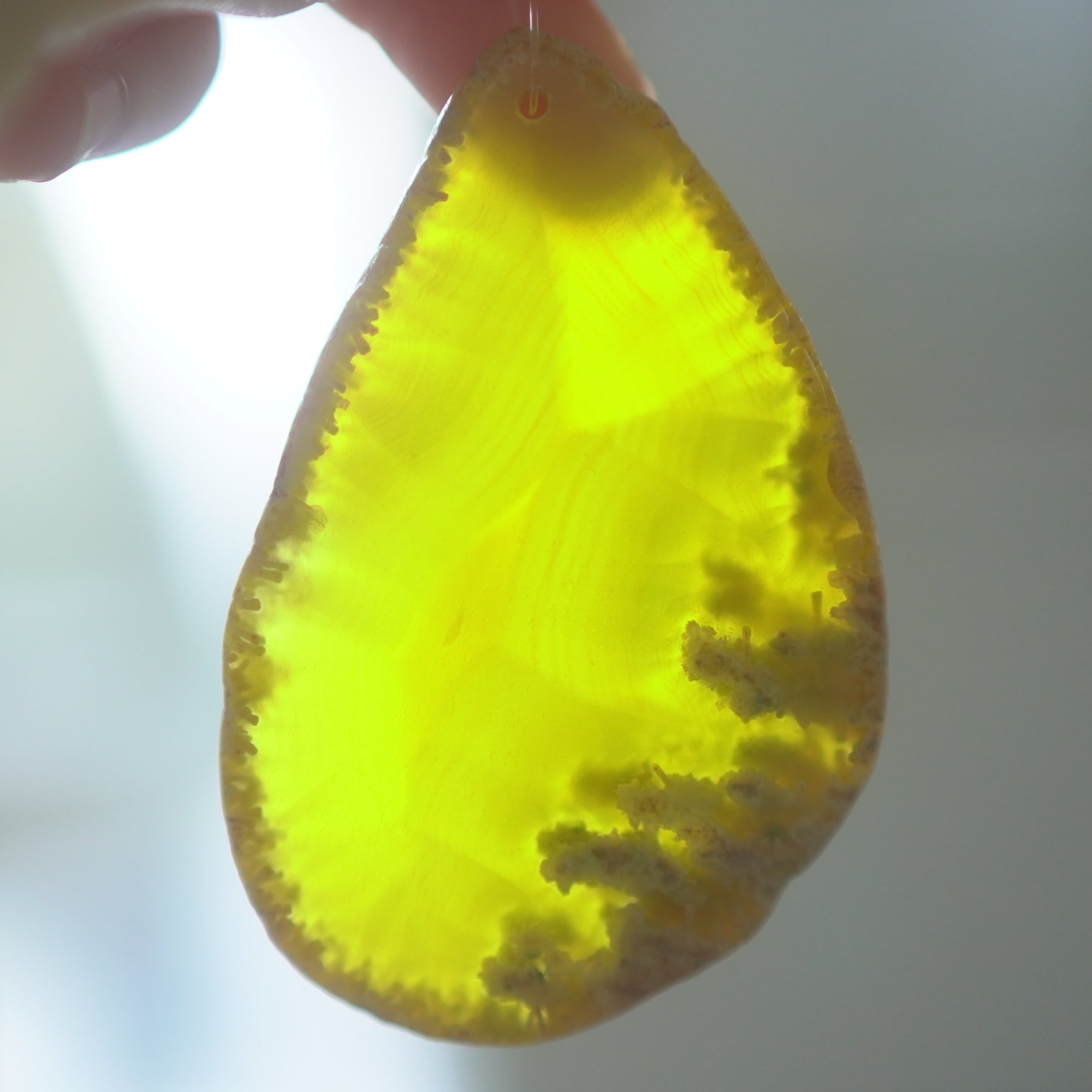 ✧✧✧染色の石なので耐光性(光による経年でのカラー変化の耐性)に優れているわけではなく一日の中で長時間強い日光に当たるような場所に飾られるのはおすすめしないのですが、陽光に透かした時にだけ真価を発揮する美しさがありますので、是非たまに翳したりして光と一緒にお楽しみいただけたらと思っております。特に濃い鮮やかな色など、気になられる場合は、日光のあまり当たらない場所に飾っていただけたらと思います✧✧✧