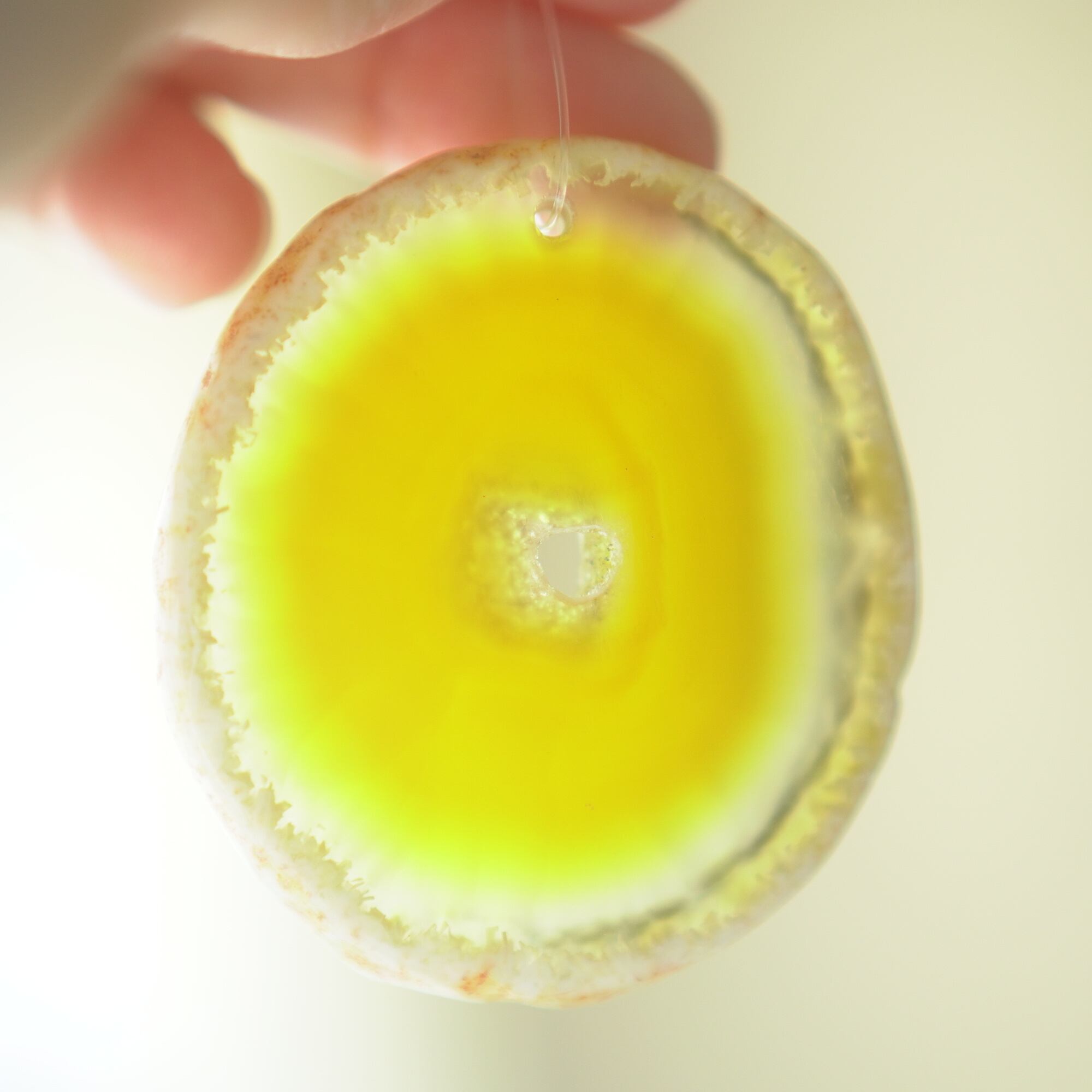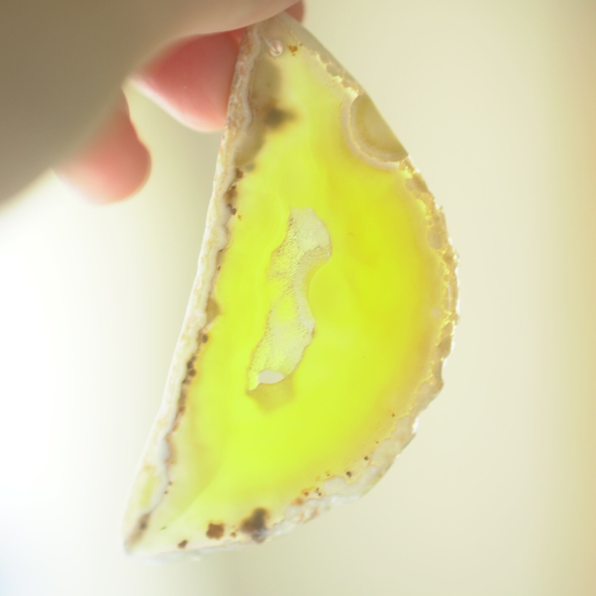 ✧✧✧染色の石なので耐光性(光による経年でのカラー変化の耐性)に優れているわけではなく一日の中で長時間強い日光に当たるような場所に飾られるのはおすすめしないのですが、陽光に透かした時にだけ真価を発揮する美しさがありますので、是非たまに翳したりして光と一緒にお楽しみいただけたらと思っております。特に濃い鮮やかな色など、気になられる場合は、日光のあまり当たらない場所に飾っていただけたらと思います✧✧✧