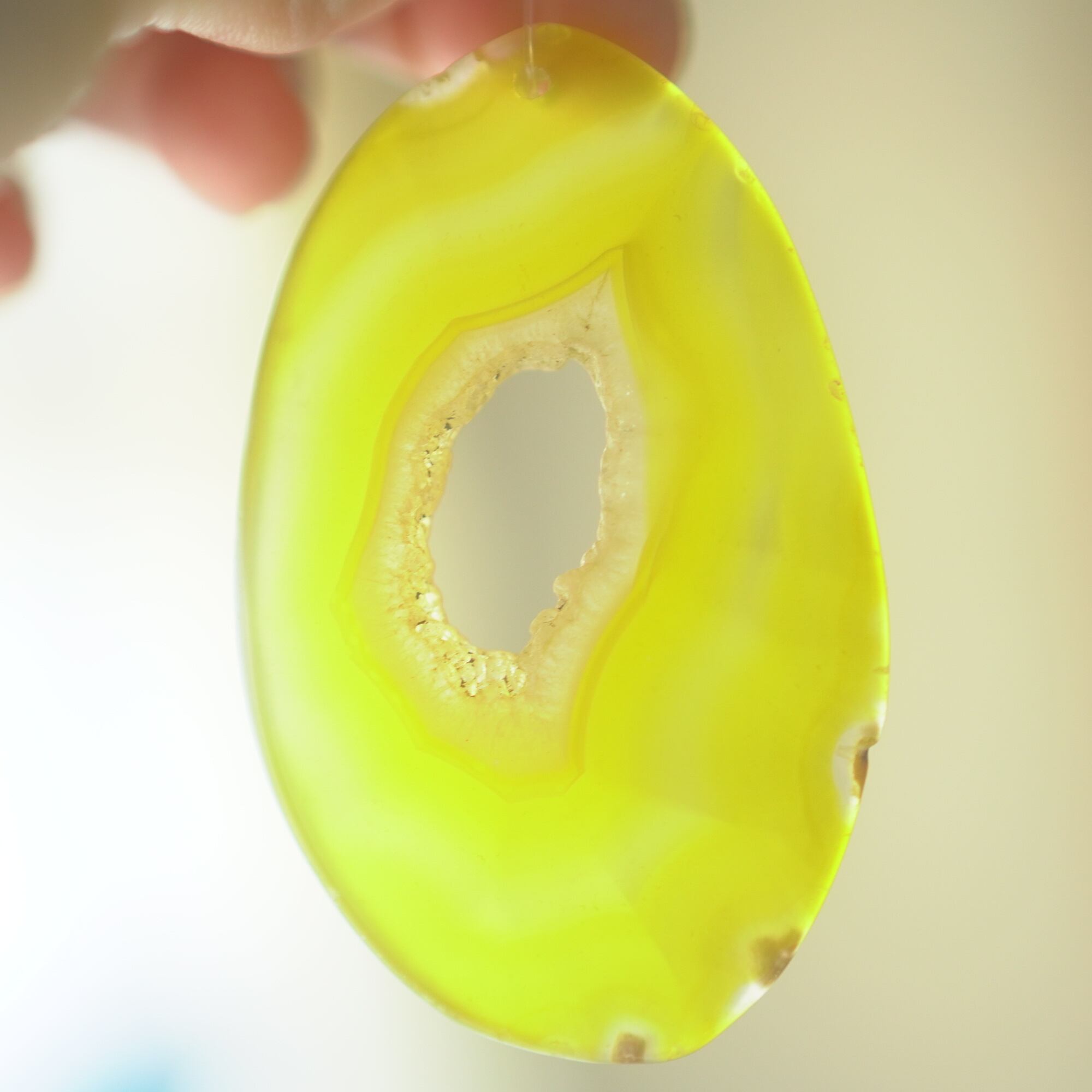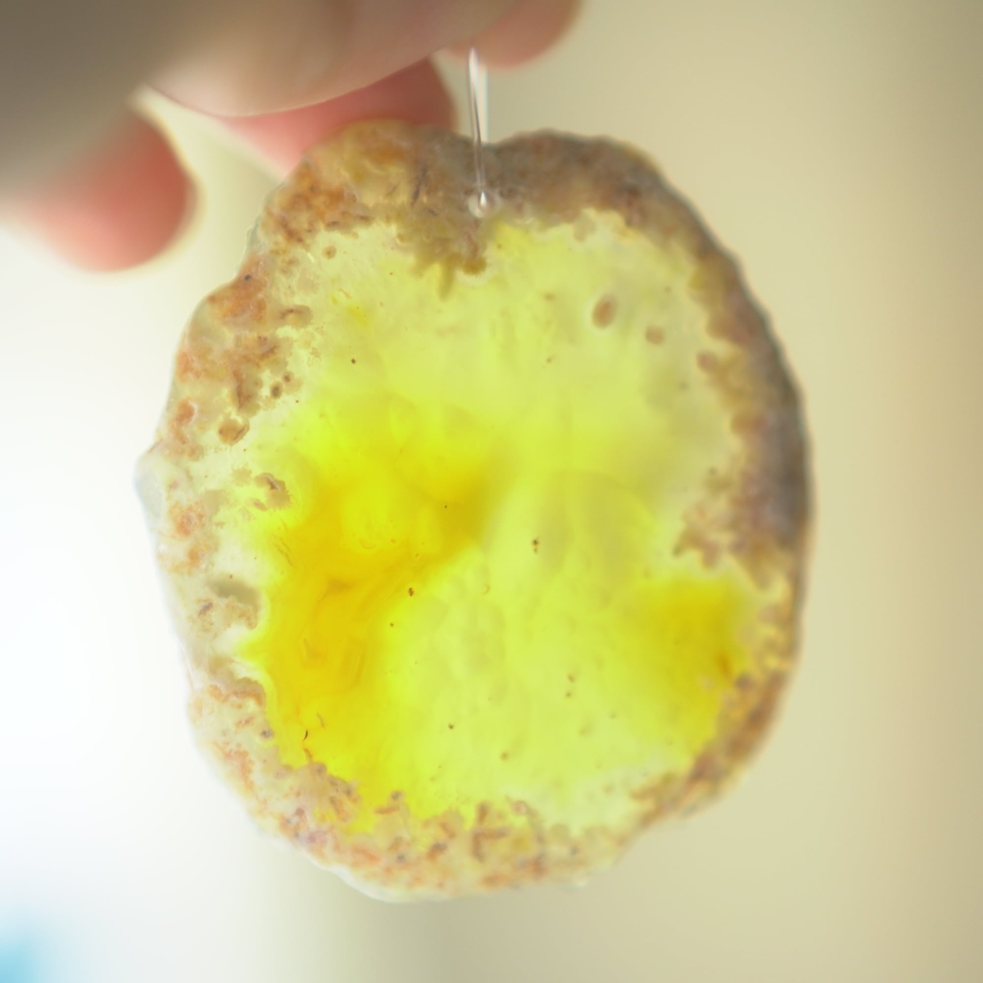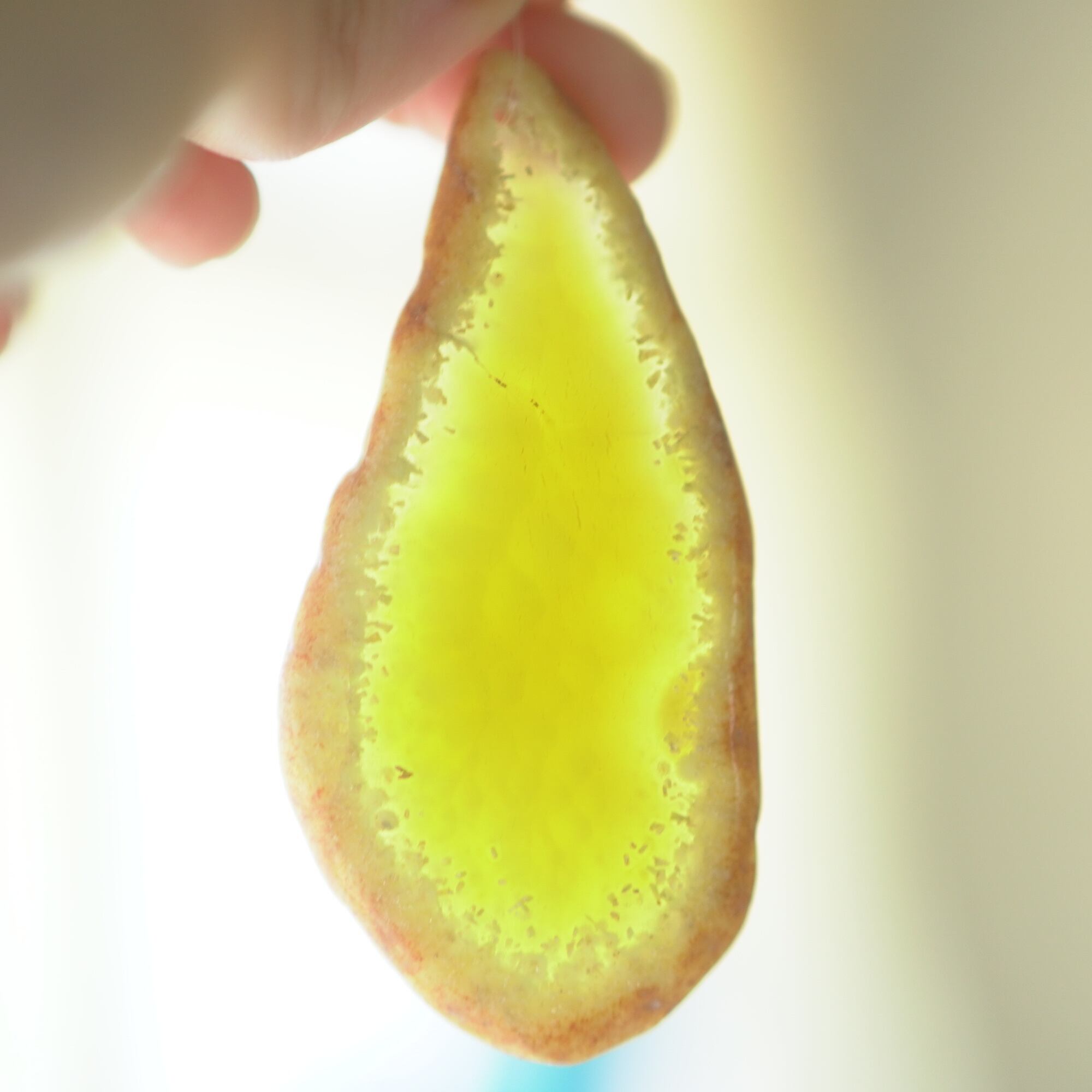 ✧✧✧染色の石なので耐光性(光による経年でのカラー変化の耐性)に優れているわけではなく一日の中で長時間強い日光に当たるような場所に飾られるのはおすすめしないのですが、陽光に透かした時にだけ真価を発揮する美しさがありますので、是非たまに翳したりして光と一緒にお楽しみいただけたらと思っております。特に濃い鮮やかな色など、気になられる場合は、日光のあまり当たらない場所に飾っていただけたらと思います✧✧✧