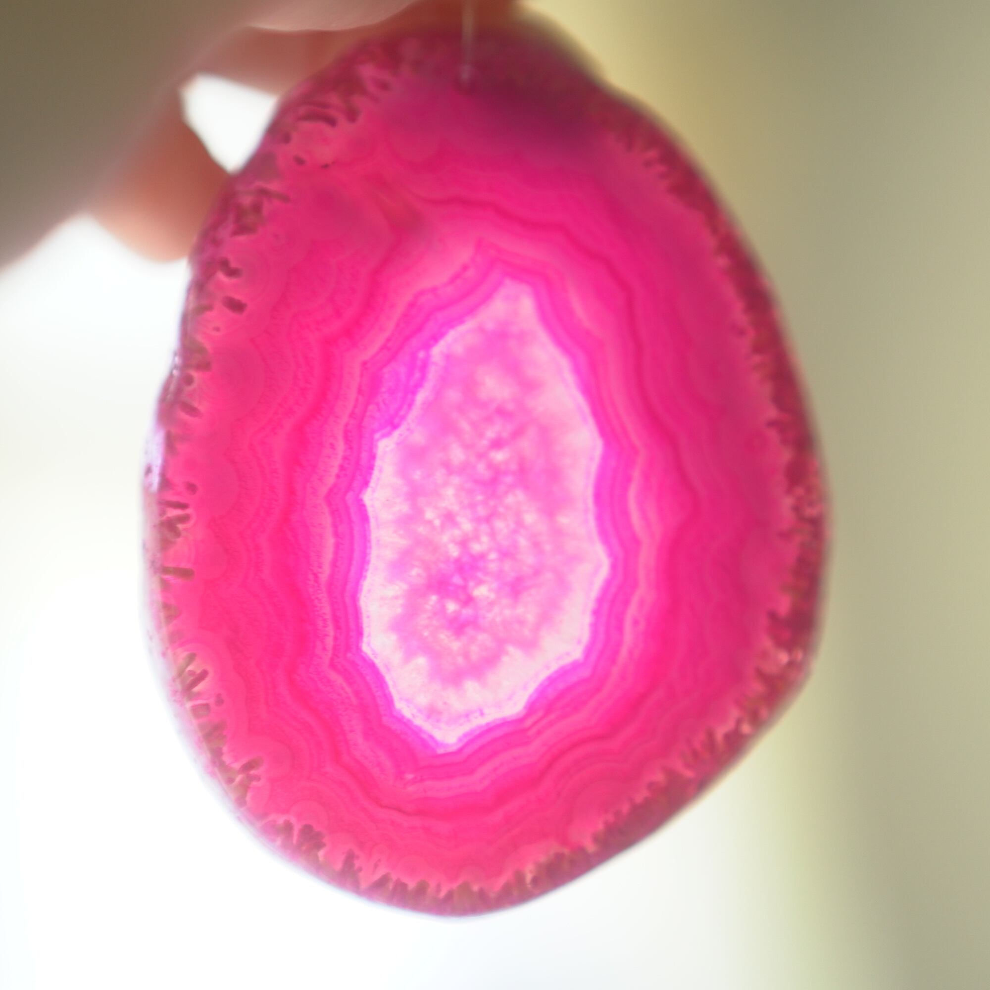 ✧✧✧染色の石なので耐光性(光による経年でのカラー変化の耐性)に優れているわけではなく一日の中で長時間強い日光に当たるような場所に飾られるのはおすすめしないのですが、陽光に透かした時にだけ真価を発揮する美しさがありますので、是非たまに翳したりして光と一緒にお楽しみいただけたらと思っております。特に濃い鮮やかな色など、気になられる場合は、日光のあまり当たらない場所に飾っていただけたらと思います✧✧✧