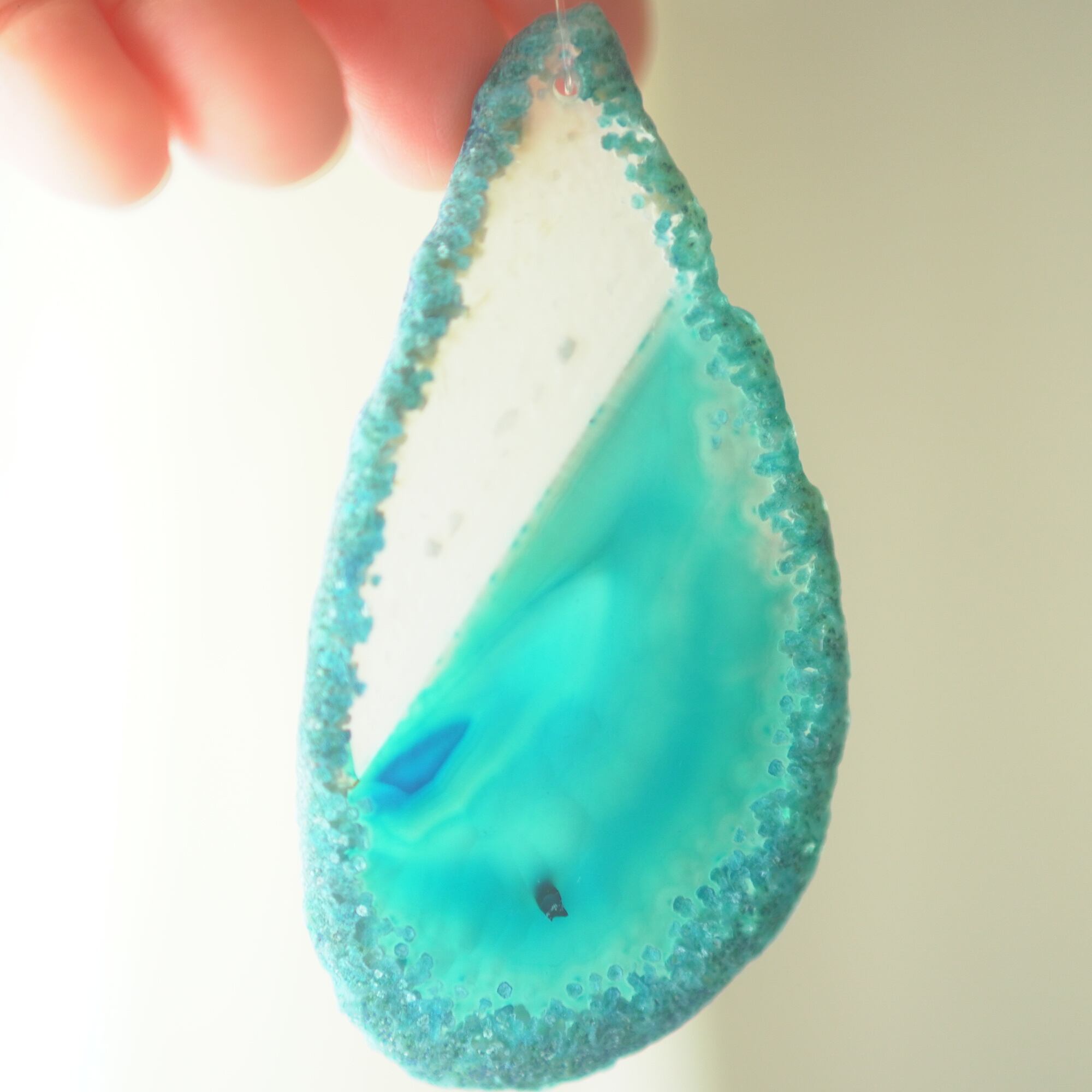 ✧✧✧染色の石なので耐光性(光による経年でのカラー変化の耐性)に優れているわけではなく一日の中で長時間強い日光に当たるような場所に飾られるのはおすすめしないのですが、陽光に透かした時にだけ真価を発揮する美しさがありますので、是非たまに翳したりして光と一緒にお楽しみいただけたらと思っております。特に濃い鮮やかな色など、気になられる場合は、日光のあまり当たらない場所に飾っていただけたらと思います✧✧✧