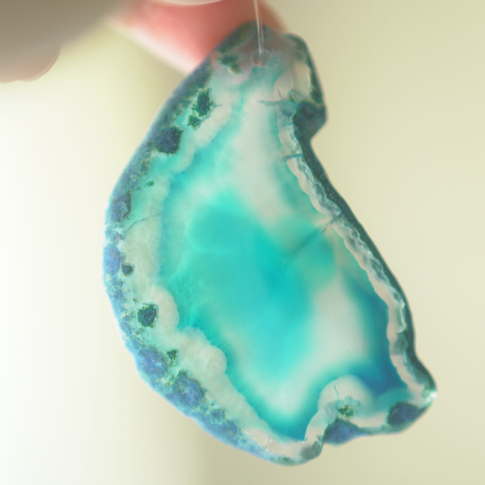 ✧✧✧染色の石なので耐光性(光による経年でのカラー変化の耐性)に優れているわけではなく一日の中で長時間強い日光に当たるような場所に飾られるのはおすすめしないのですが、陽光に透かした時にだけ真価を発揮する美しさがありますので、是非たまに翳したりして光と一緒にお楽しみいただけたらと思っております。特に濃い鮮やかな色など、気になられる場合は、日光のあまり当たらない場所に飾っていただけたらと思います✧✧✧