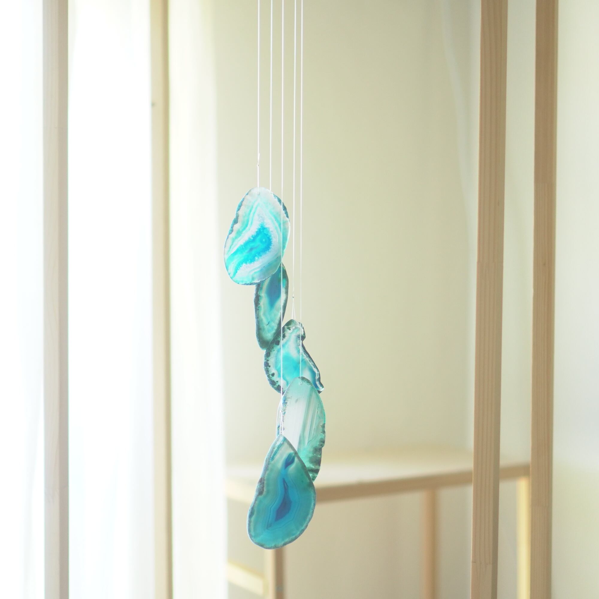 連なるアゲートが風を受けて揺れるとチリンチリン、美しい響きの音が鳴りとても癒されます。