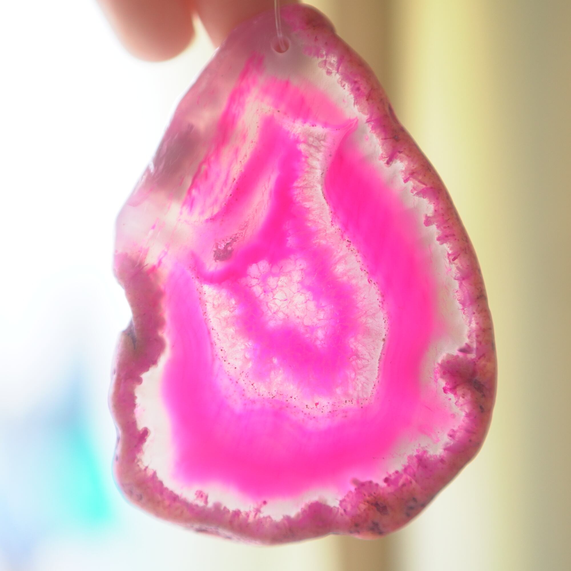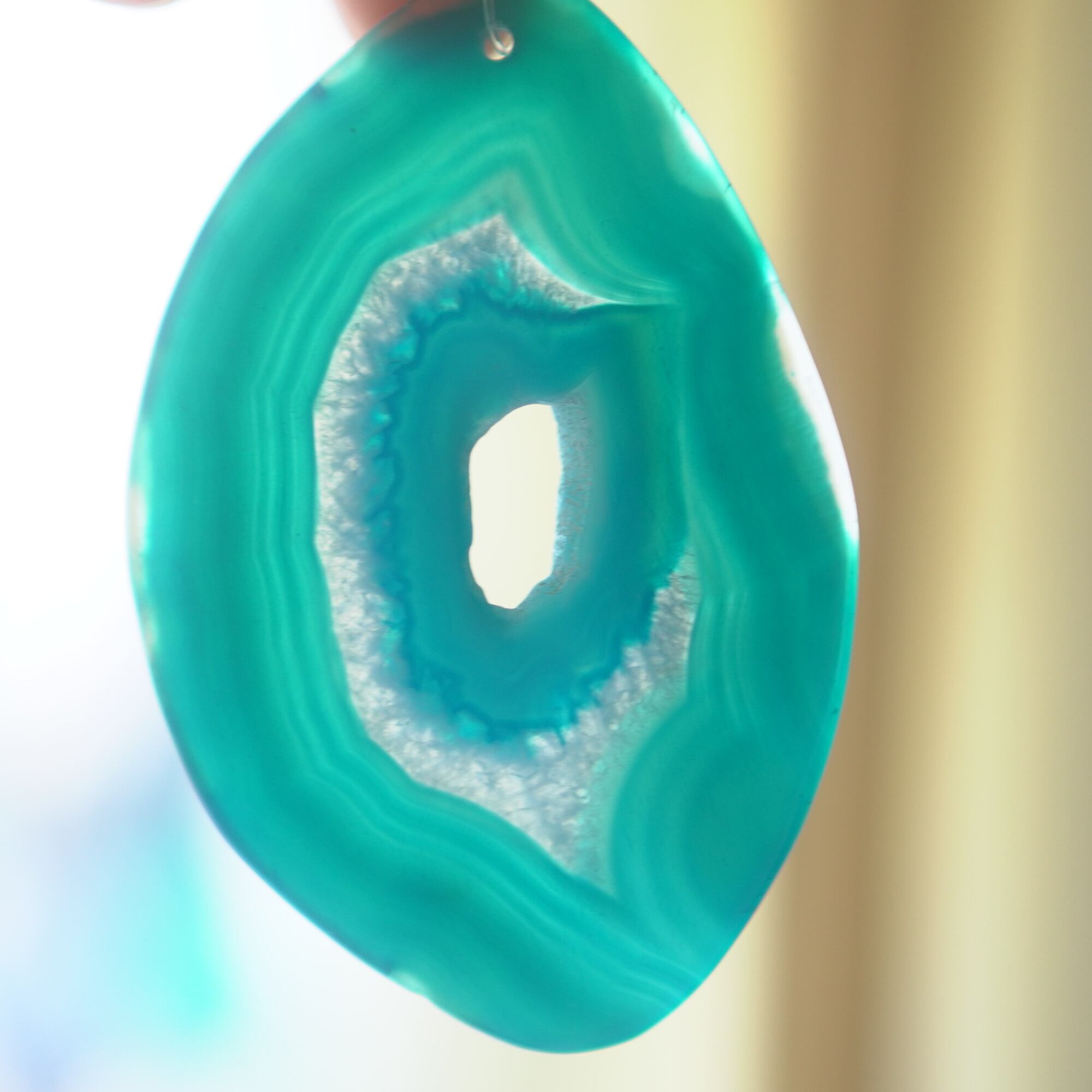 ✧✧✧染色の石なので耐光性(光による経年でのカラー変化の耐性)に優れているわけではなく一日の中で長時間強い日光に当たるような場所に飾られるのはおすすめしないのですが、陽光に透かした時にだけ真価を発揮する美しさがありますので、是非たまに翳したりして光と一緒にお楽しみいただけたらと思っております。特に濃い鮮やかな色など、気になられる場合は、日光のあまり当たらない場所に飾っていただけたらと思います✧✧✧