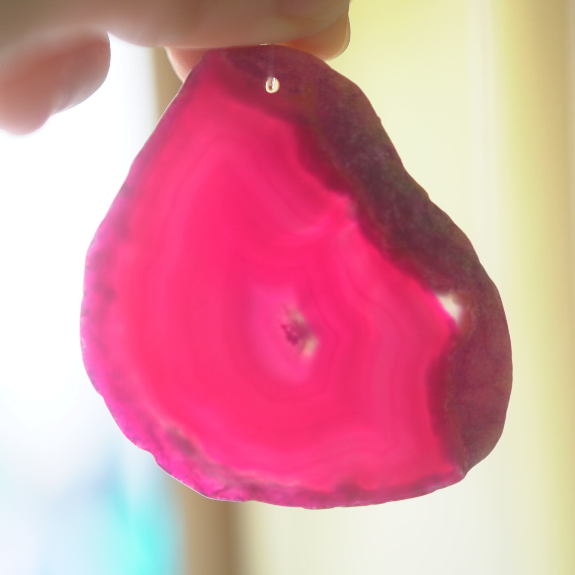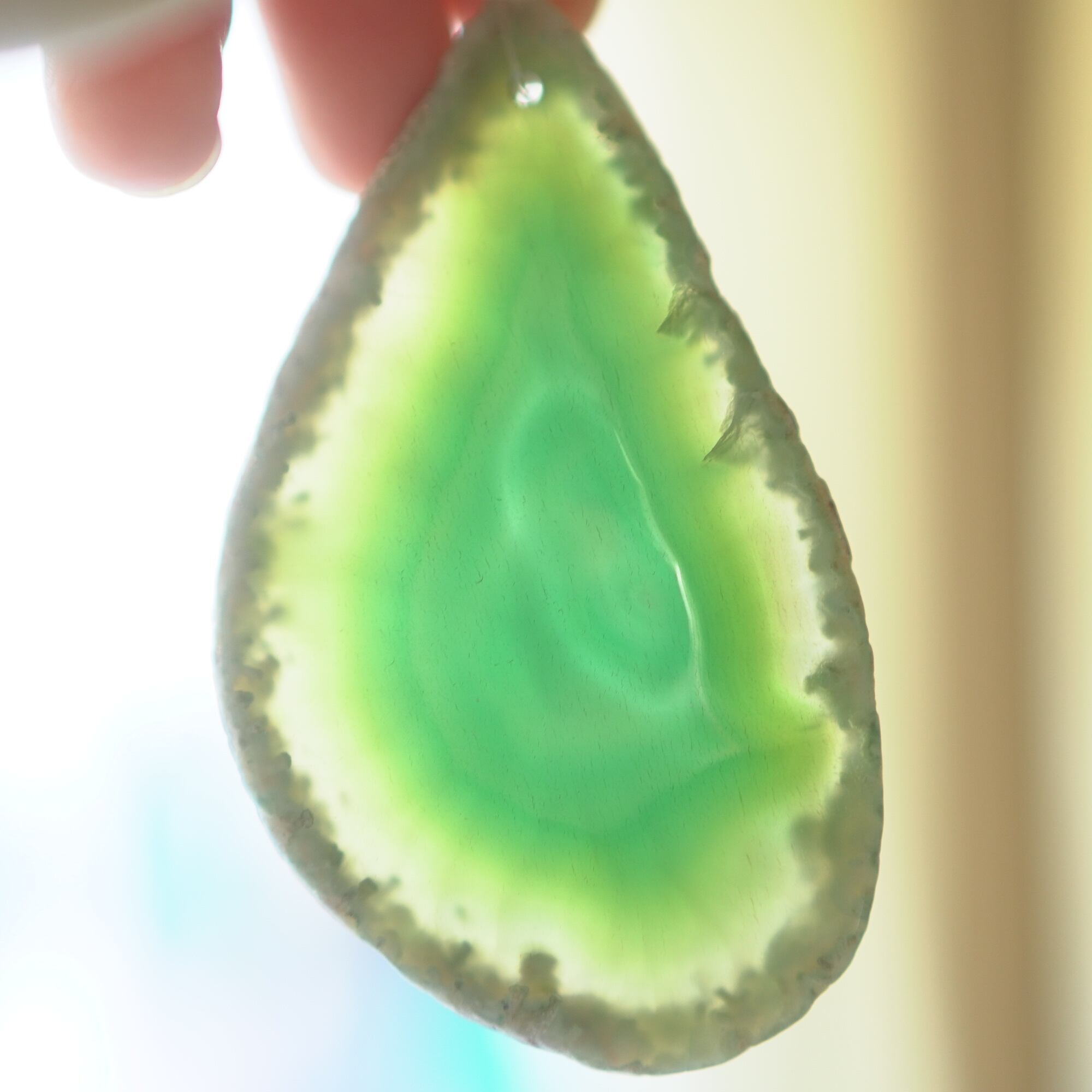 ✧✧✧染色の石なので耐光性(光による経年でのカラー変化の耐性)に優れているわけではなく一日の中で長時間強い日光に当たるような場所に飾られるのはおすすめしないのですが、陽光に透かした時にだけ真価を発揮する美しさがありますので、是非たまに翳したりして光と一緒にお楽しみいただけたらと思っております。特に濃い鮮やかな色など、気になられる場合は、日光のあまり当たらない場所に飾っていただけたらと思います✧✧✧