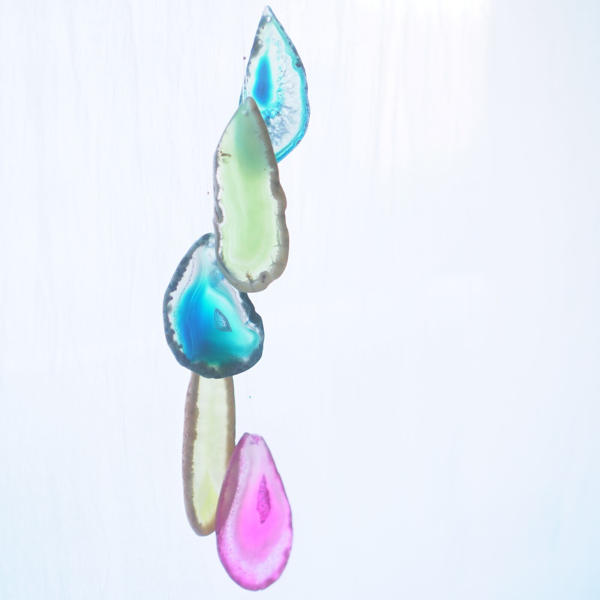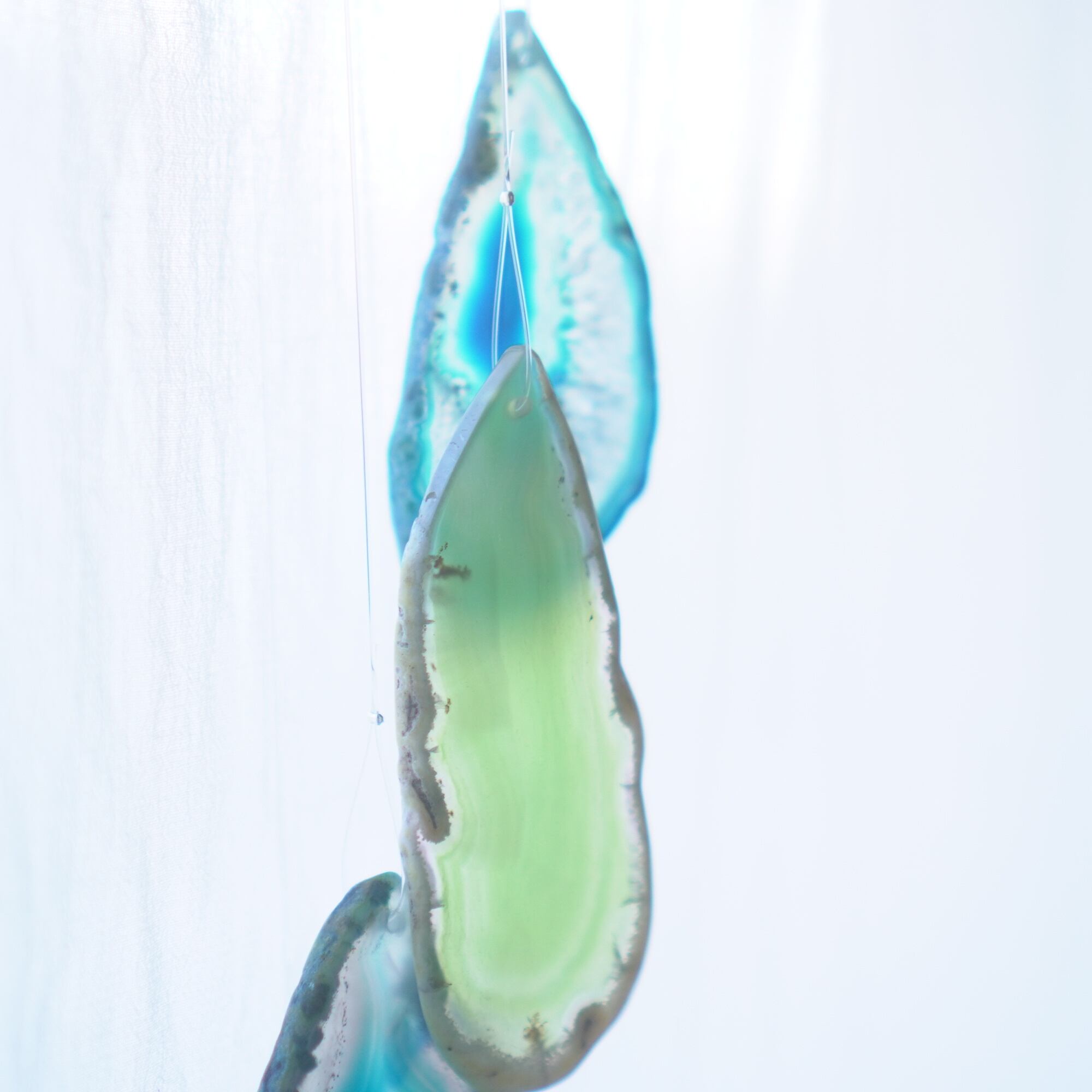 連なるアゲートが風を受けて揺れるとチリンチリン、美しい響きの音が鳴りとても癒されます。