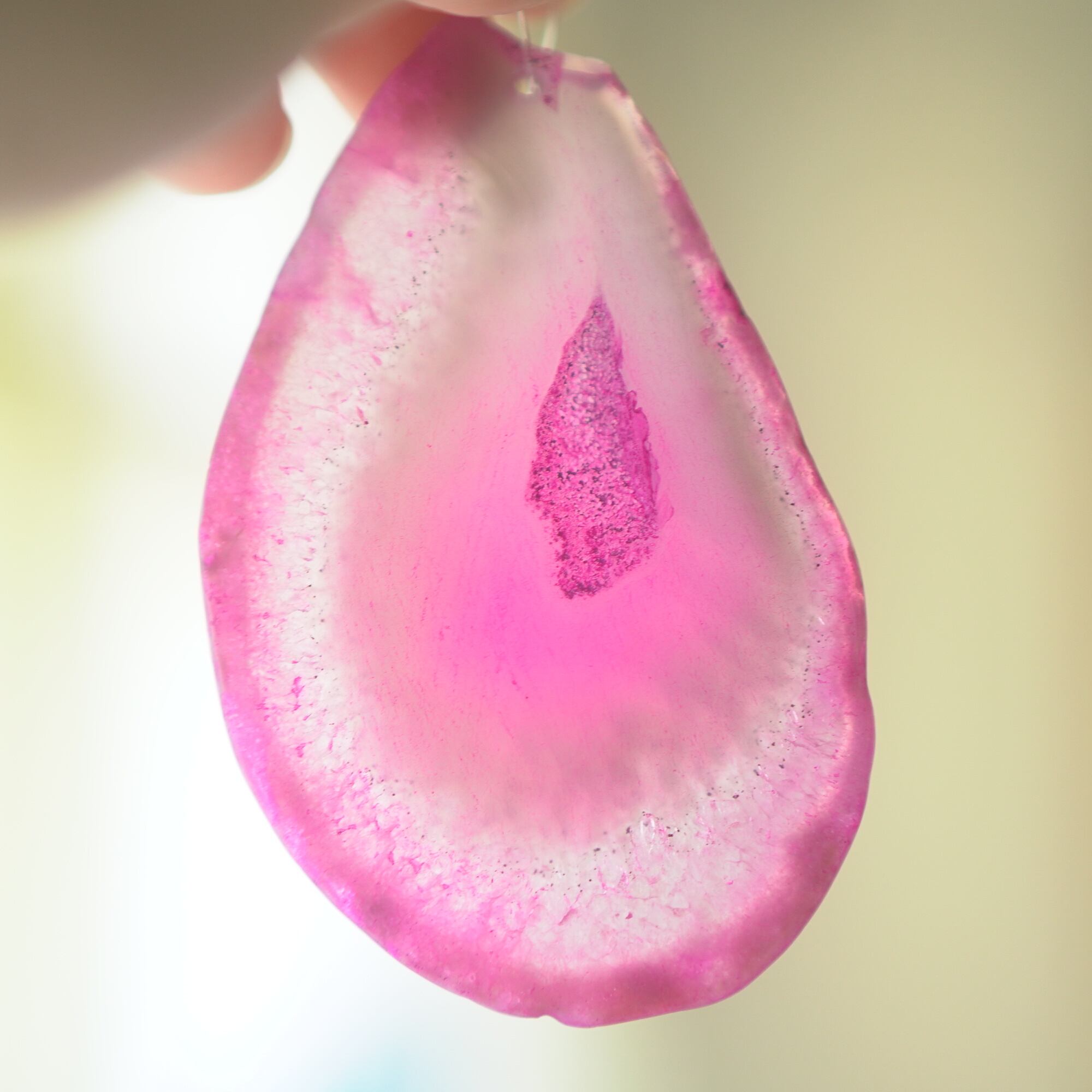 ✧✧✧染色の石なので耐光性(光による経年でのカラー変化の耐性)に優れているわけではなく一日の中で長時間強い日光に当たるような場所に飾られるのはおすすめしないのですが、陽光に透かした時にだけ真価を発揮する美しさがありますので、是非たまに翳したりして光と一緒にお楽しみいただけたらと思っております。特に濃い鮮やかな色など、気になられる場合は、日光のあまり当たらない場所に飾っていただけたらと思います✧✧✧