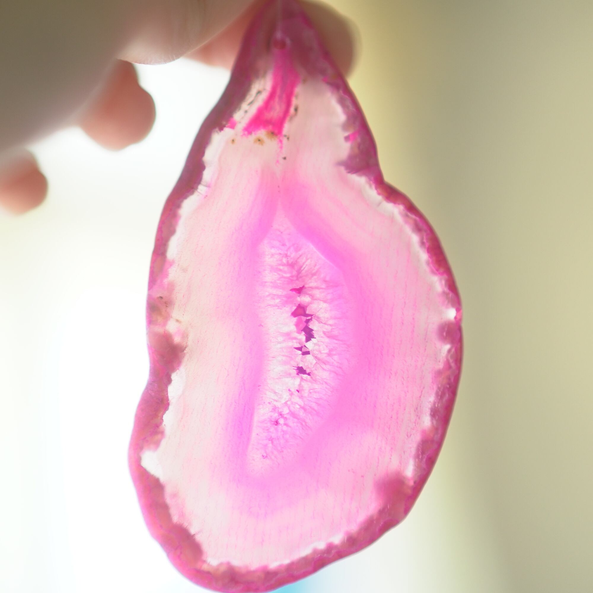✧✧✧染色の石なので耐光性(光による経年でのカラー変化の耐性)に優れているわけではなく一日の中で長時間強い日光に当たるような場所に飾られるのはおすすめしないのですが、陽光に透かした時にだけ真価を発揮する美しさがありますので、是非たまに翳したりして光と一緒にお楽しみいただけたらと思っております。特に濃い鮮やかな色など、気になられる場合は、日光のあまり当たらない場所に飾っていただけたらと思います✧✧✧