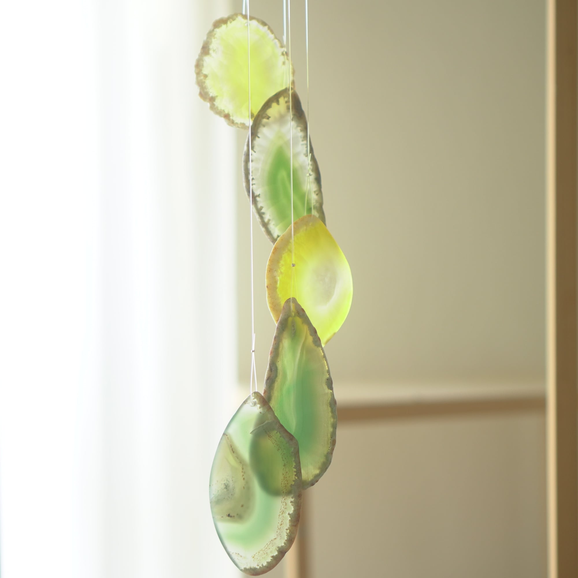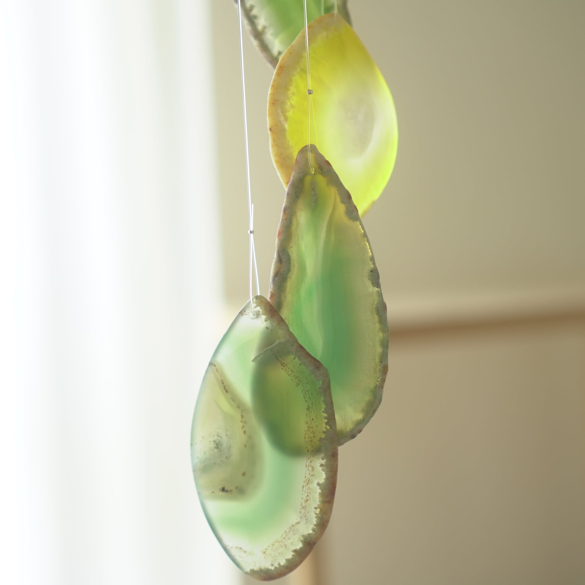 連なるアゲートが風を受けて揺れるとチリンチリン、美しい響きの音が鳴りとても癒されます。