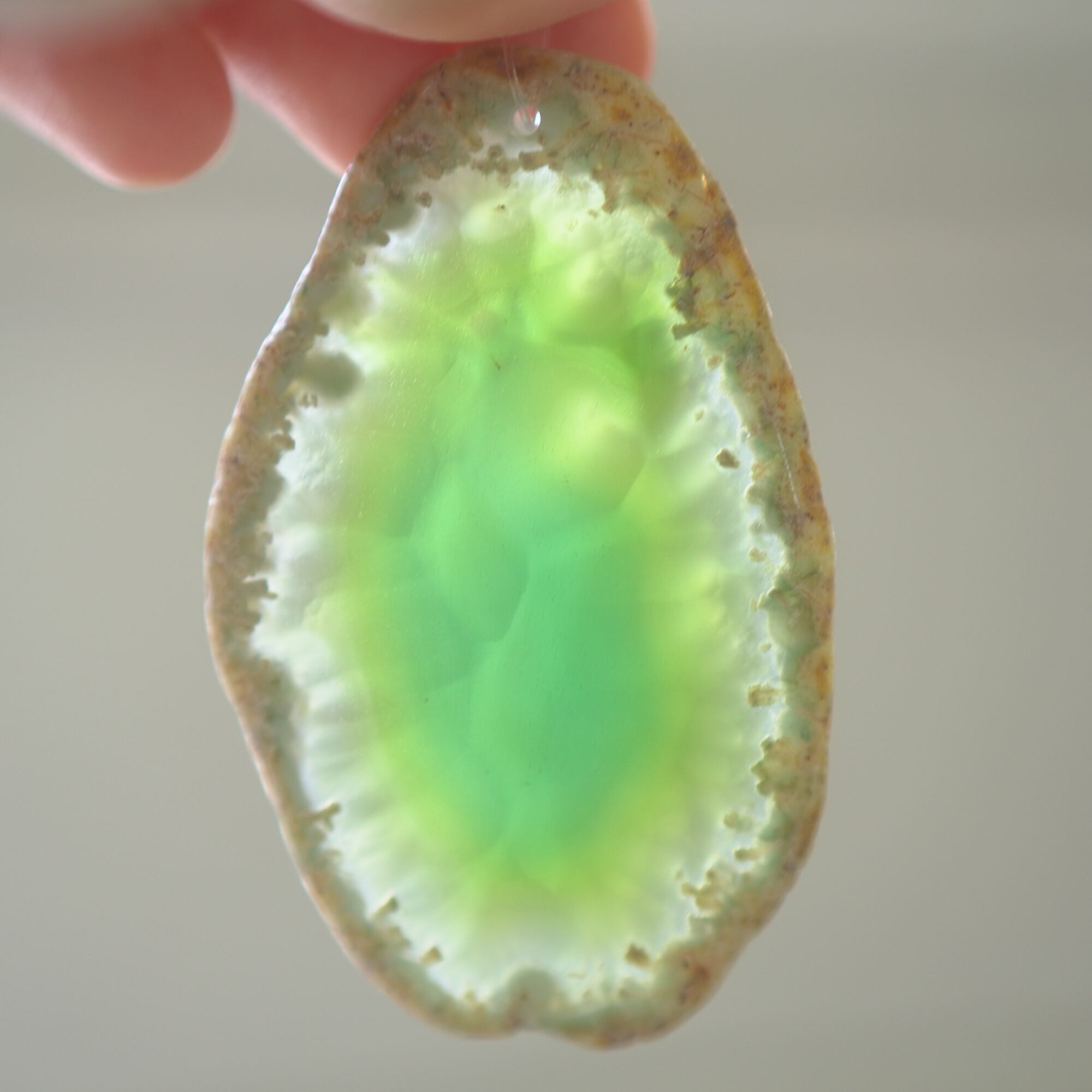 ✧✧✧染色の石なので耐光性(光による経年でのカラー変化の耐性)に優れているわけではなく一日の中で長時間強い日光に当たるような場所に飾られるのはおすすめしないのですが、陽光に透かした時にだけ真価を発揮する美しさがありますので、是非たまに翳したりして光と一緒にお楽しみいただけたらと思っております。特に濃い鮮やかな色など、気になられる場合は、日光のあまり当たらない場所に飾っていただけたらと思います✧✧✧