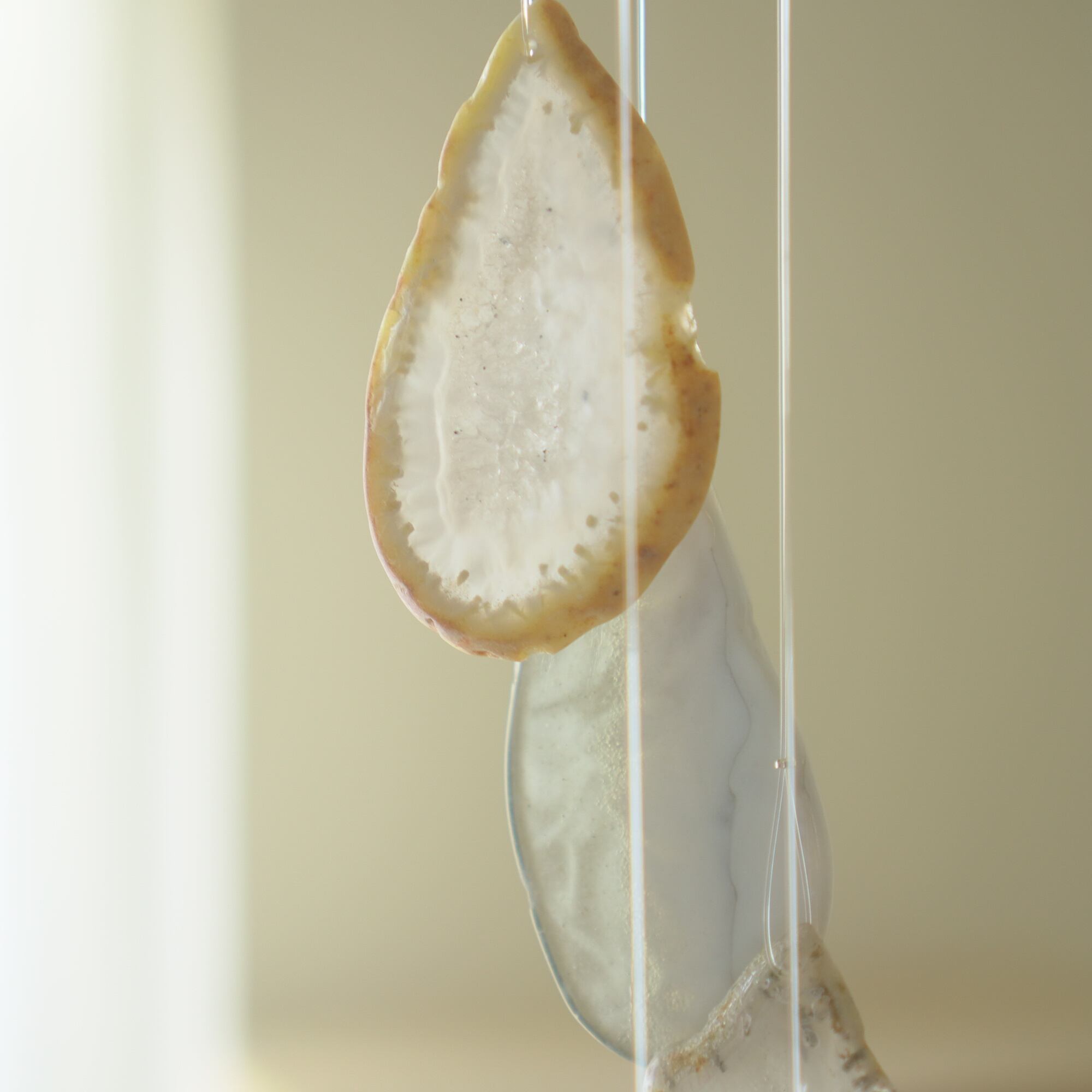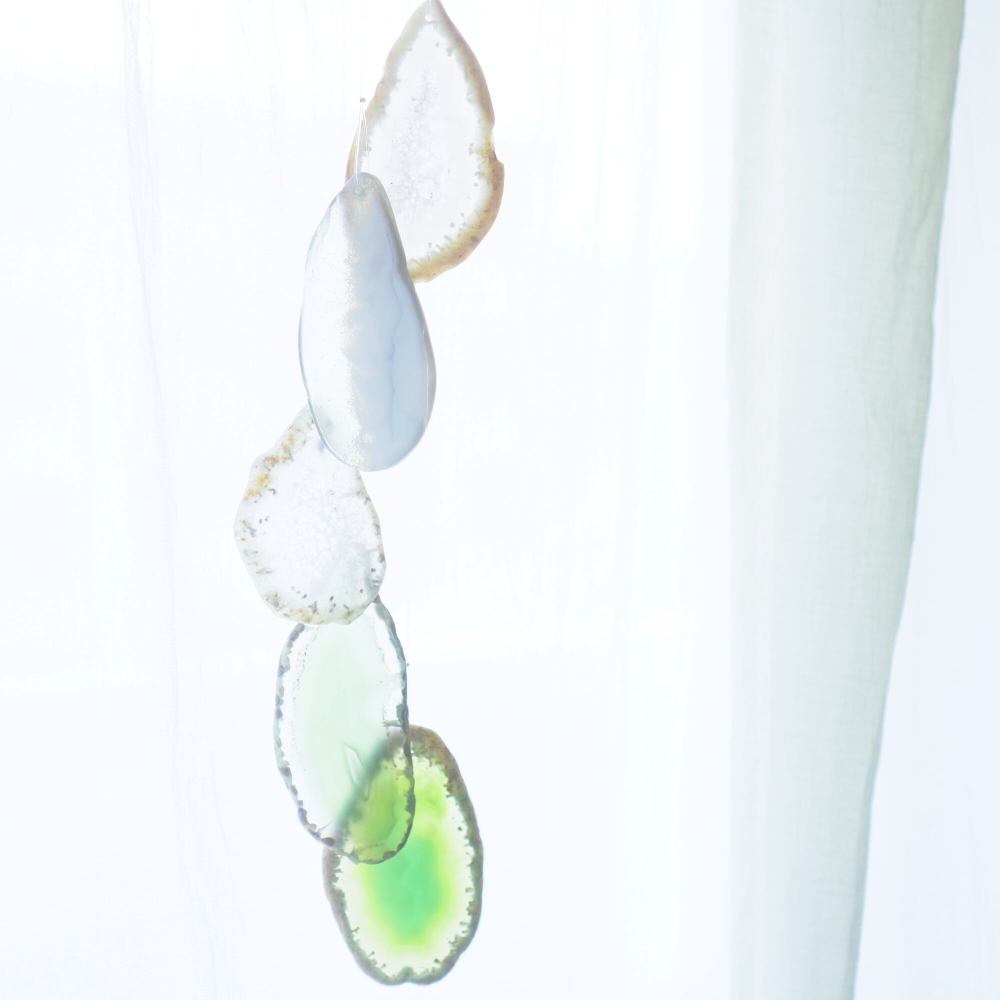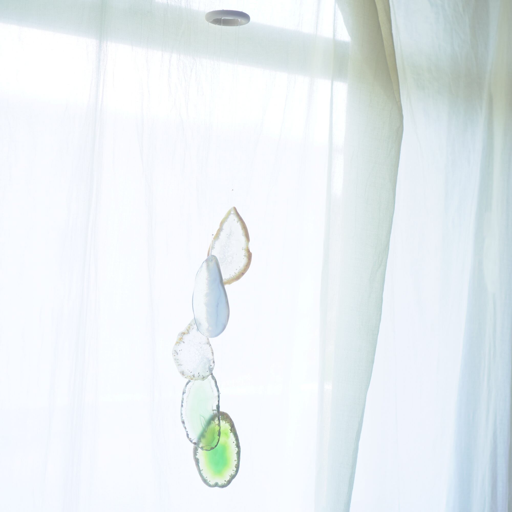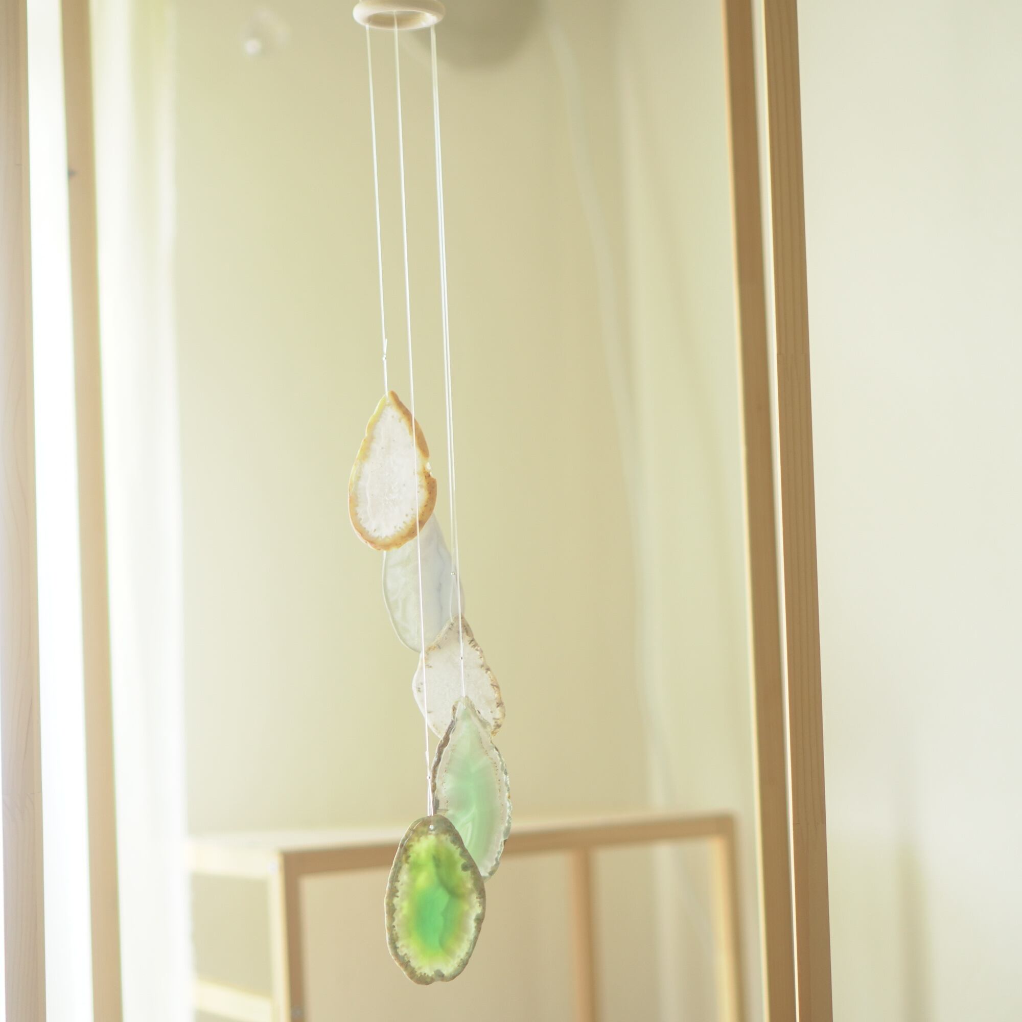 連なるアゲートが風を受けて揺れるとチリンチリン、美しい響きの音が鳴りとても癒されます。