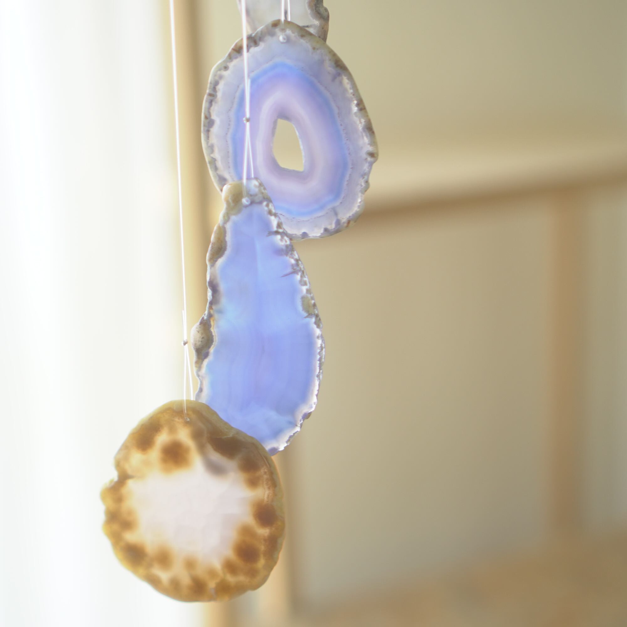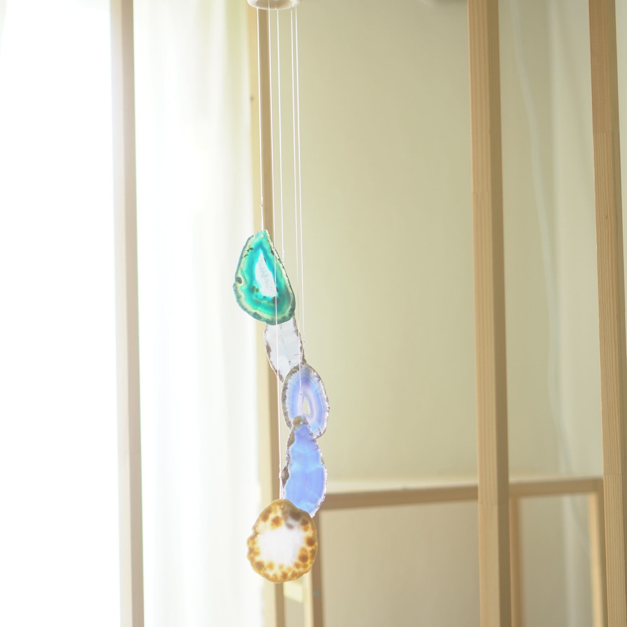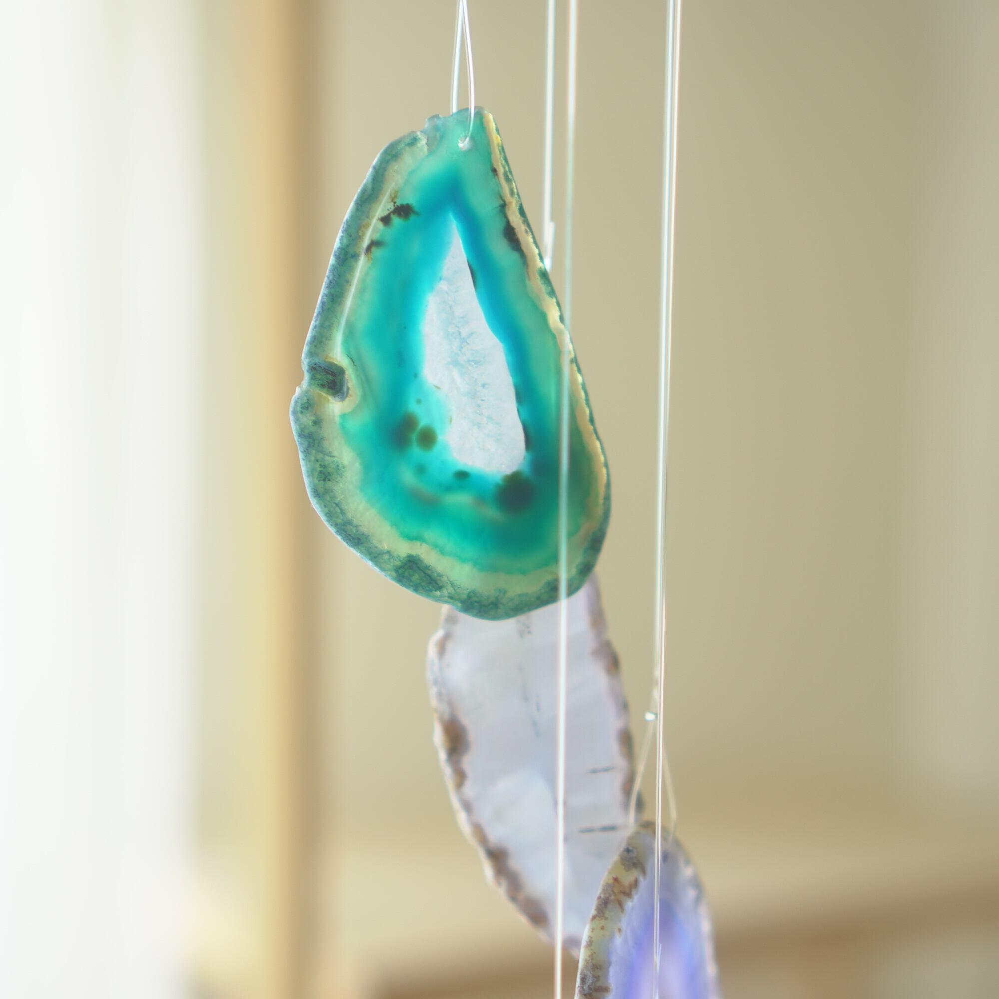 連なるアゲートが風を受けて揺れるとチリンチリン、美しい響きの音が鳴りとても癒されます。