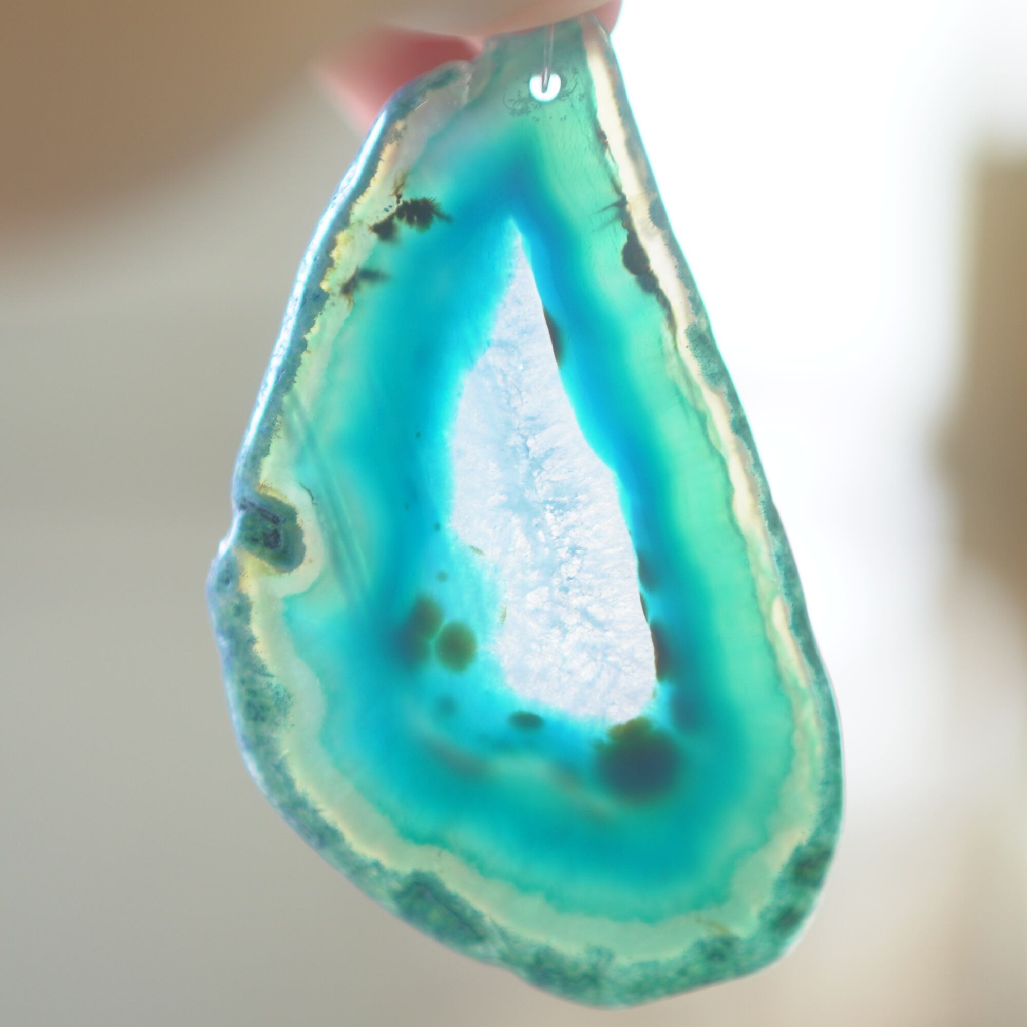 ✧✧✧染色の石なので耐光性(光による経年でのカラー変化の耐性)に優れているわけではなく一日の中で長時間強い日光に当たるような場所に飾られるのはおすすめしないのですが、陽光に透かした時にだけ真価を発揮する美しさがありますので、是非たまに翳したりして光と一緒にお楽しみいただけたらと思っております。特に濃い鮮やかな色など、気になられる場合は、日光のあまり当たらない場所に飾っていただけたらと思います✧✧✧