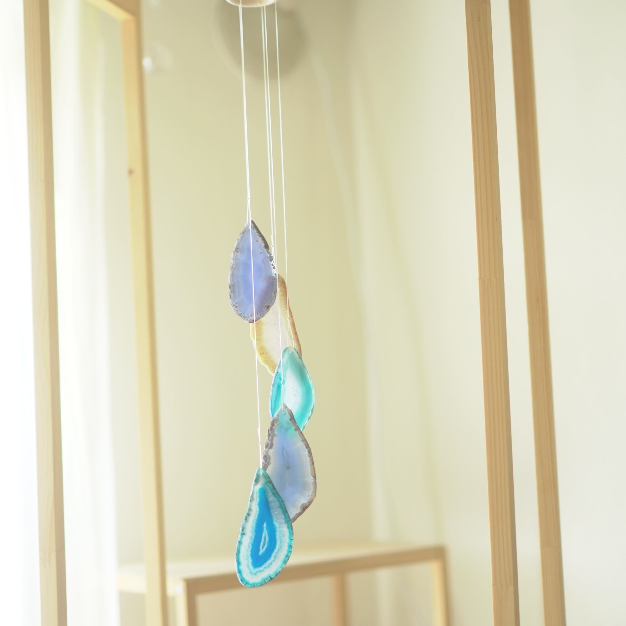 連なるアゲートが風を受けて揺れるとチリンチリン、美しい響きの音が鳴りとても癒されます。