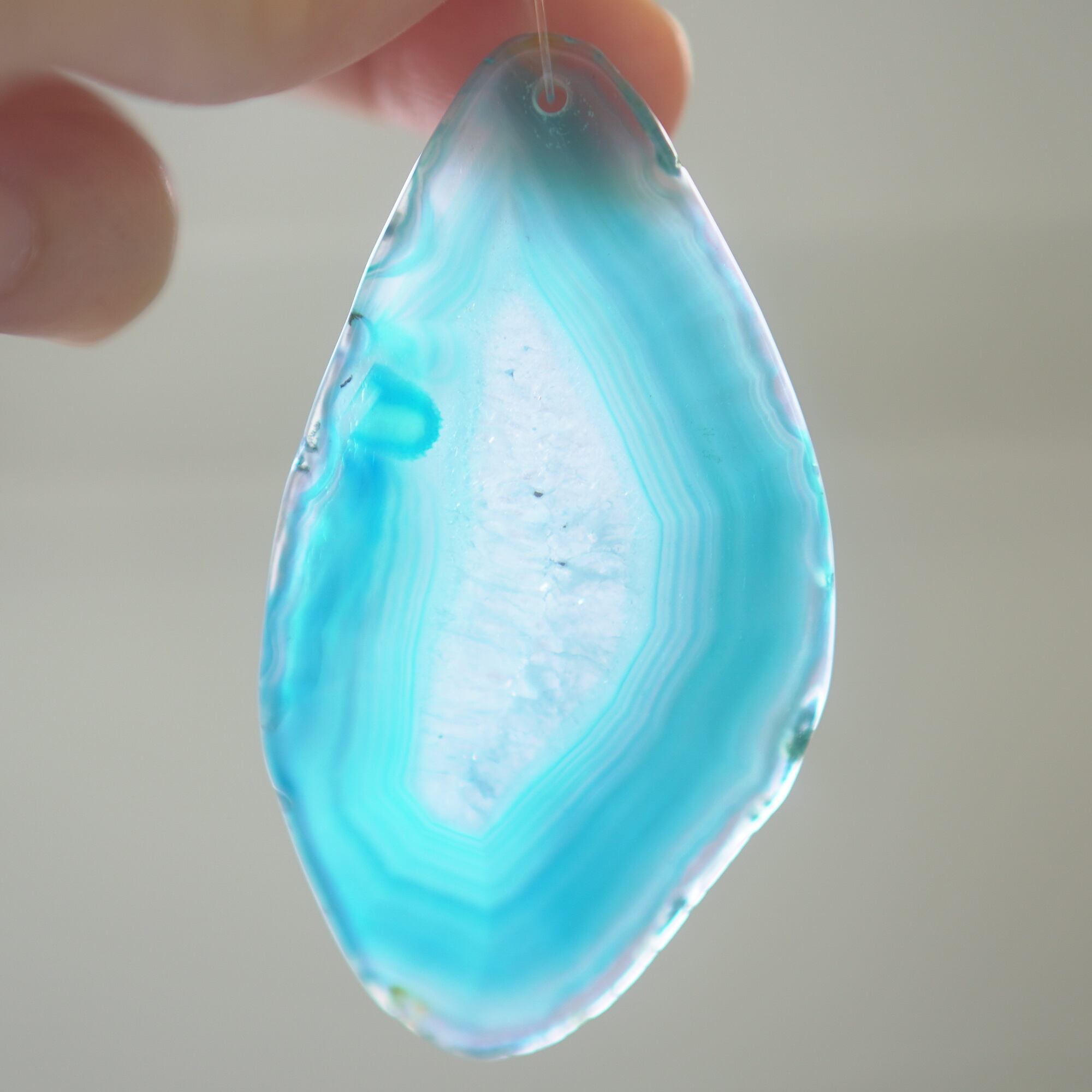✧✧✧染色の石なので耐光性(光による経年でのカラー変化の耐性)に優れているわけではなく一日の中で長時間強い日光に当たるような場所に飾られるのはおすすめしないのですが、陽光に透かした時にだけ真価を発揮する美しさがありますので、是非たまに翳したりして光と一緒にお楽しみいただけたらと思っております。特に濃い鮮やかな色など、気になられる場合は、日光のあまり当たらない場所に飾っていただけたらと思います✧✧✧