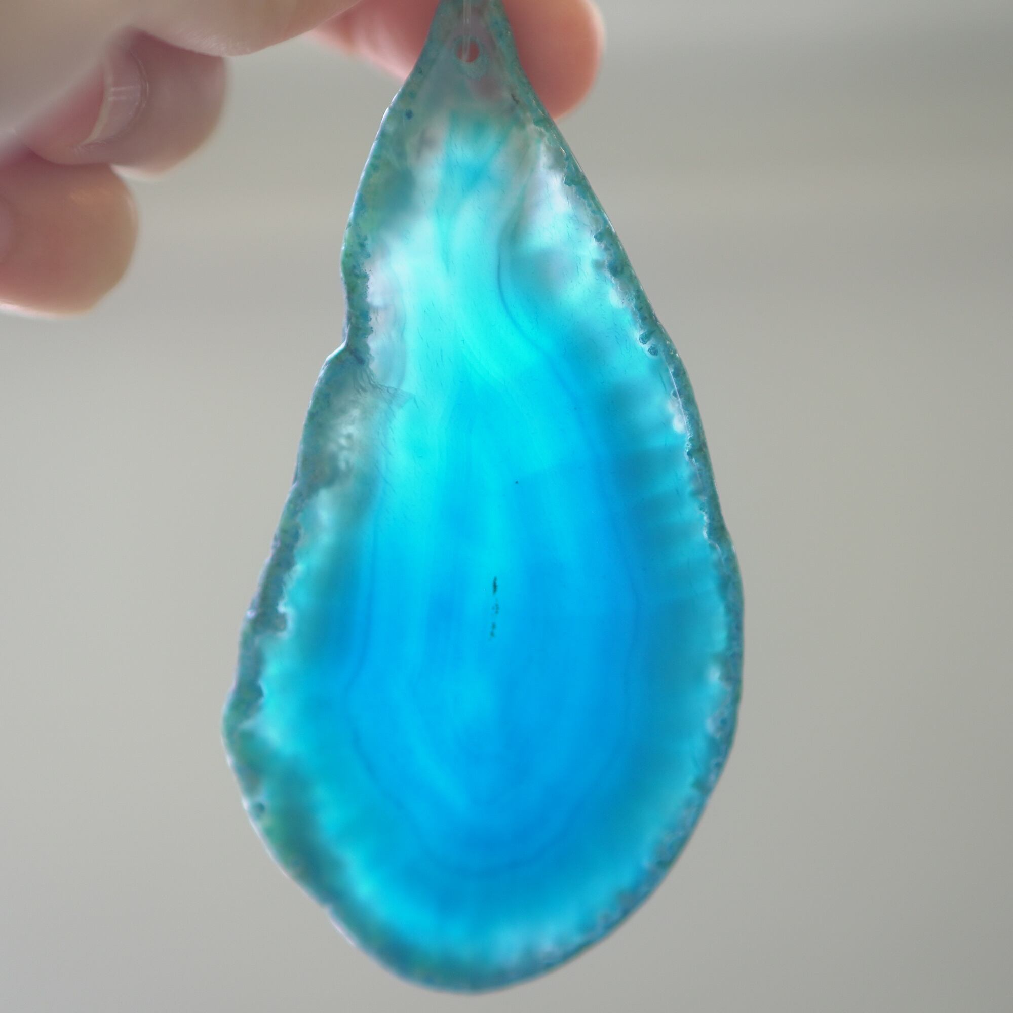 ✧✧✧染色の石なので耐光性(光による経年でのカラー変化の耐性)に優れているわけではなく一日の中で長時間強い日光に当たるような場所に飾られるのはおすすめしないのですが、陽光に透かした時にだけ真価を発揮する美しさがありますので、是非たまに翳したりして光と一緒にお楽しみいただけたらと思っております。特に濃い鮮やかな色など、気になられる場合は、日光のあまり当たらない場所に飾っていただけたらと思います✧✧✧