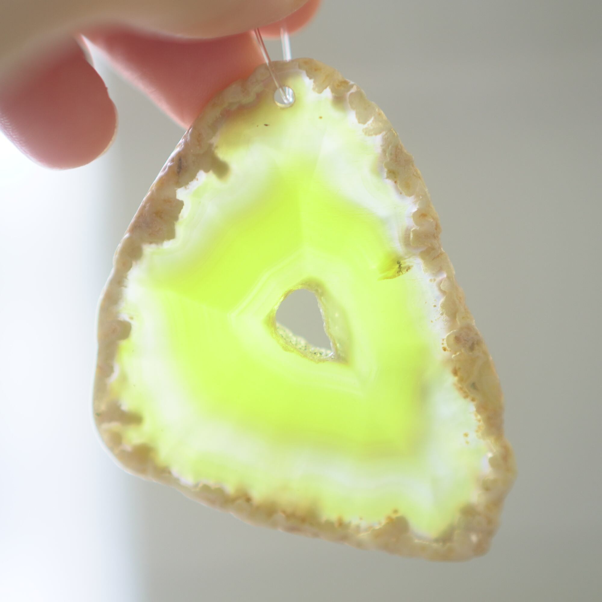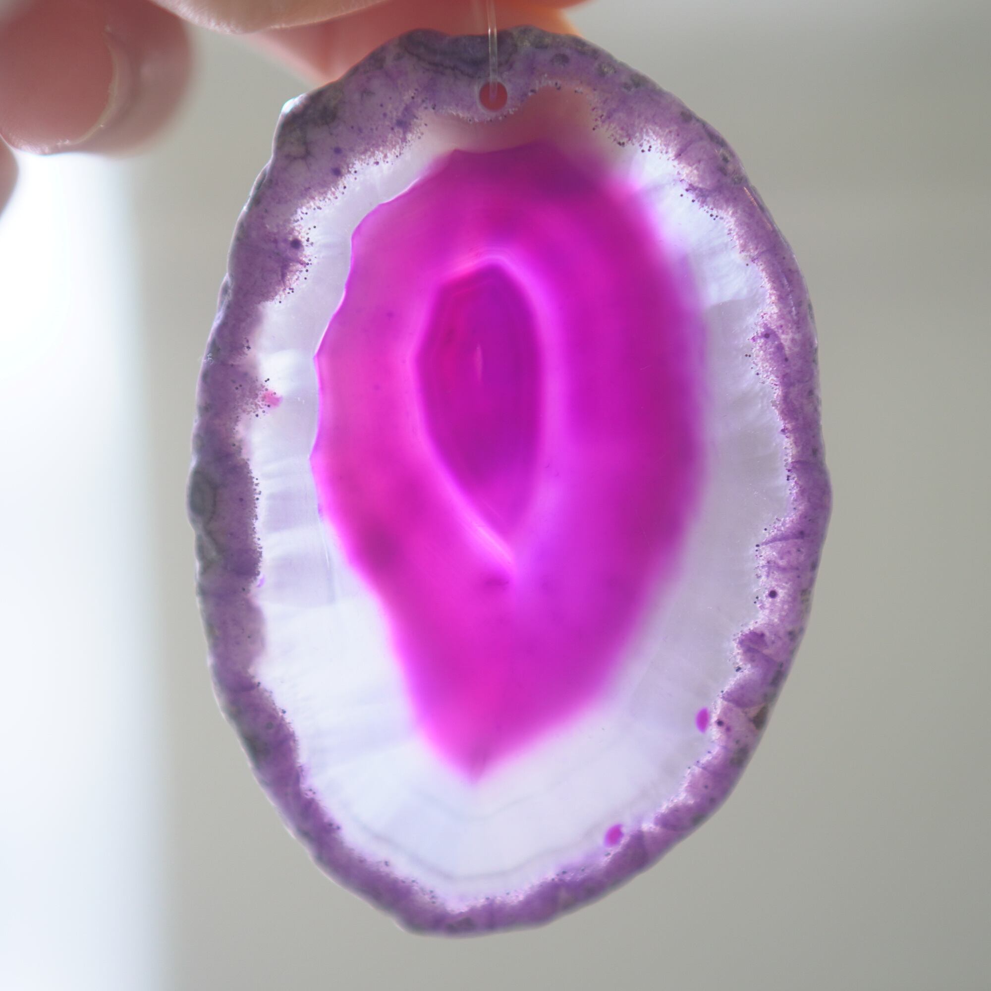 ✧✧✧染色の石なので耐光性(光による経年でのカラー変化の耐性)に優れているわけではなく一日の中で長時間強い日光に当たるような場所に飾られるのはおすすめしないのですが、陽光に透かした時にだけ真価を発揮する美しさがありますので、是非たまに翳したりして光と一緒にお楽しみいただけたらと思っております。特に濃い鮮やかな色など、気になられる場合は、日光のあまり当たらない場所に飾っていただけたらと思います✧✧✧