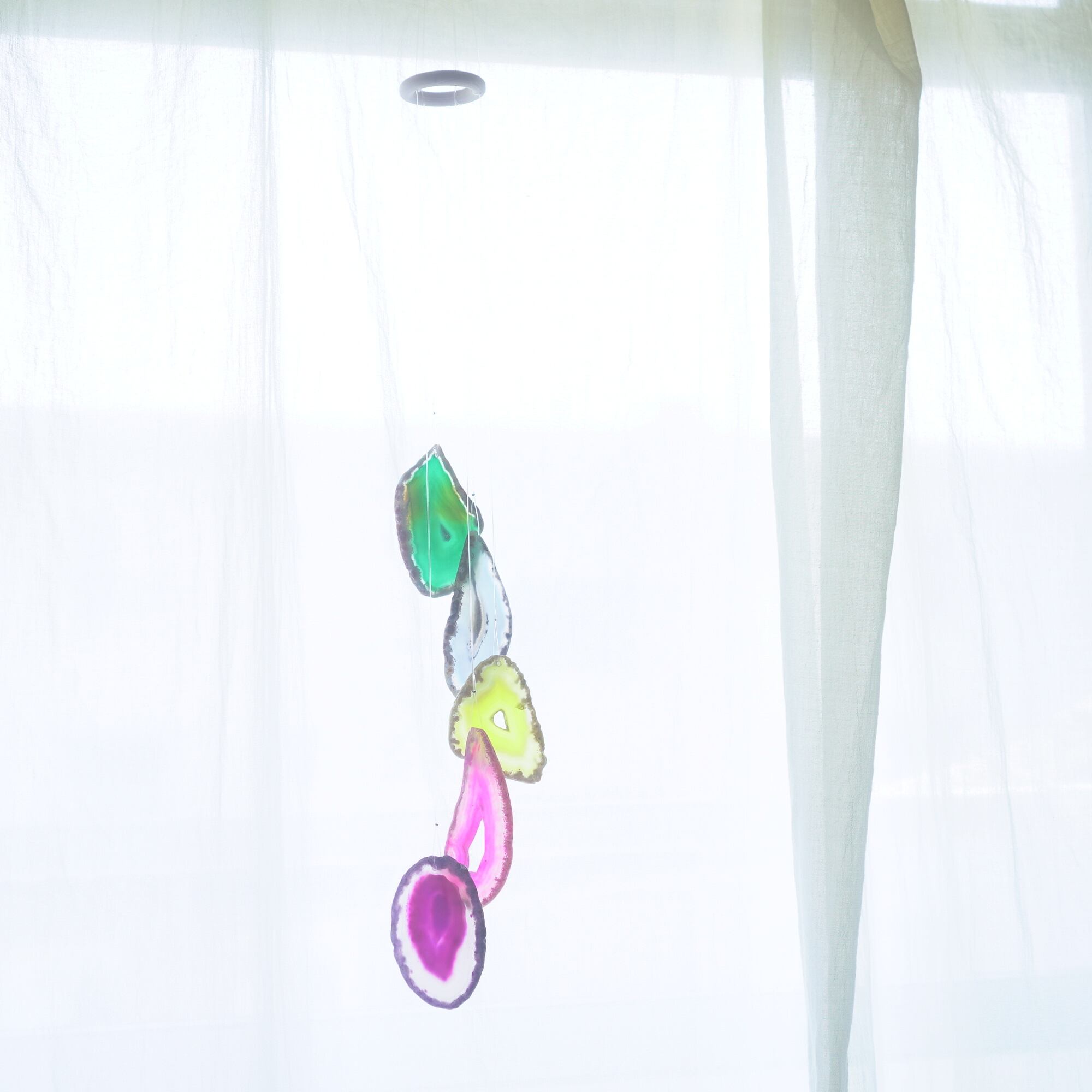 連なるアゲートが風を受けて揺れるとチリンチリン、美しい響きの音が鳴りとても癒されます。
