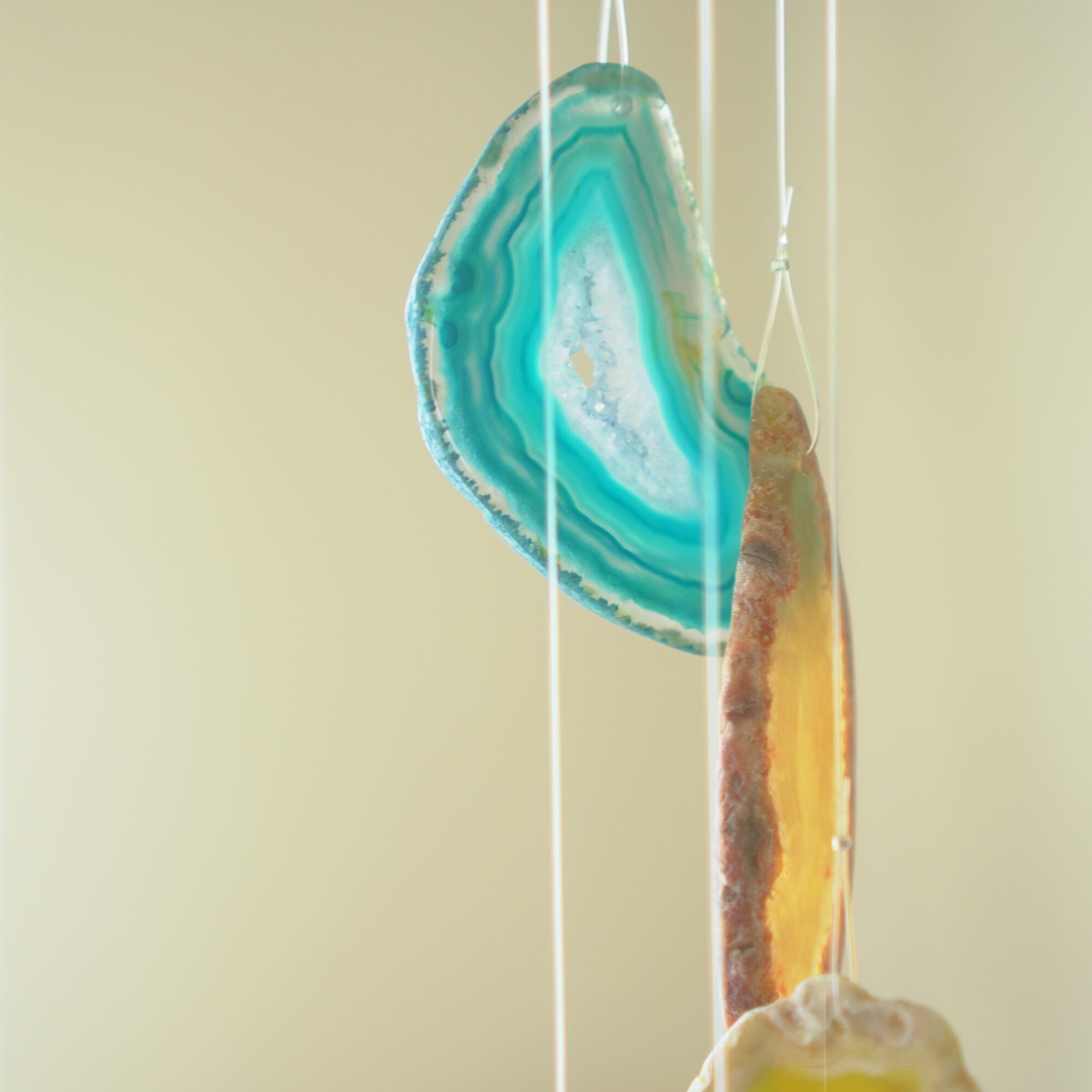 連なるアゲートが風を受けて揺れるとチリンチリン、美しい響きの音が鳴りとても癒されます。