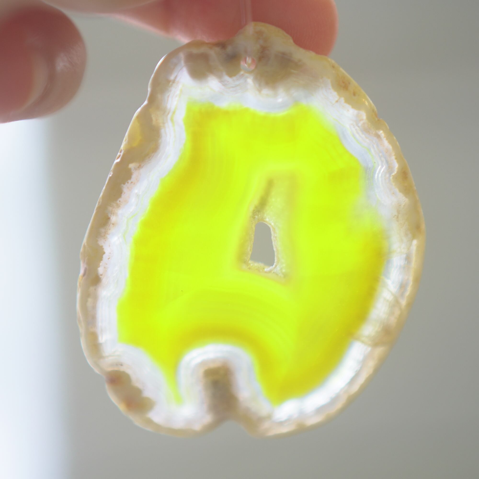 ✧✧✧染色の石なので耐光性(光による経年でのカラー変化の耐性)に優れているわけではなく一日の中で長時間強い日光に当たるような場所に飾られるのはおすすめしないのですが、陽光に透かした時にだけ真価を発揮する美しさがありますので、是非たまに翳したりして光と一緒にお楽しみいただけたらと思っております。特に濃い鮮やかな色など、気になられる場合は、日光のあまり当たらない場所に飾っていただけたらと思います✧✧✧