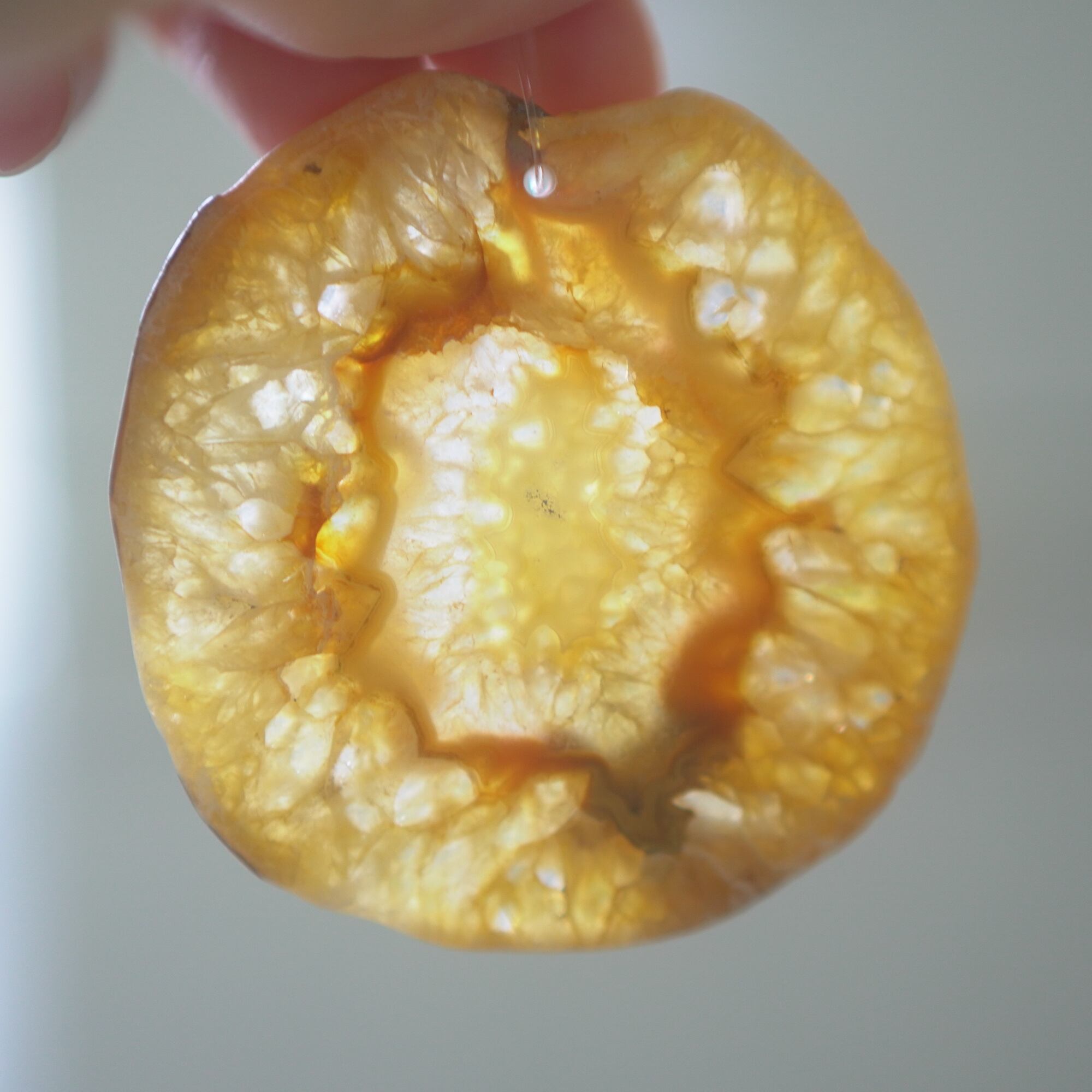 ✧✧✧染色の石なので耐光性(光による経年でのカラー変化の耐性)に優れているわけではなく一日の中で長時間強い日光に当たるような場所に飾られるのはおすすめしないのですが、陽光に透かした時にだけ真価を発揮する美しさがありますので、是非たまに翳したりして光と一緒にお楽しみいただけたらと思っております。特に濃い鮮やかな色など、気になられる場合は、日光のあまり当たらない場所に飾っていただけたらと思います✧✧✧