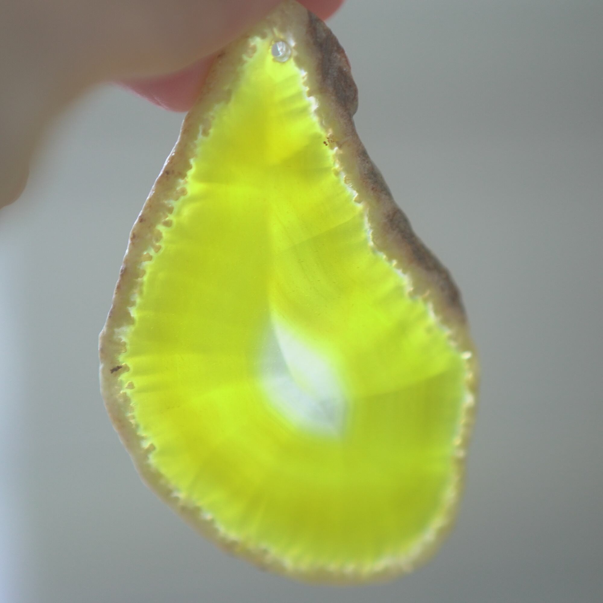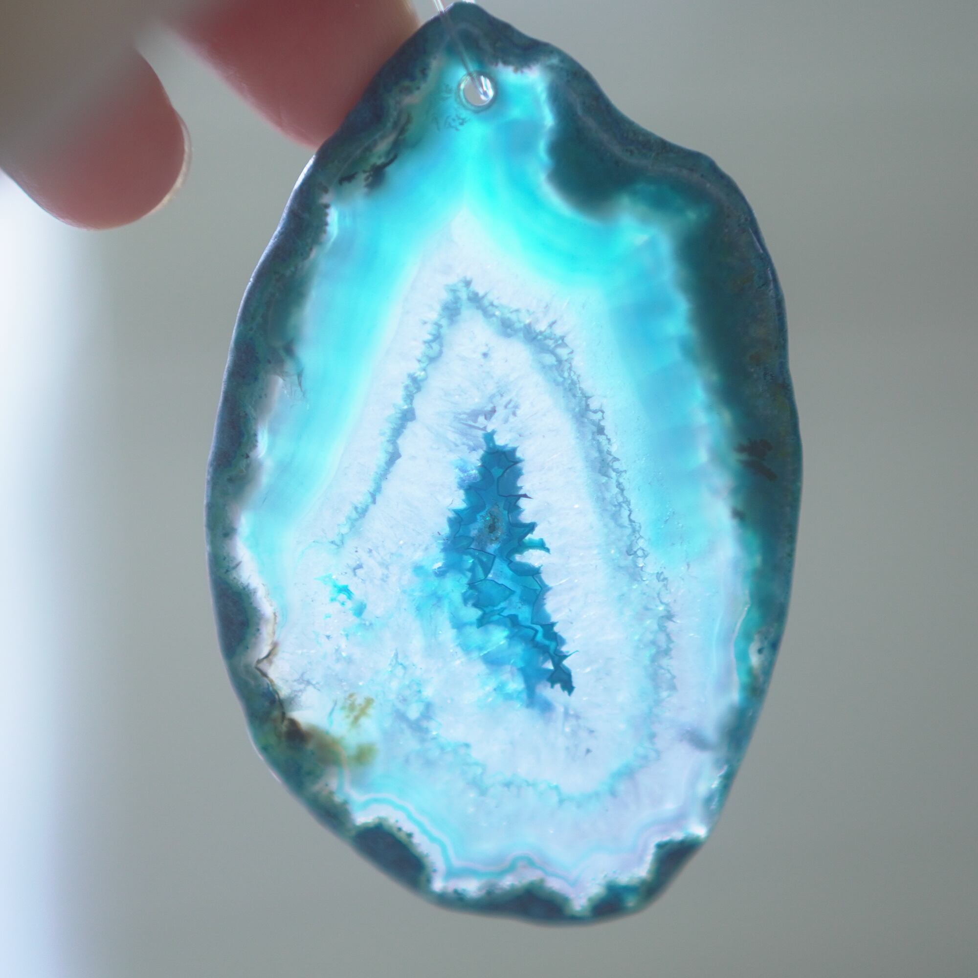 ✧✧✧染色の石なので耐光性(光による経年でのカラー変化の耐性)に優れているわけではなく一日の中で長時間強い日光に当たるような場所に飾られるのはおすすめしないのですが、陽光に透かした時にだけ真価を発揮する美しさがありますので、是非たまに翳したりして光と一緒にお楽しみいただけたらと思っております。特に濃い鮮やかな色など、気になられる場合は、日光のあまり当たらない場所に飾っていただけたらと思います✧✧✧