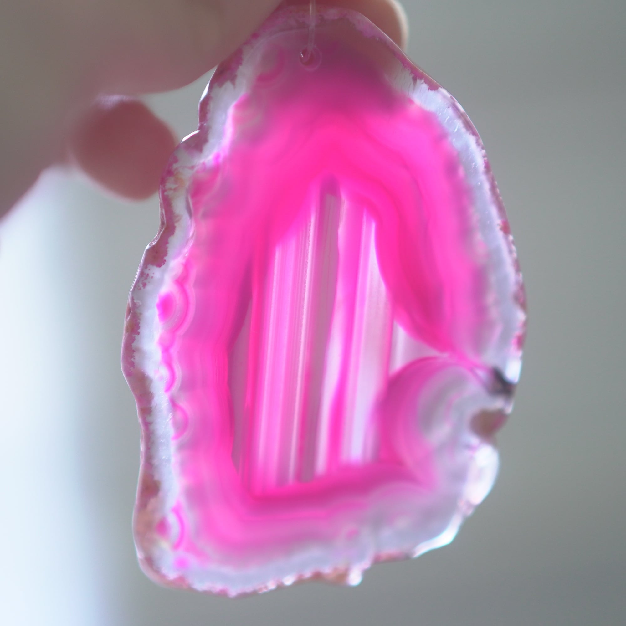 ✧✧✧染色の石なので耐光性(光による経年でのカラー変化の耐性)に優れているわけではなく一日の中で長時間強い日光に当たるような場所に飾られるのはおすすめしないのですが、陽光に透かした時にだけ真価を発揮する美しさがありますので、是非たまに翳したりして光と一緒にお楽しみいただけたらと思っております。特に濃い鮮やかな色など、気になられる場合は、日光のあまり当たらない場所に飾っていただけたらと思います✧✧✧