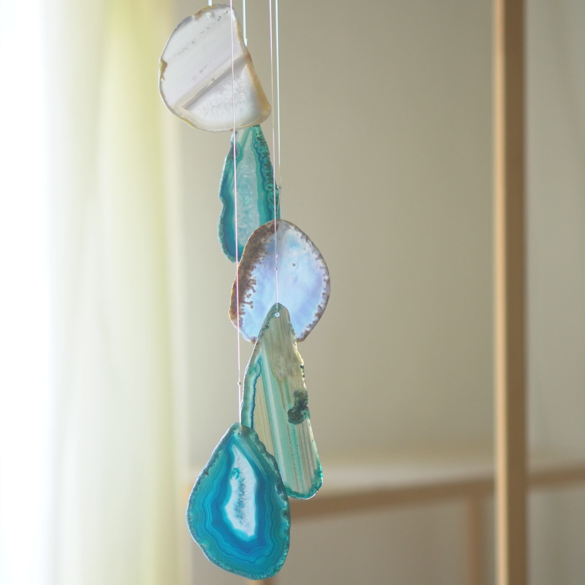 連なるアゲートが風を受けて揺れるとチリンチリン、美しい響きの音が鳴りとても癒されます。