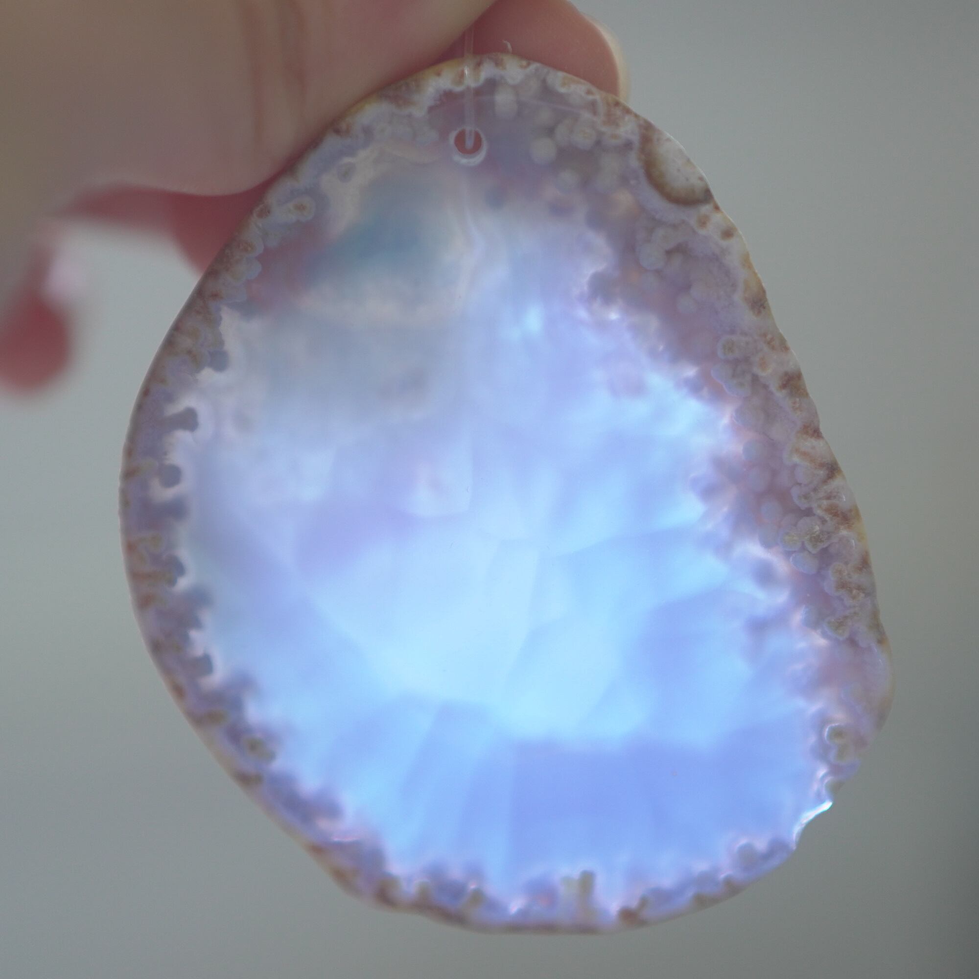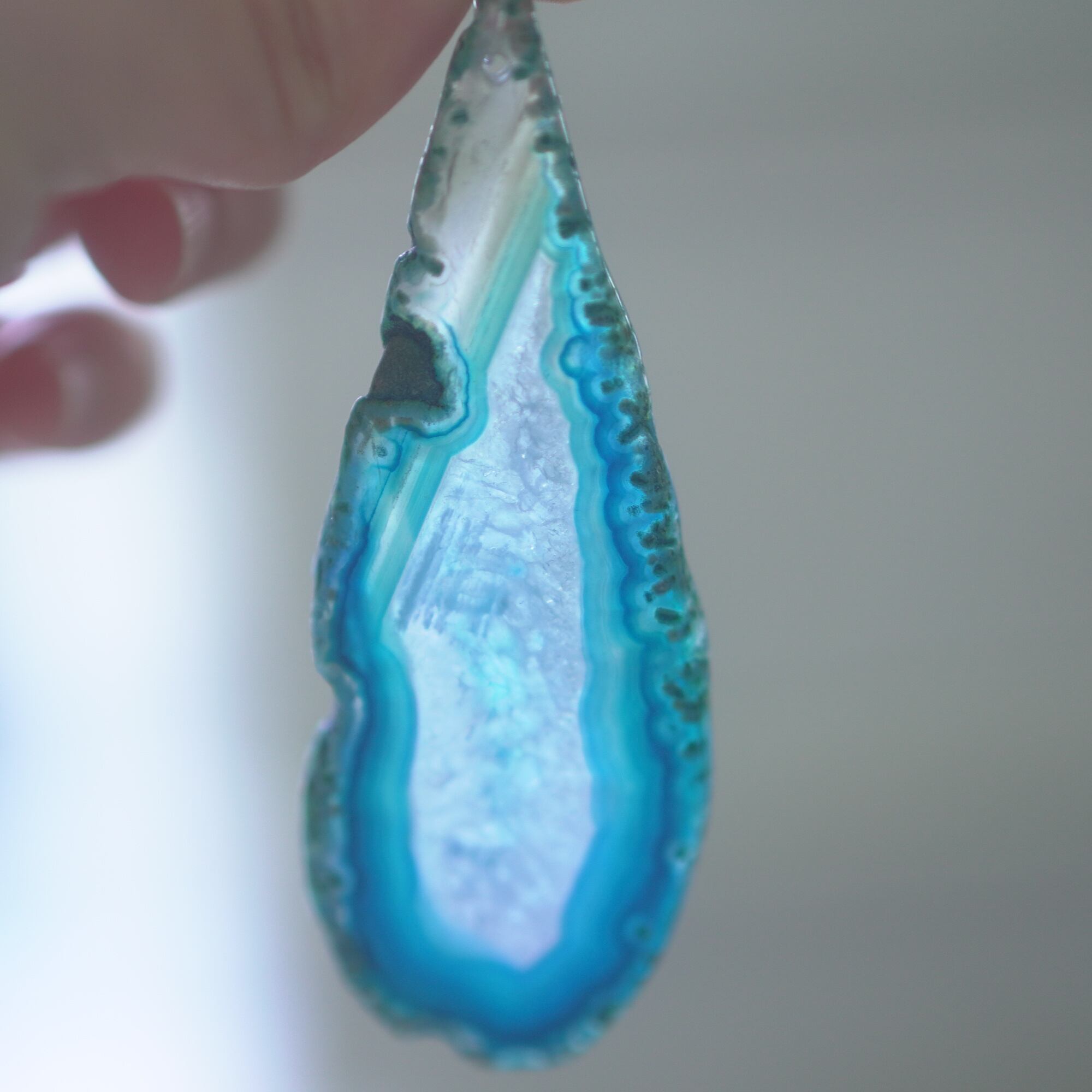 ✧✧✧染色の石なので耐光性(光による経年でのカラー変化の耐性)に優れているわけではなく一日の中で長時間強い日光に当たるような場所に飾られるのはおすすめしないのですが、陽光に透かした時にだけ真価を発揮する美しさがありますので、是非たまに翳したりして光と一緒にお楽しみいただけたらと思っております。特に濃い鮮やかな色など、気になられる場合は、日光のあまり当たらない場所に飾っていただけたらと思います✧✧✧