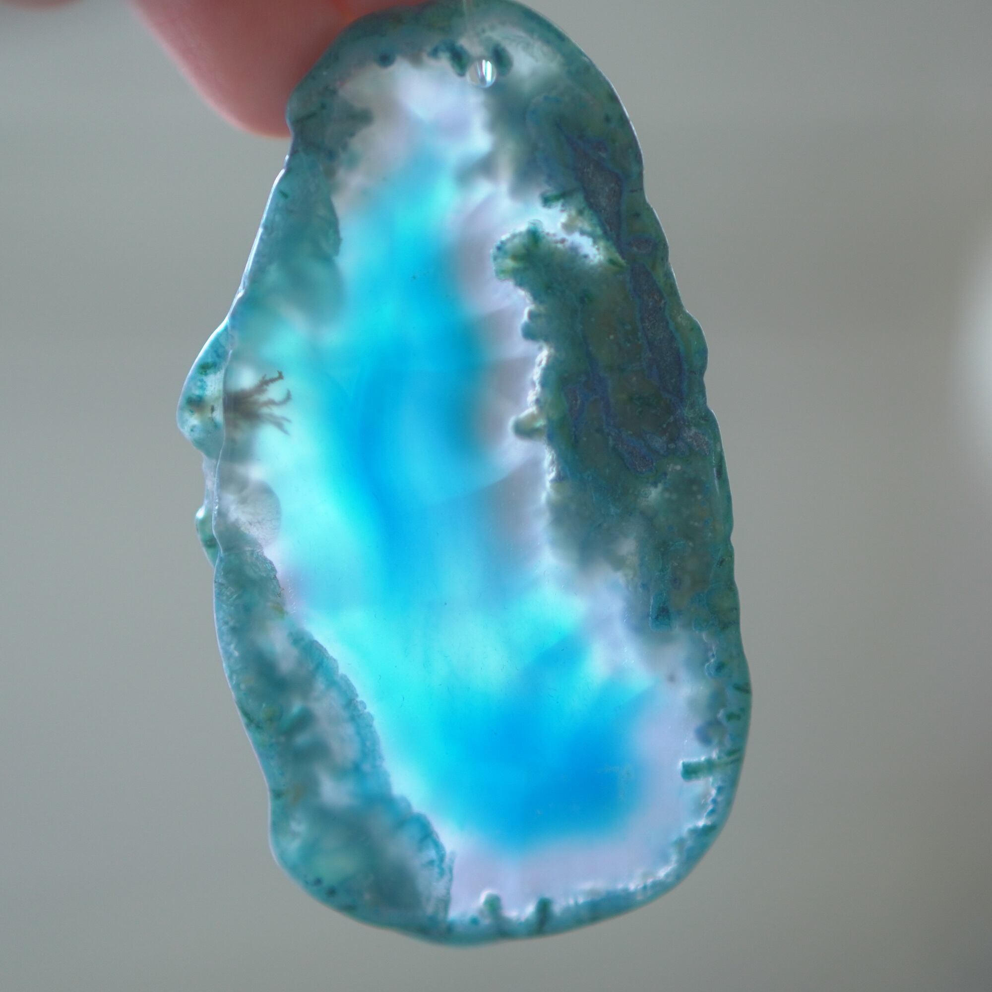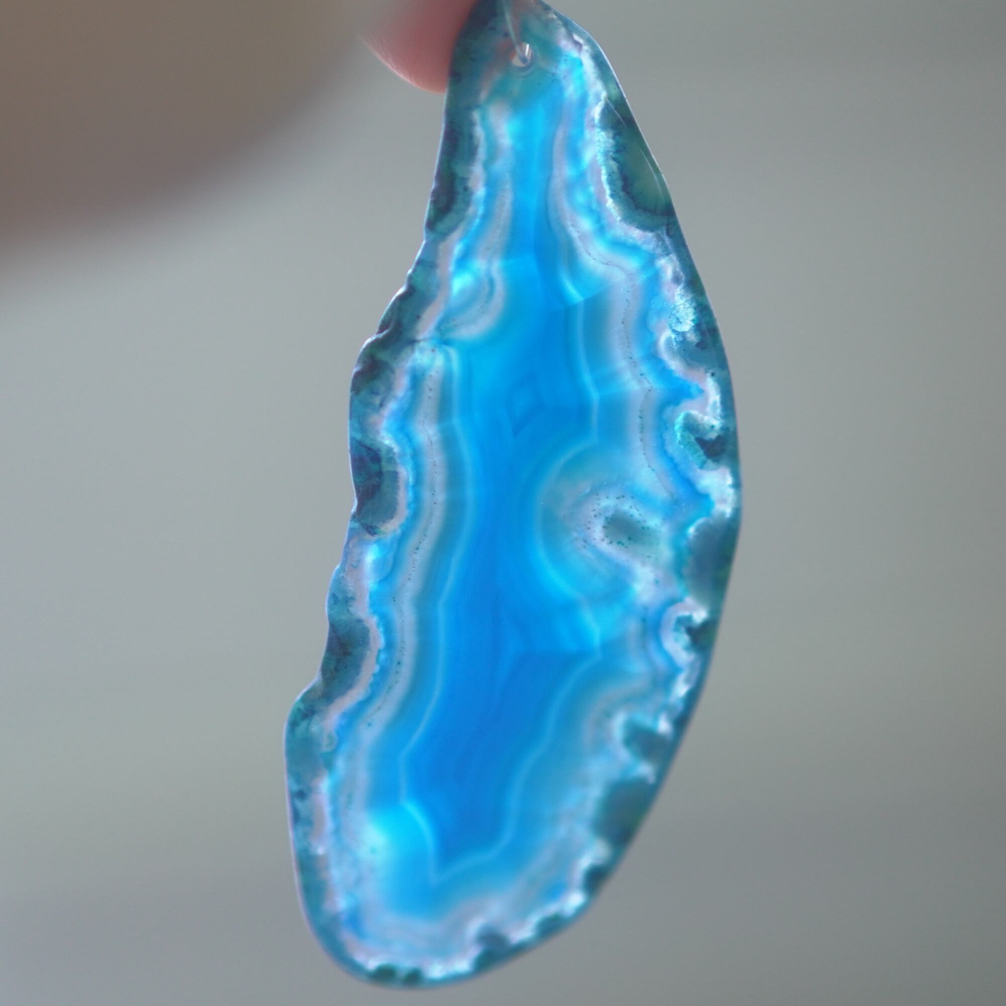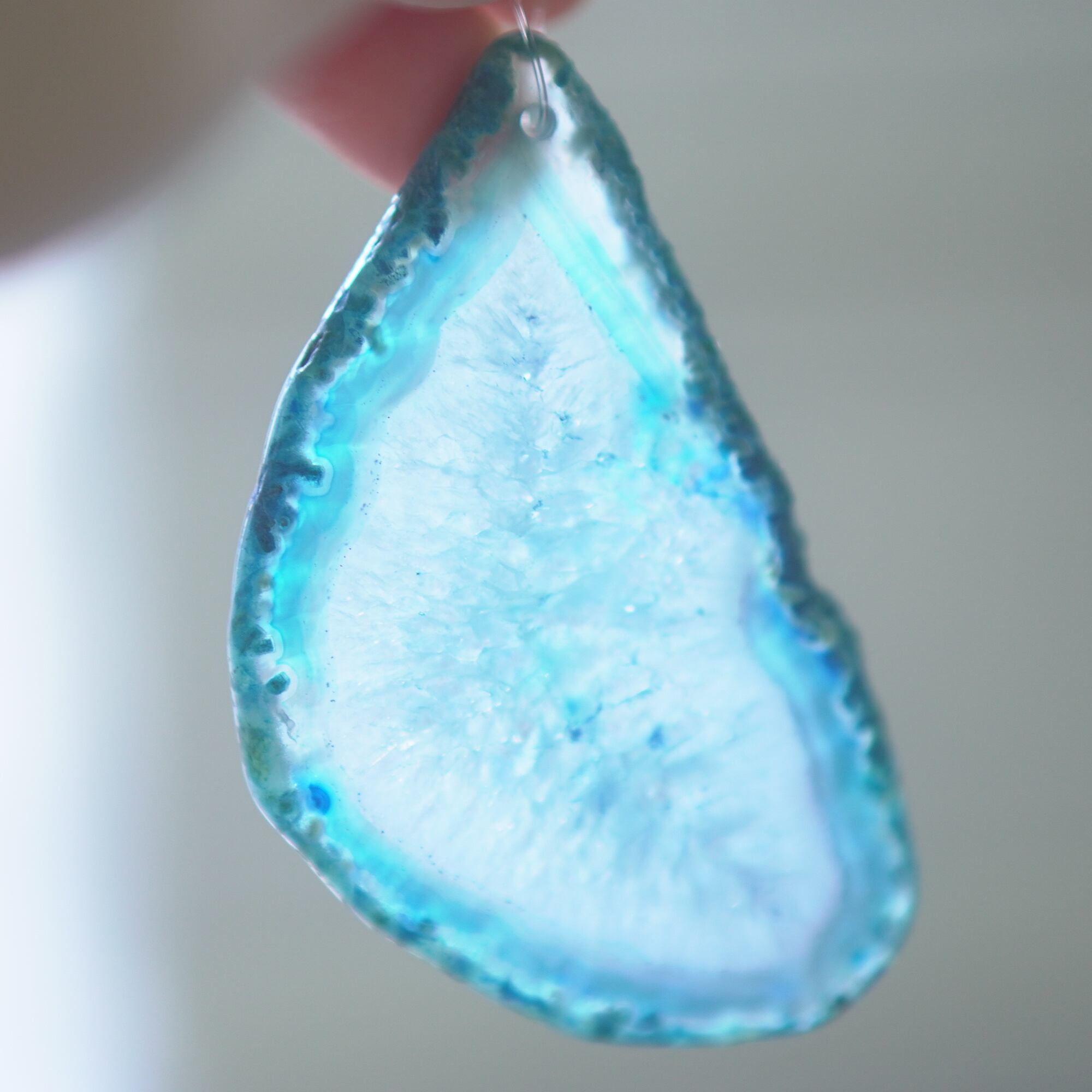 ✧✧✧染色の石なので耐光性(光による経年でのカラー変化の耐性)に優れているわけではなく一日の中で長時間強い日光に当たるような場所に飾られるのはおすすめしないのですが、陽光に透かした時にだけ真価を発揮する美しさがありますので、是非たまに翳したりして光と一緒にお楽しみいただけたらと思っております。特に濃い鮮やかな色など、気になられる場合は、日光のあまり当たらない場所に飾っていただけたらと思います✧✧✧
