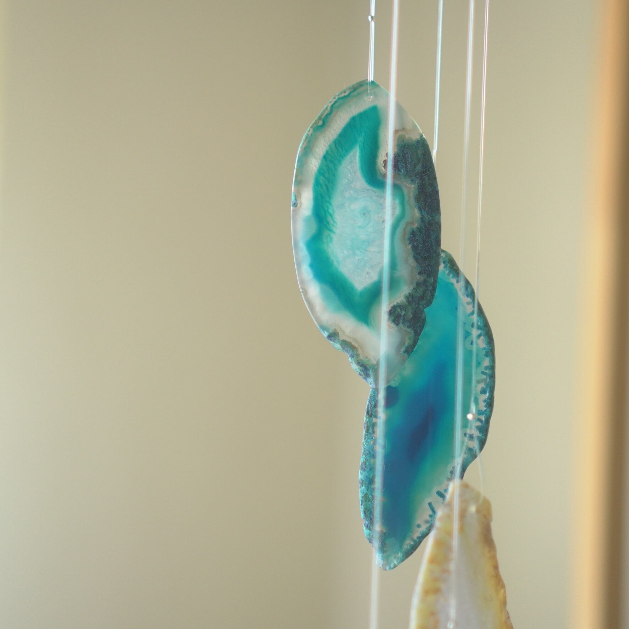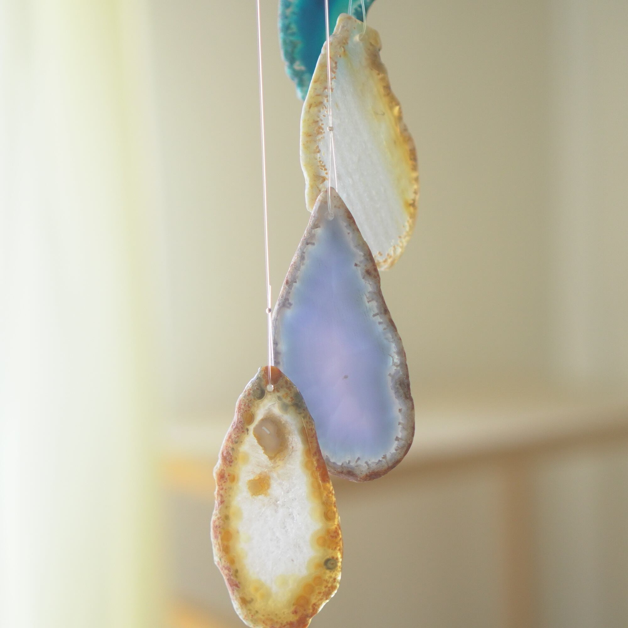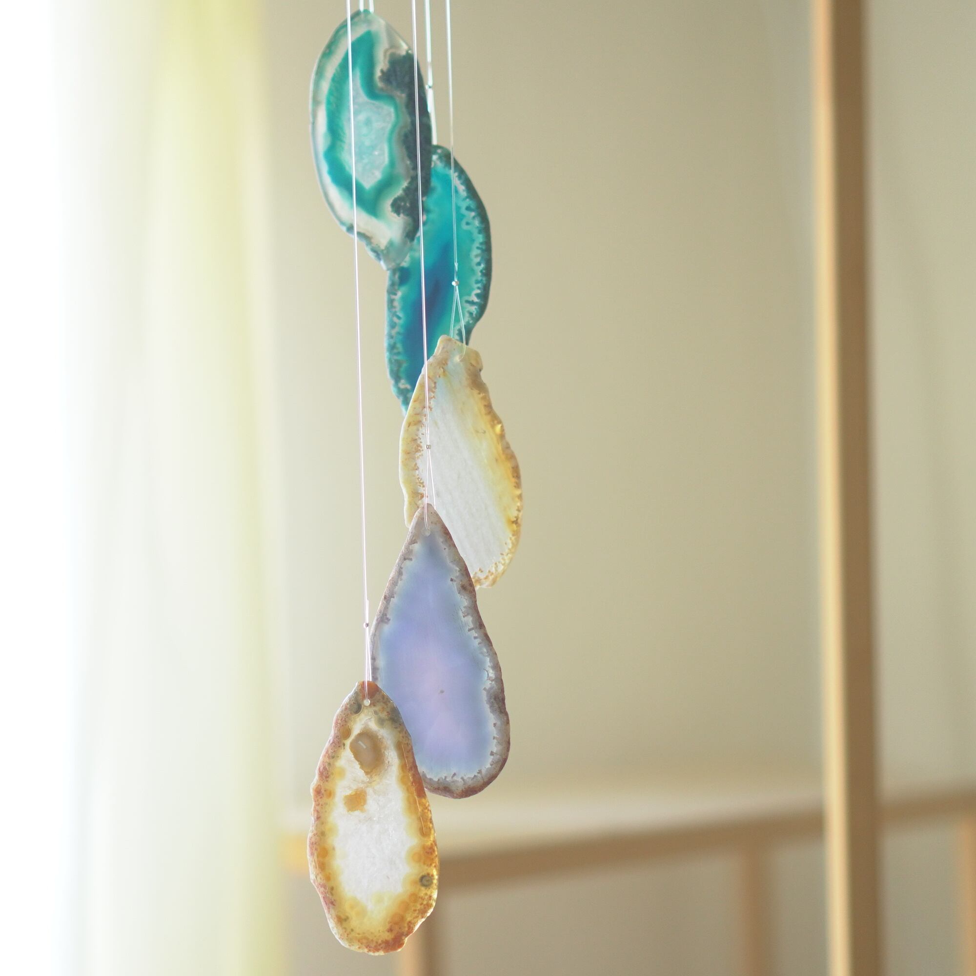 連なるアゲートが風を受けて揺れるとチリンチリン、美しい響きの音が鳴りとても癒されます。