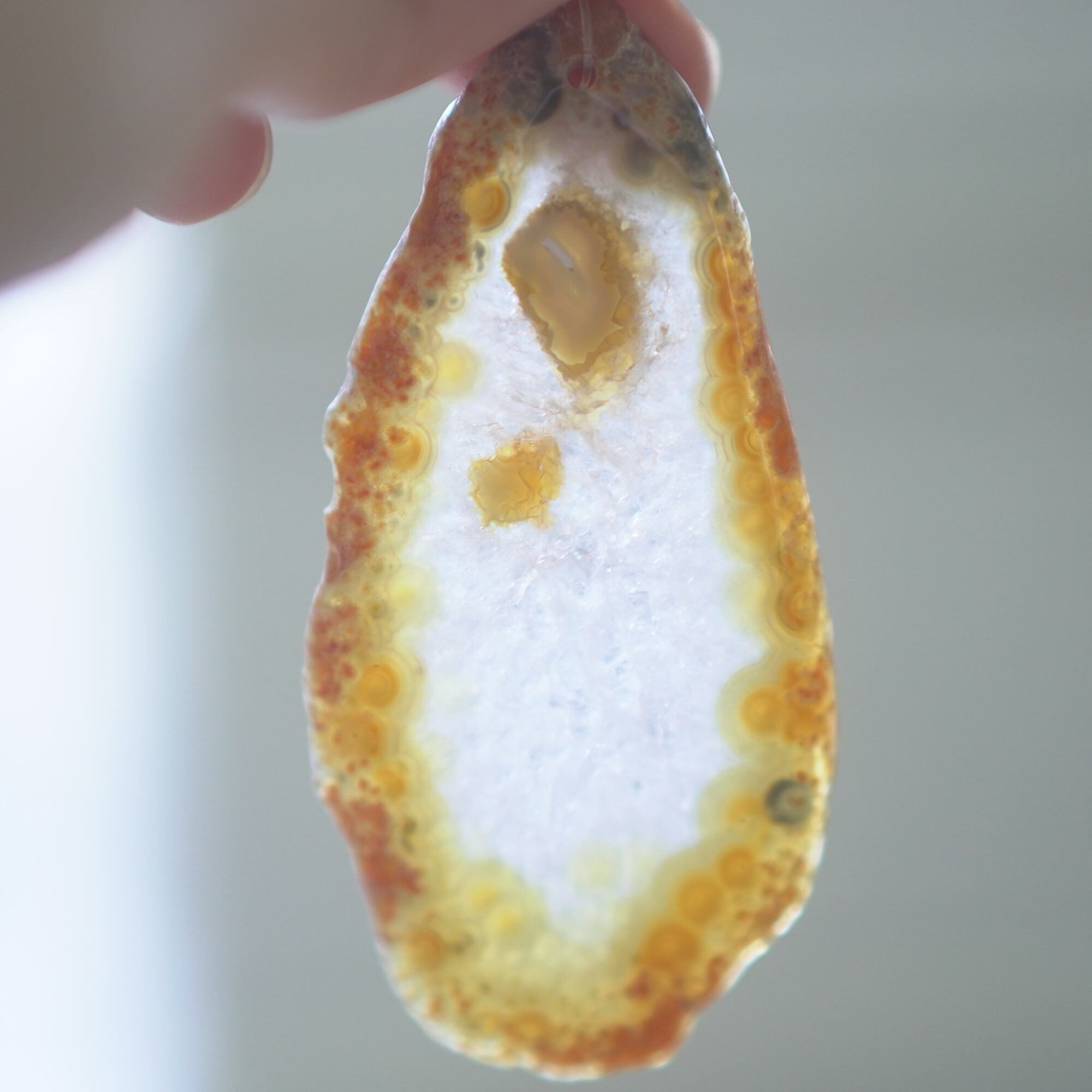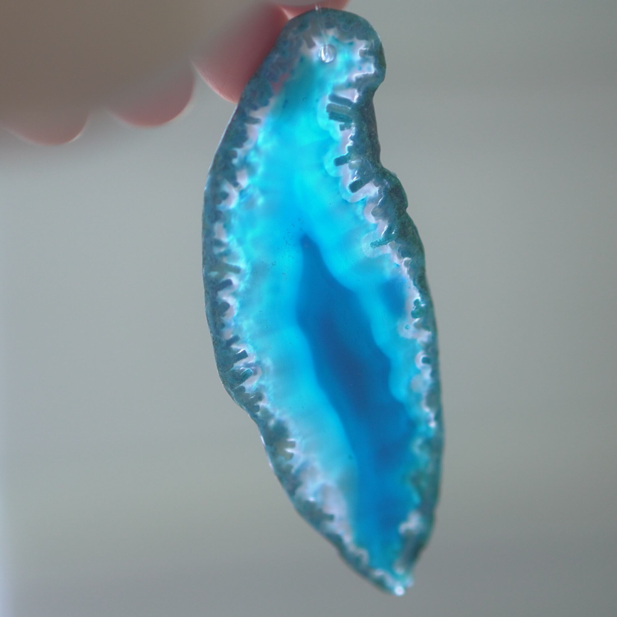 ✧✧✧染色の石なので耐光性(光による経年でのカラー変化の耐性)に優れているわけではなく一日の中で長時間強い日光に当たるような場所に飾られるのはおすすめしないのですが、陽光に透かした時にだけ真価を発揮する美しさがありますので、是非たまに翳したりして光と一緒にお楽しみいただけたらと思っております。特に濃い鮮やかな色など、気になられる場合は、日光のあまり当たらない場所に飾っていただけたらと思います✧✧✧