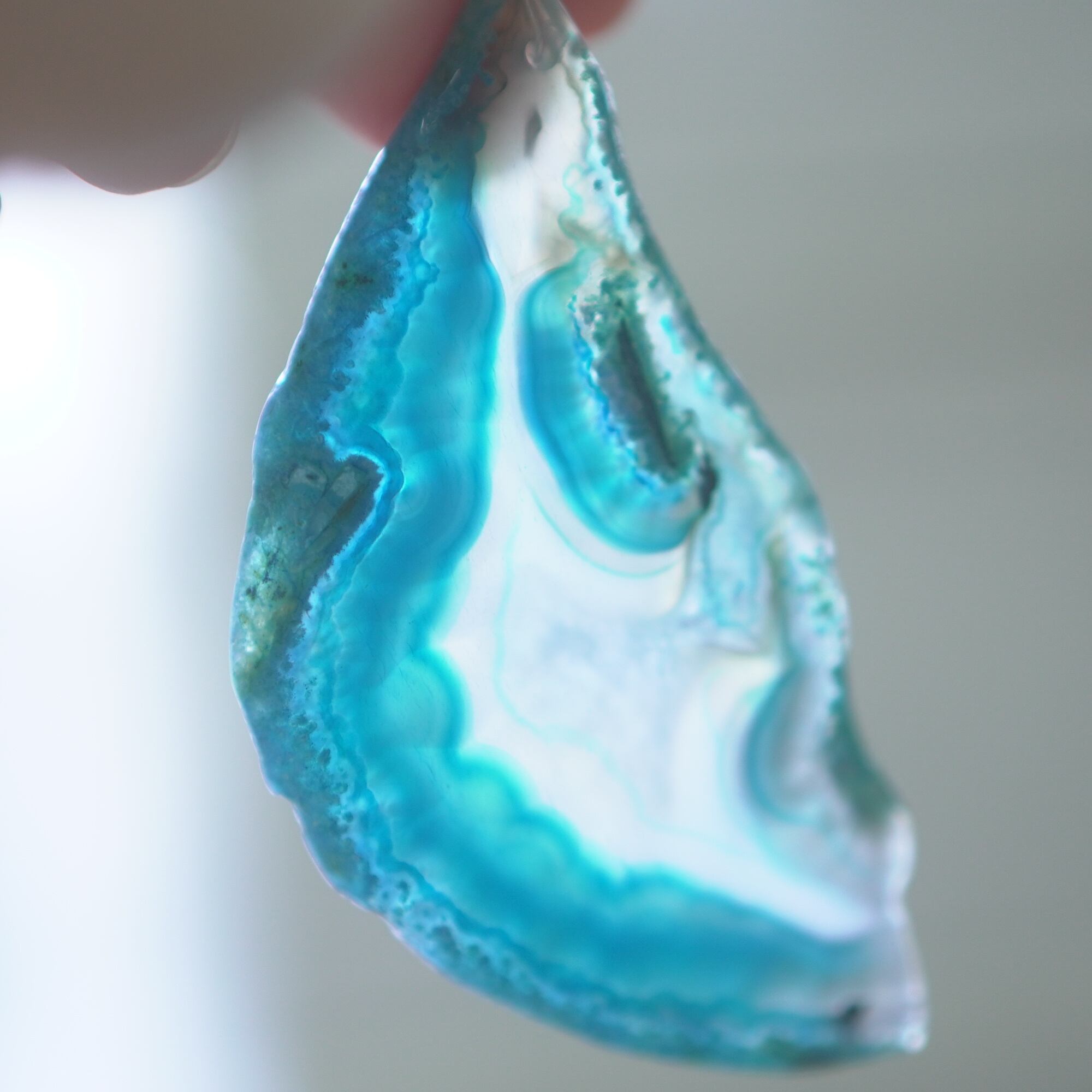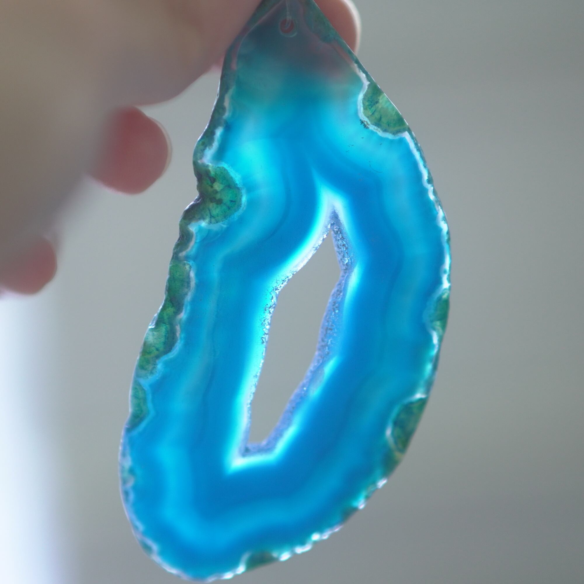 ✧✧✧染色の石なので耐光性(光による経年でのカラー変化の耐性)に優れているわけではなく一日の中で長時間強い日光に当たるような場所に飾られるのはおすすめしないのですが、陽光に透かした時にだけ真価を発揮する美しさがありますので、是非たまに翳したりして光と一緒にお楽しみいただけたらと思っております。特に濃い鮮やかな色など、気になられる場合は、日光のあまり当たらない場所に飾っていただけたらと思います✧✧✧