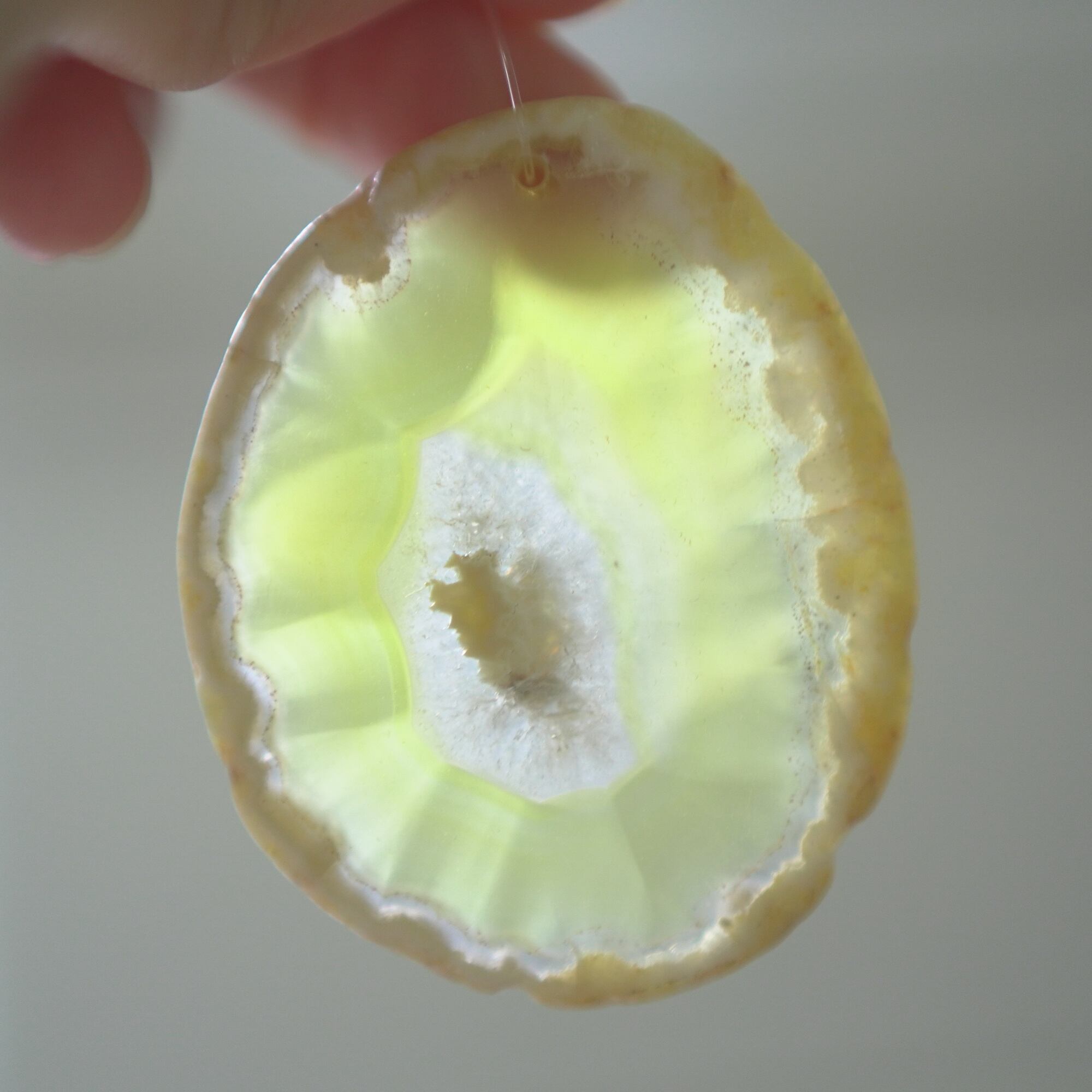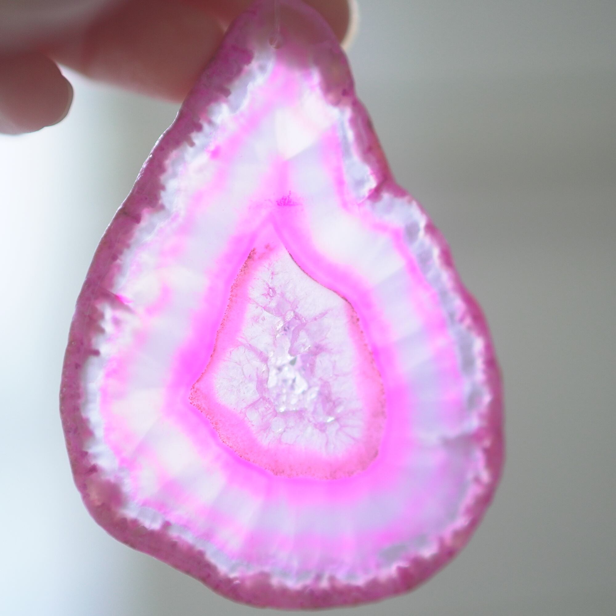 ✧✧✧染色の石なので耐光性(光による経年でのカラー変化の耐性)に優れているわけではなく一日の中で長時間強い日光に当たるような場所に飾られるのはおすすめしないのですが、陽光に透かした時にだけ真価を発揮する美しさがありますので、是非たまに翳したりして光と一緒にお楽しみいただけたらと思っております。特に濃い鮮やかな色など、気になられる場合は、日光のあまり当たらない場所に飾っていただけたらと思います✧✧✧
