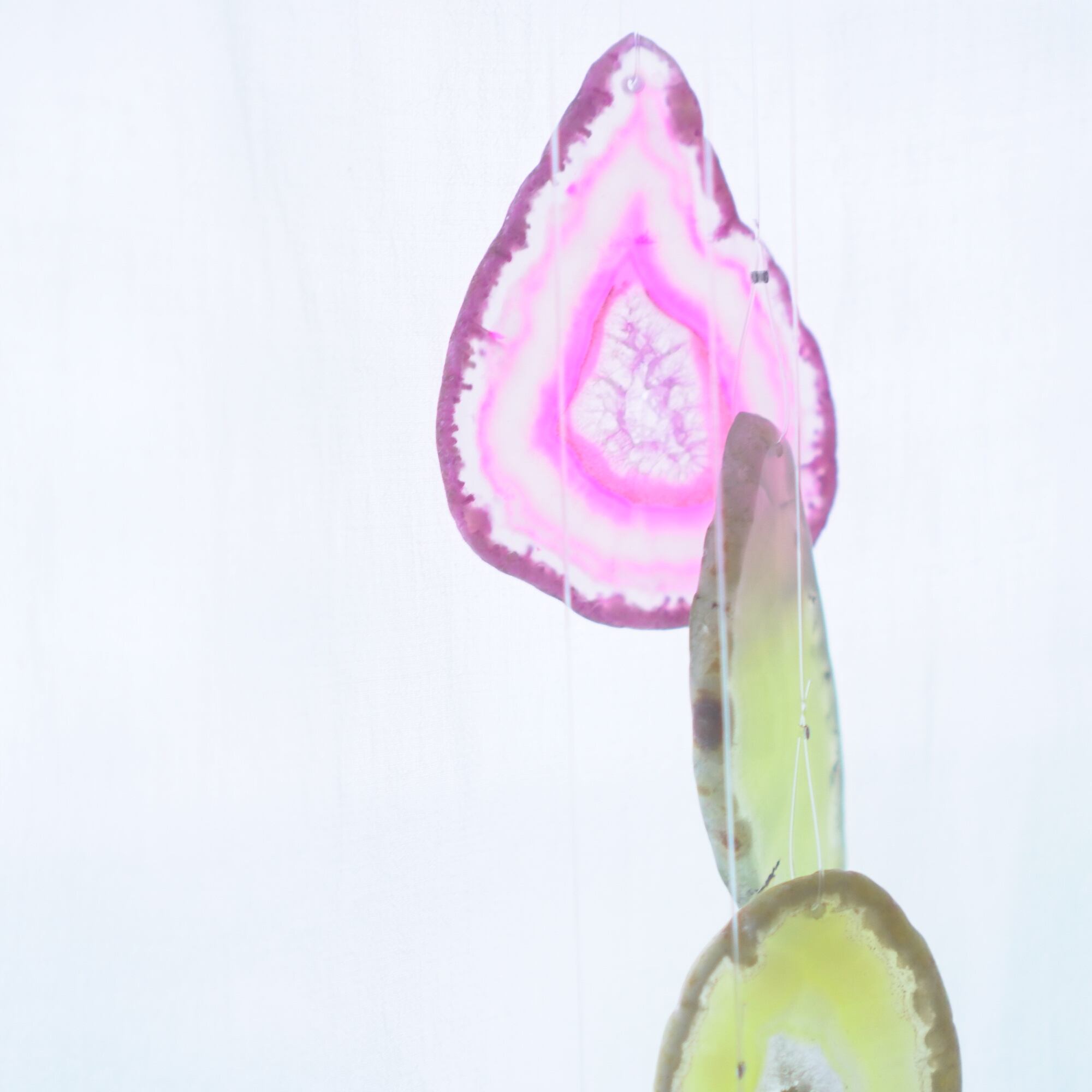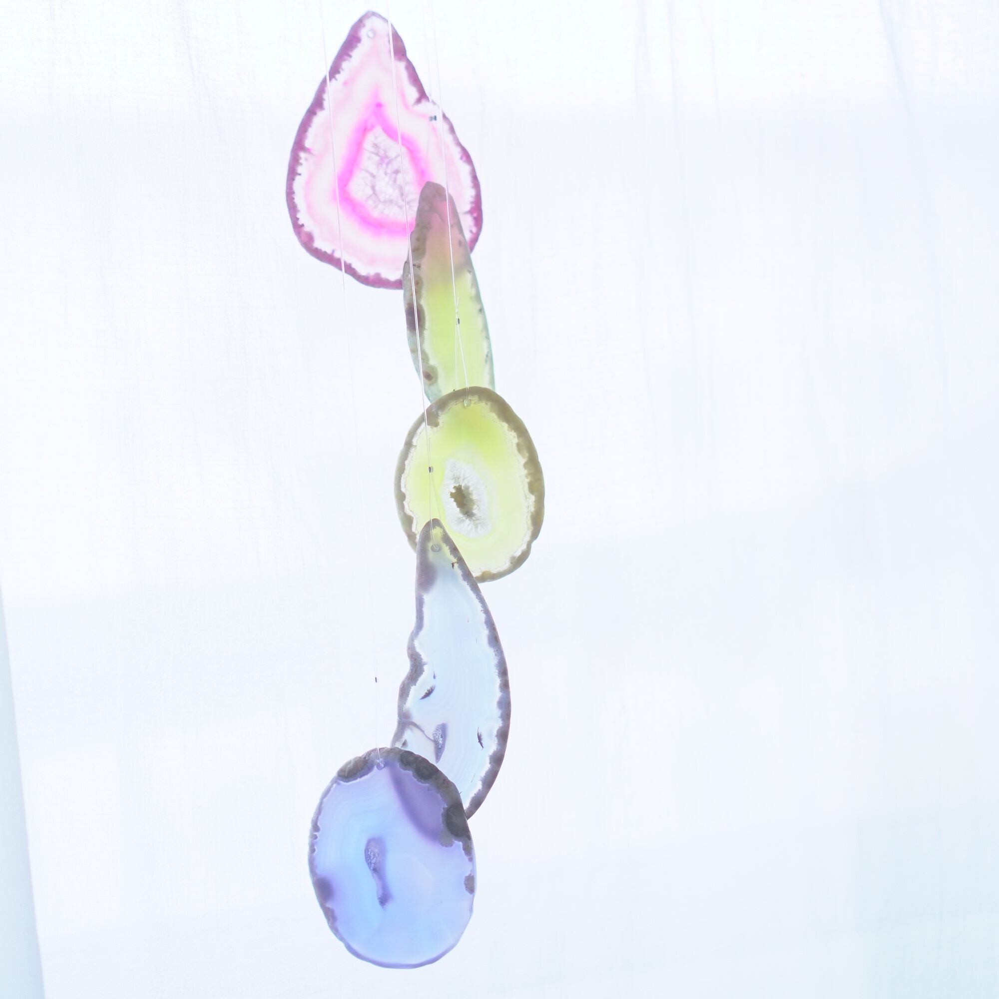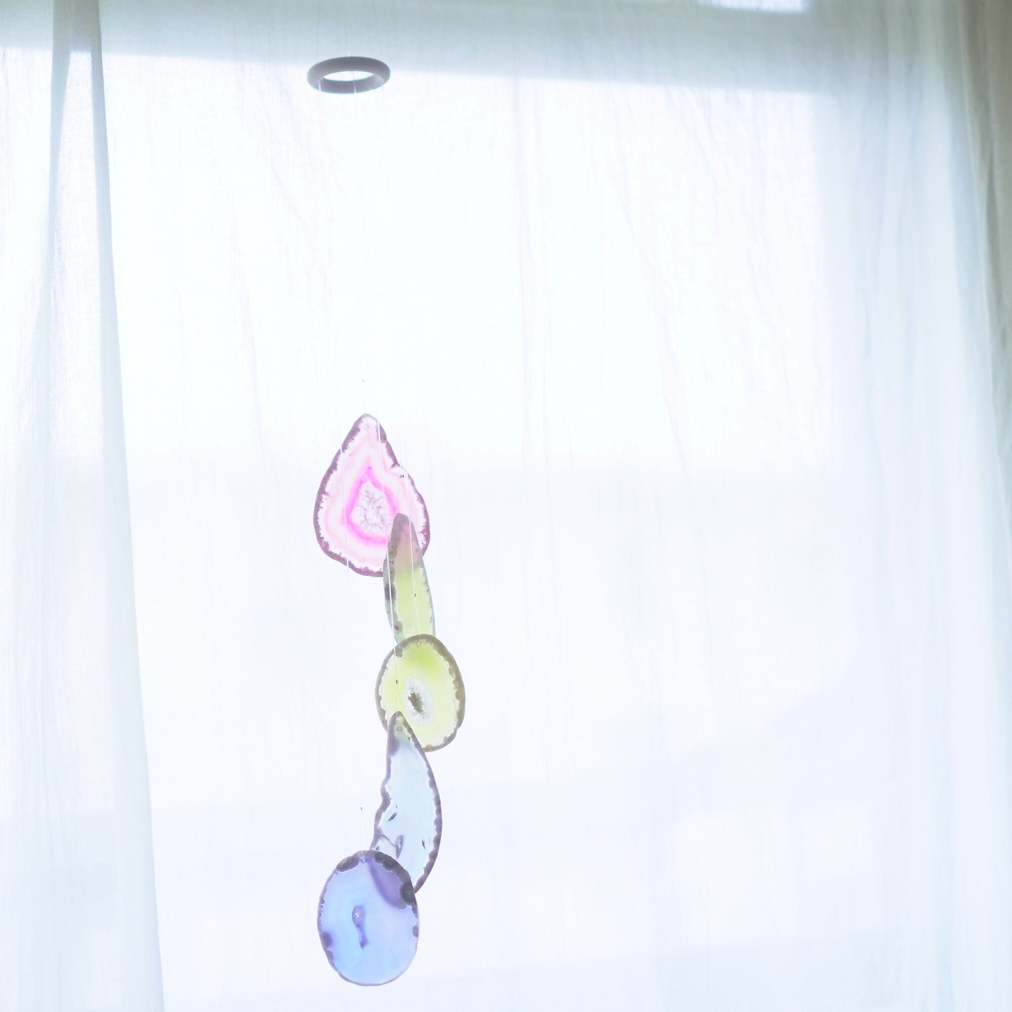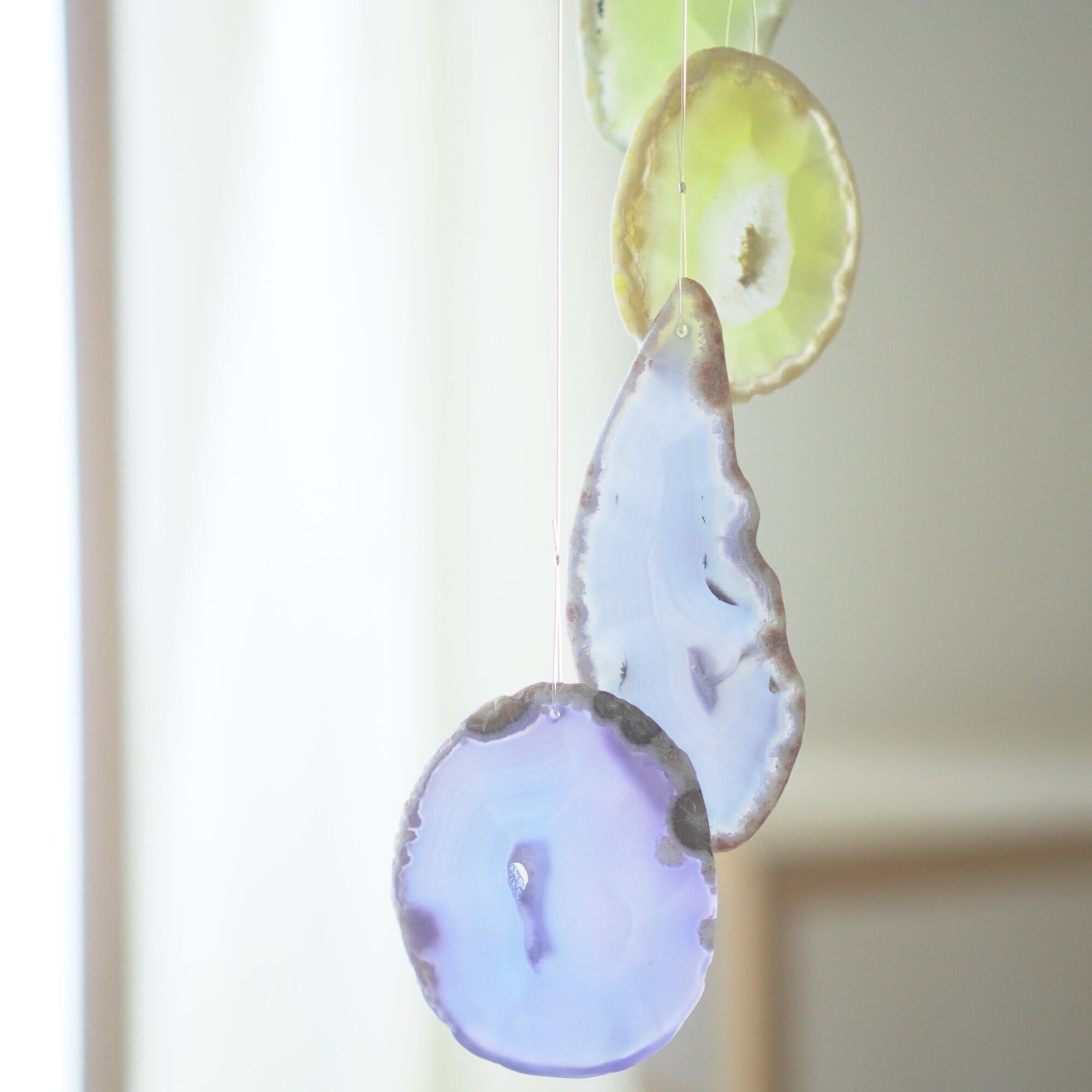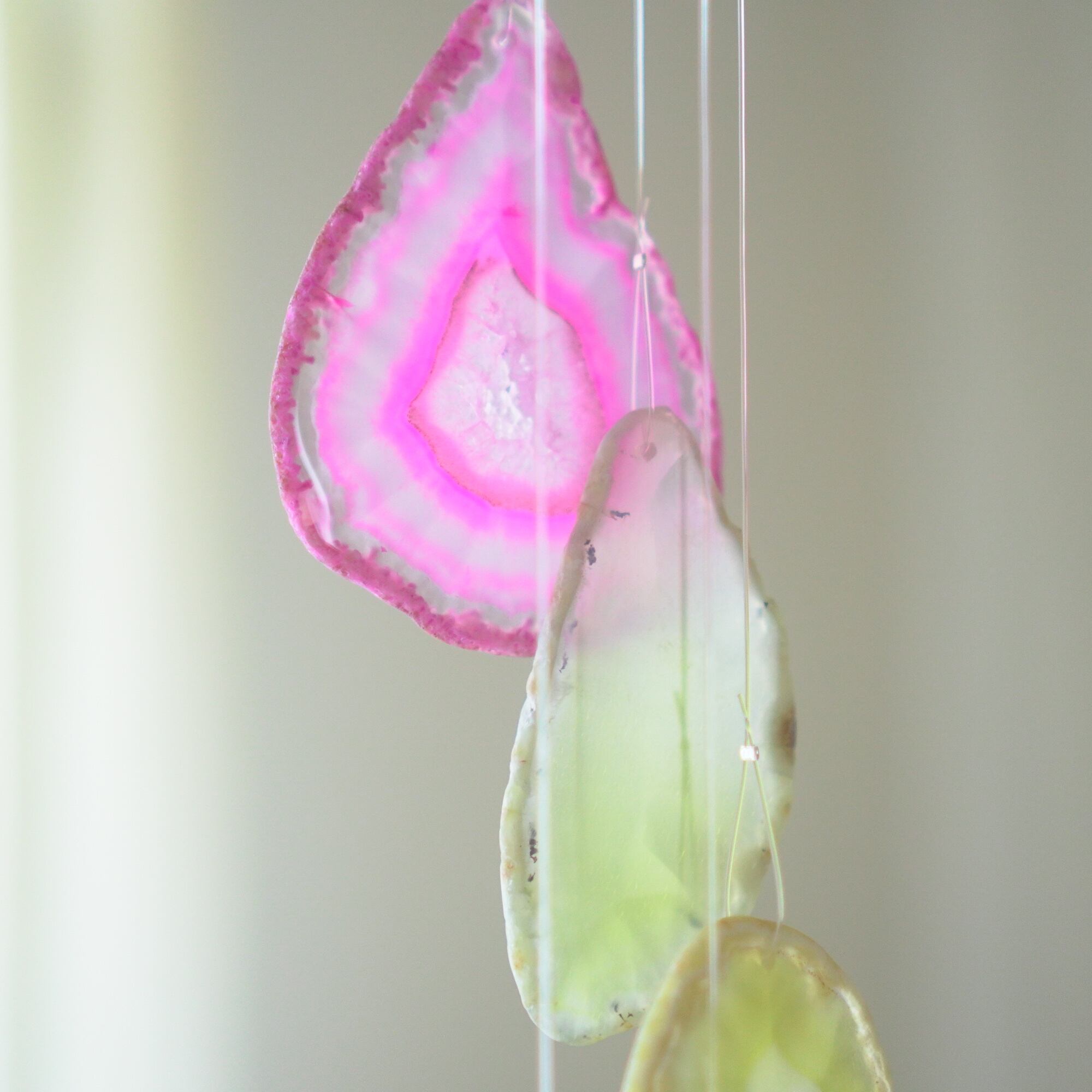 連なるアゲートが風を受けて揺れるとチリンチリン、美しい響きの音が鳴りとても癒されます。