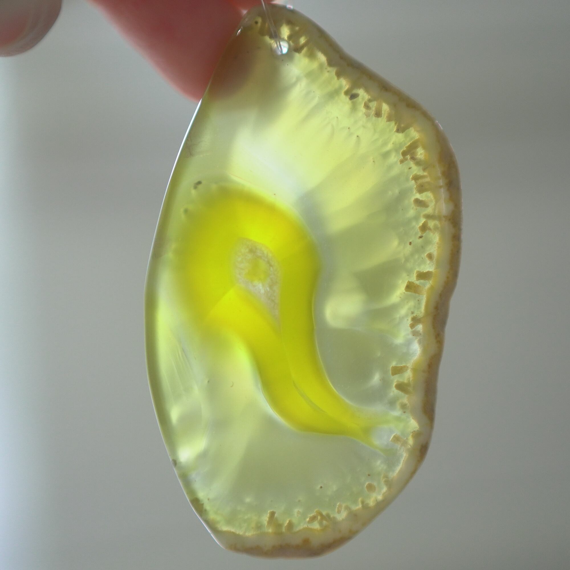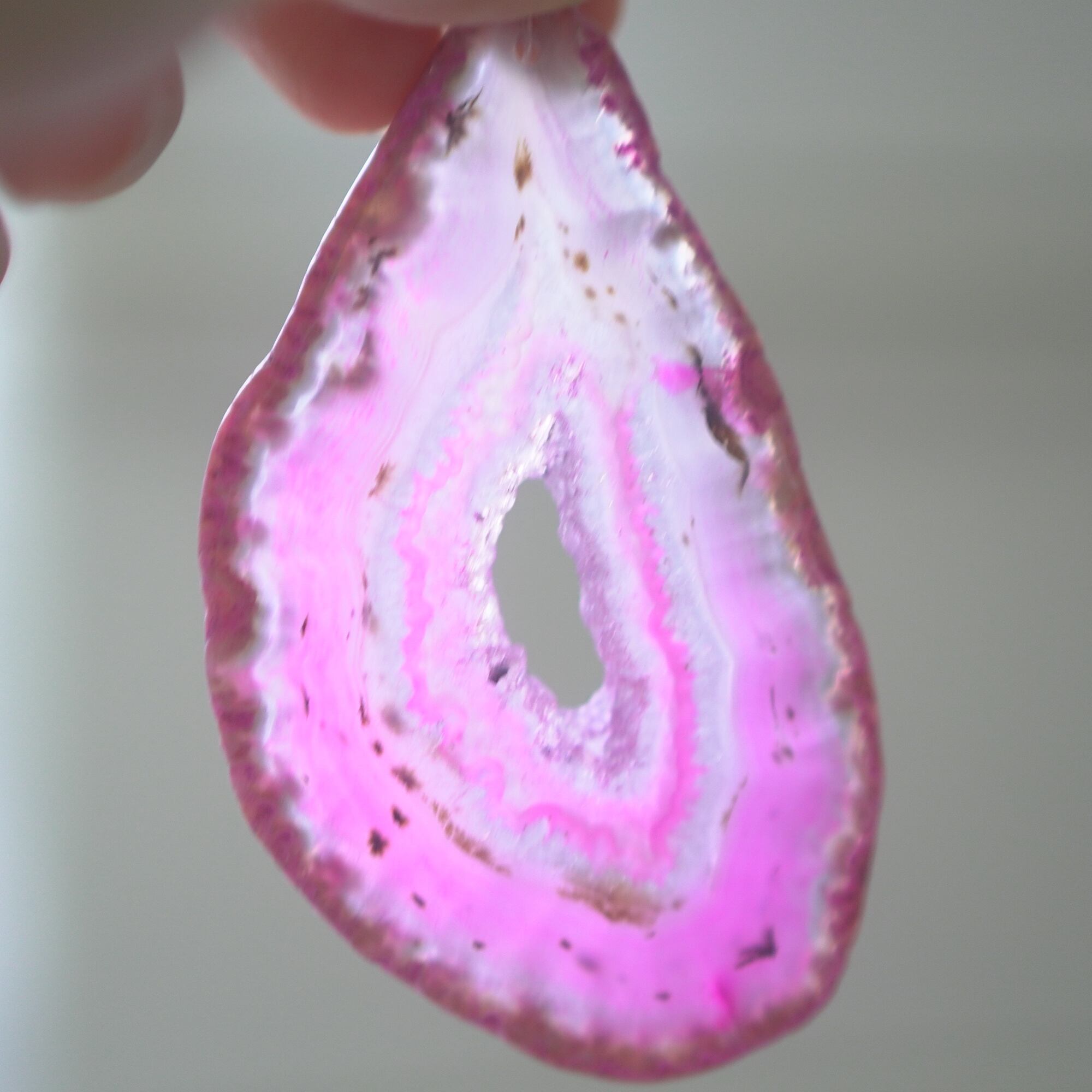 ✧✧✧染色の石なので耐光性(光による経年でのカラー変化の耐性)に優れているわけではなく一日の中で長時間強い日光に当たるような場所に飾られるのはおすすめしないのですが、陽光に透かした時にだけ真価を発揮する美しさがありますので、是非たまに翳したりして光と一緒にお楽しみいただけたらと思っております。特に濃い鮮やかな色など、気になられる場合は、日光のあまり当たらない場所に飾っていただけたらと思います✧✧✧