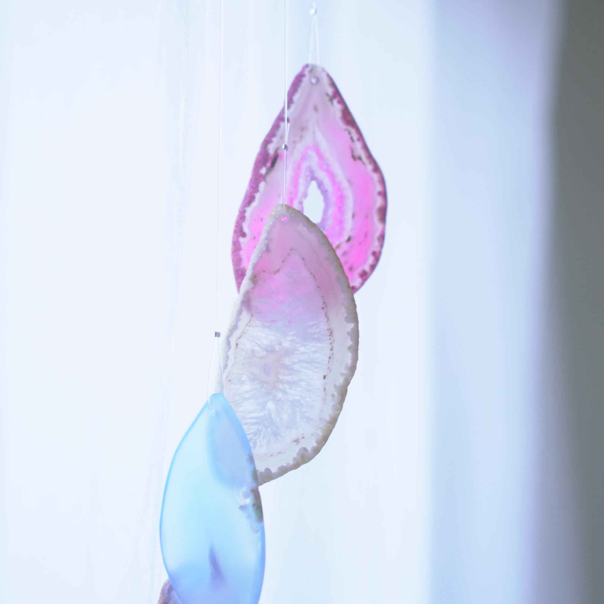 連なるアゲートが風を受けて揺れるとチリンチリン、美しい響きの音が鳴りとても癒されます。