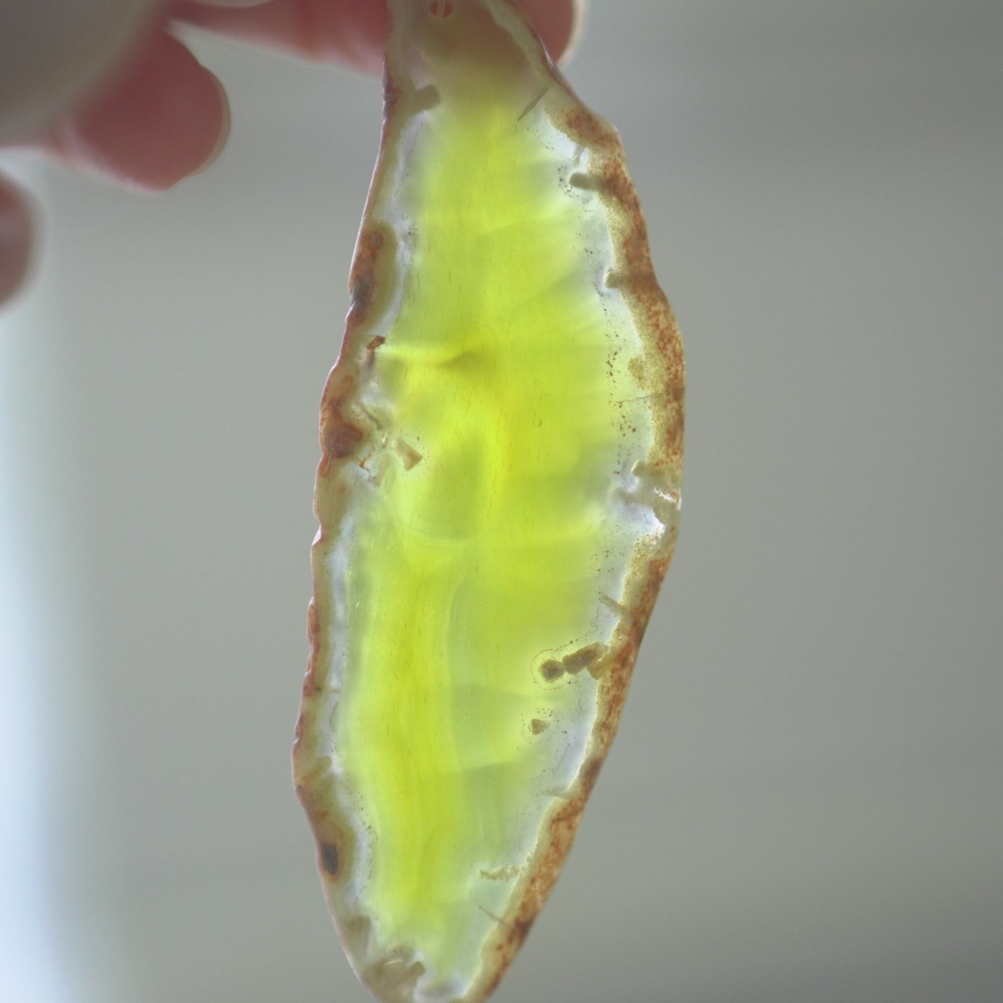 ✧✧✧染色の石なので耐光性(光による経年でのカラー変化の耐性)に優れているわけではなく一日の中で長時間強い日光に当たるような場所に飾られるのはおすすめしないのですが、陽光に透かした時にだけ真価を発揮する美しさがありますので、是非たまに翳したりして光と一緒にお楽しみいただけたらと思っております。特に濃い鮮やかな色など、気になられる場合は、日光のあまり当たらない場所に飾っていただけたらと思います✧✧✧