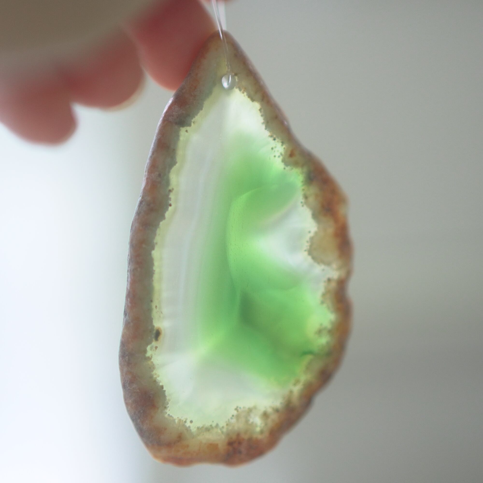 ✧✧✧染色の石なので耐光性(光による経年でのカラー変化の耐性)に優れているわけではなく一日の中で長時間強い日光に当たるような場所に飾られるのはおすすめしないのですが、陽光に透かした時にだけ真価を発揮する美しさがありますので、是非たまに翳したりして光と一緒にお楽しみいただけたらと思っております。特に濃い鮮やかな色など、気になられる場合は、日光のあまり当たらない場所に飾っていただけたらと思います✧✧✧